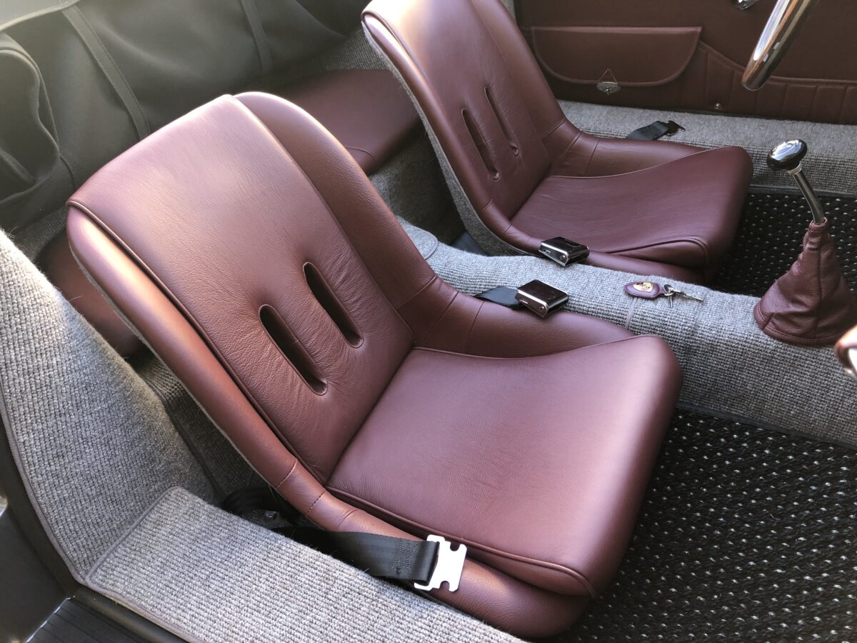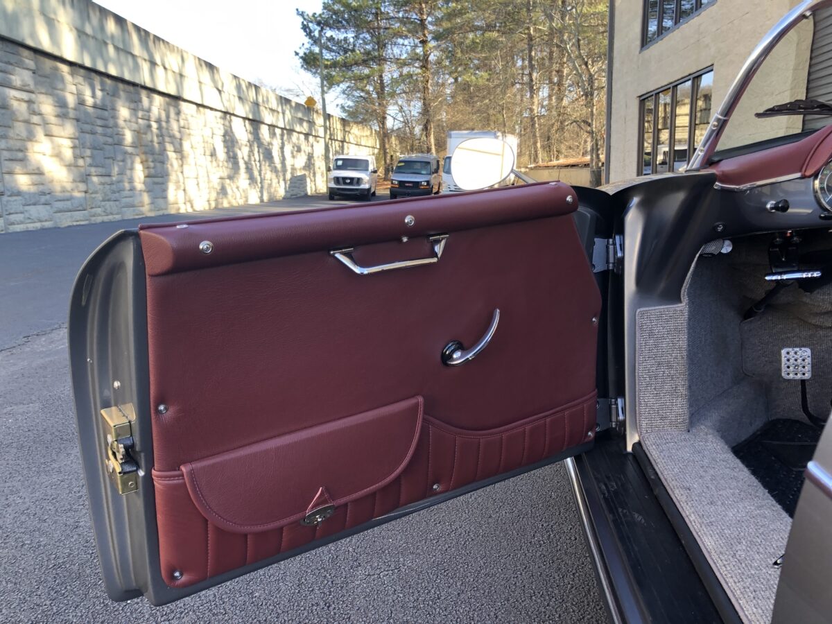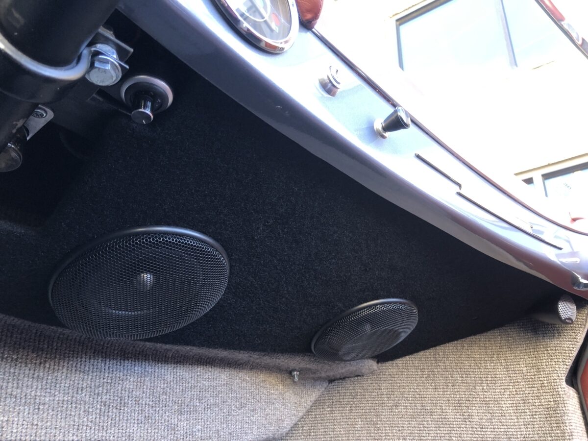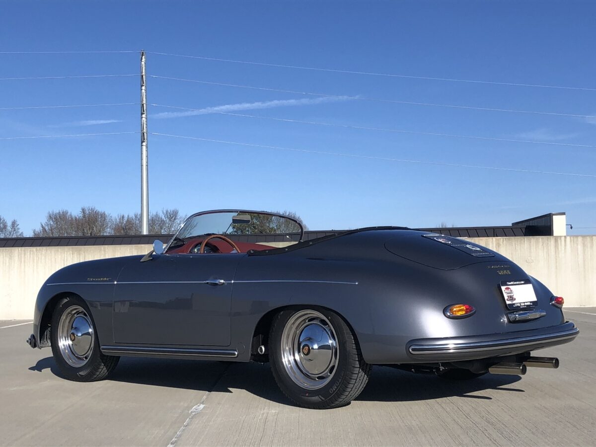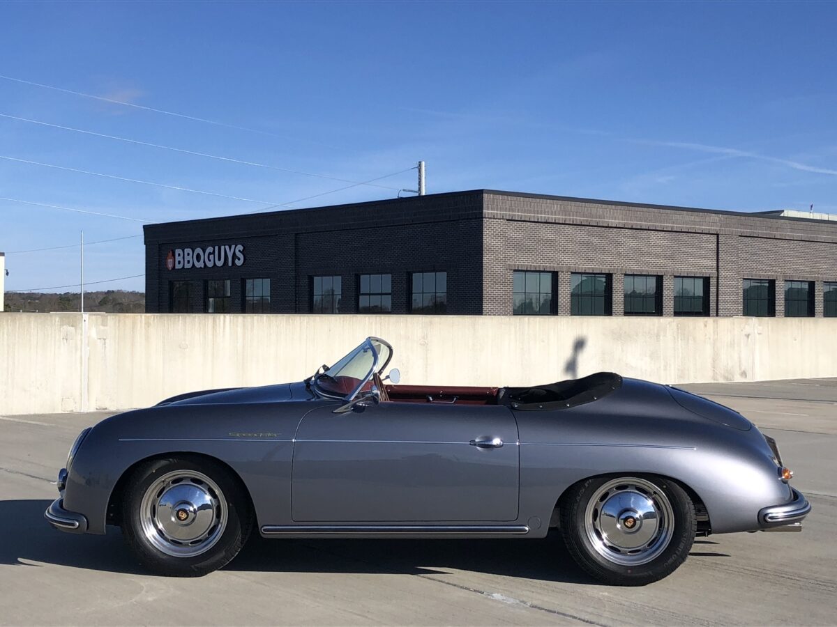 Complementing the gorgeous Seal Gray Metallic exterior is a luscious Medium Red Leather interior with Light Gray German Square Weave carpeting. The colors really accentuate the beauty of this car and looks even better in person than it shows in the pics. The Speedster seats are very comfortable. Door panels have our custom door pockets with document compartment, the polished door pulls. Matching dash pad and passenger side grab handle. Period correct VDO gauges with a GPS Speedometer and digital odometer allow the driver to monitor the speed and performance of this air cooled Speedster. Beautiful Wood Grain steering wheel with a Porsche horn button and vintage style turn signal lever adds to the authenticity. The e-brake was mounted under the dash like the originals. The original owner added a custom, out of sight, bluetooth stereo unit with professionally mounted speakers under the dash that sounds amazing. This 356 is also optioned with heated seats , and a Vintage Speed Shifter for a crisp, short throw pattern for your driving pleasure. Shelf pad behind the front seats. Custom set of Coco mats have been added for that finishing touch. Simply gorgeous interior!!!