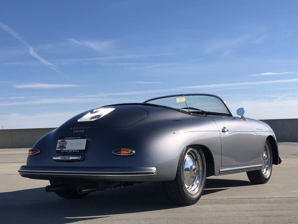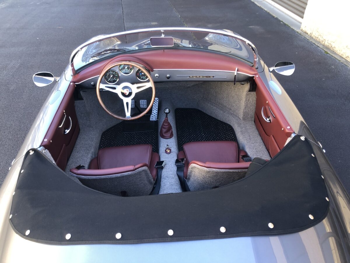This particular build was done in Seal Gray Metallic which is one of the most popular Porsche paint colors and suits this car beautifully. It is absolutely stunning. The fit and finish most likely exceeds the original. As you will see, this one was built with the tear drop tail lights with European amber/red lenses, driving lights, Vintage 190 Wheels with emblem hub caps and all of the Porsche emblems to add to the authenticity. With just under 335 miles the paint and body are basically flawless. I always recommend driving these cars top down but of course it also has a black canvas soft top and window inserts are also provided and a matching boot cover when the top is down for a clean, sophisticated look. As you will see this Seal Gray beauty has an awesome stance and will attract all the attention you can handle.