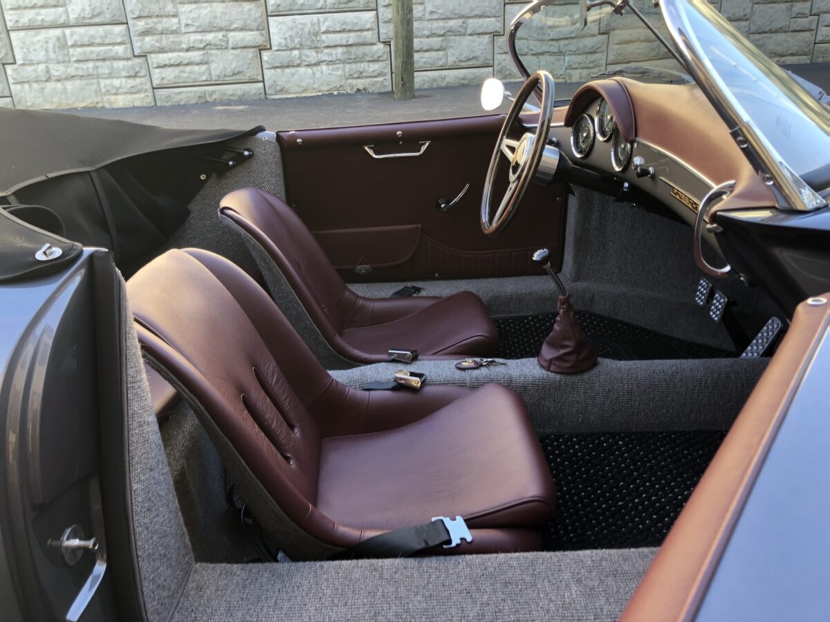 This gorgeous Seal Gray Metallic 356 Speedster Replica was built by Vintage Motorcars of CA and we sold it brand new a little under a year ago to a couple in Northern California. It still looks like it did the day it was completed and has just under 335 miles on it. As you will see this one really stands out and was ordered nicely loaded up with options including Independent Rear Suspension, E-brake mounted under dash, leather interior, German Square Weave Carpeting, heated seats, driving lights, and more! Great opportunity to scoop up a stunning build that is like new without the wait!