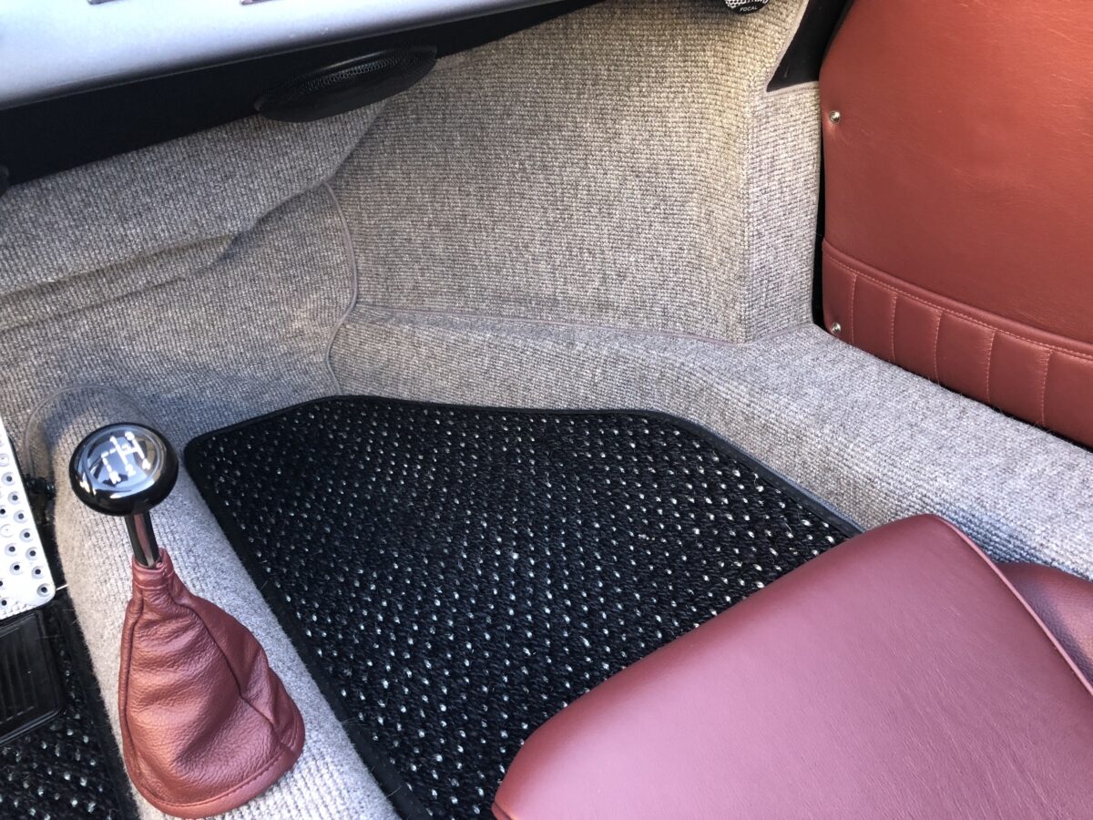 Turn the key and let the fun begin!!! As impressed as I was with the cosmetic improvements on these new builds I am equally impressed with the performance these new cars offer. With just under 335 miles this Speedster runs and drives like a new one. The 2332 cc. is a brand new, fully balanced motor with top quality components from CB Performance.Originally Rated at 125 hp with the dual Kadron carburetors and 8.2:1 compression ratio this motor pulls strong and crisp. I would be happy to provide more technical data on the engine build for those who need it. Transmission is a 3.44 ring and pinion freeway flyer type. This combination provides excellent torque and acceleration in 1st-3rd and also allows easy highway cruising at 75 mph. Empi 5 lug 5x205mm 4 wheel disc brakes stop this Speedster precisely with ease. Handling is superb with the optional IRS Independent Rear Suspension. Other features include electronic ignition, stock dog house oil cooler and remote 72pass oil cooler with electric fan thermostatically controlled, The initial Break in oil change and valve adjustment was just done about 10 miles ago. Polished Vintage 190 Aluminum 5 lug wheels with nipple Emblem hub caps. Great tone from the dual tip exhaust. Be sure to hear it running in the video below. The undercarriage is also nicely detailed and floorpan protected with a bed liner material to ensure it lasts the test of time. Make sure you watch the video to hear this car start up and running. These cars handle the road beautifully and are an absolute joy to drive. Inside the trunk is fully carpeted with matching German Square Weave carpeting.
