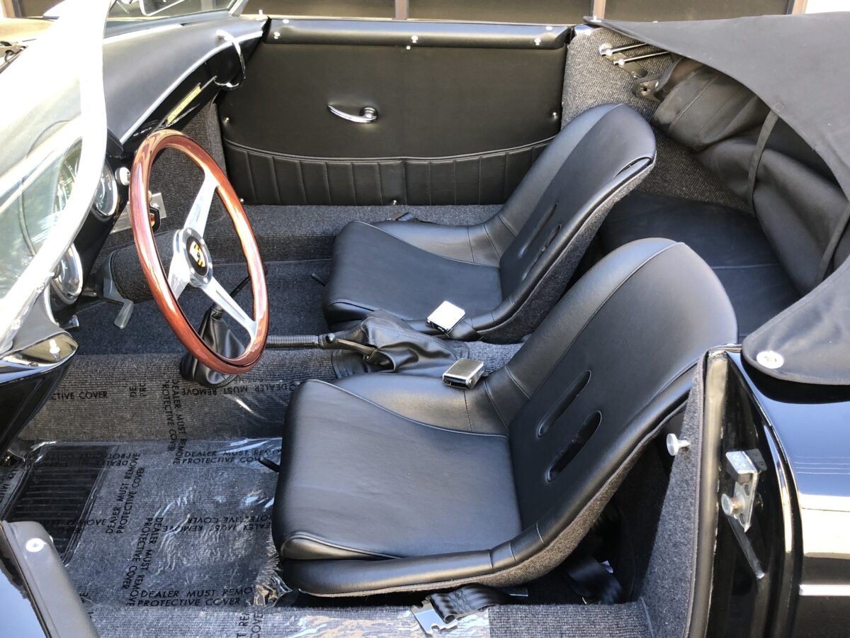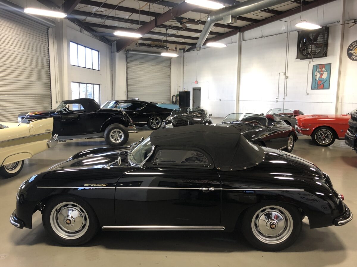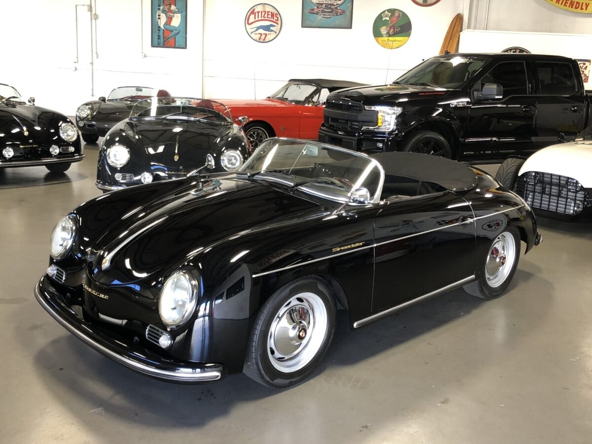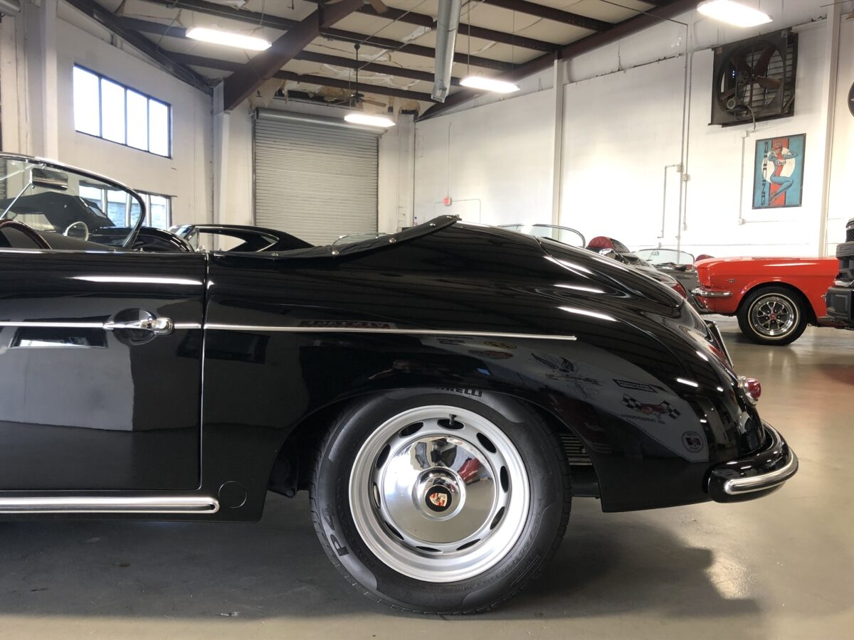 This beautiful Triple Black 356 Speedster Replica was built in 2012 by Vintage Speedster, is in excellent condition and runs and drives as good as it looks! That’s correct, I did say Replica, but not just any replica….this speedster was hand built by the original Vintage Speedsters company when they were located in California, one of the original builders of Speedster Replicas. In fact they had built about 90% of all the Speedster replicas on the market and their quality and customer service was top notch. They sold the company several years ago. They used a custom built, jig welded 2×4″ 11 gauge steel frame. This rigid new structure retains the original VW floor pan designed by Dr. Ferdinand Porsche and integrates the largest frame possible. In addition the steering wheel is offset slightly just as it was in the original Speedster. While original Speedsters are a rare breed, Vintage Speedster Replicas are rare in their own right with roughly only 3000 built.