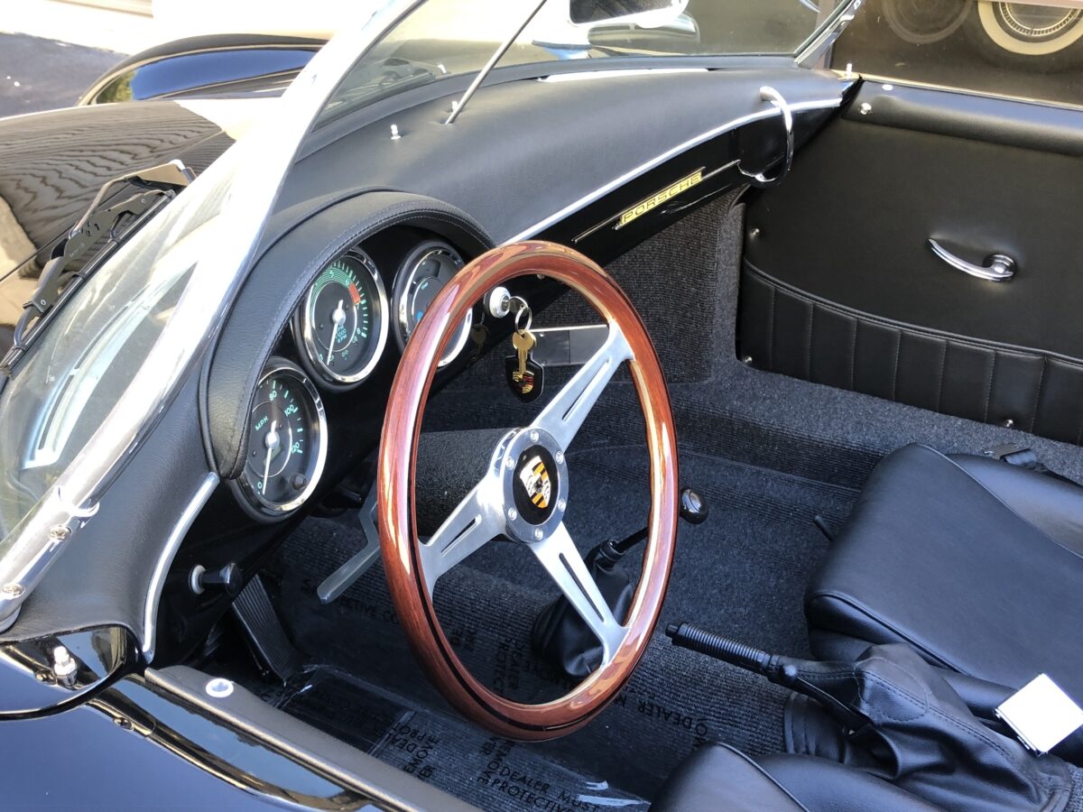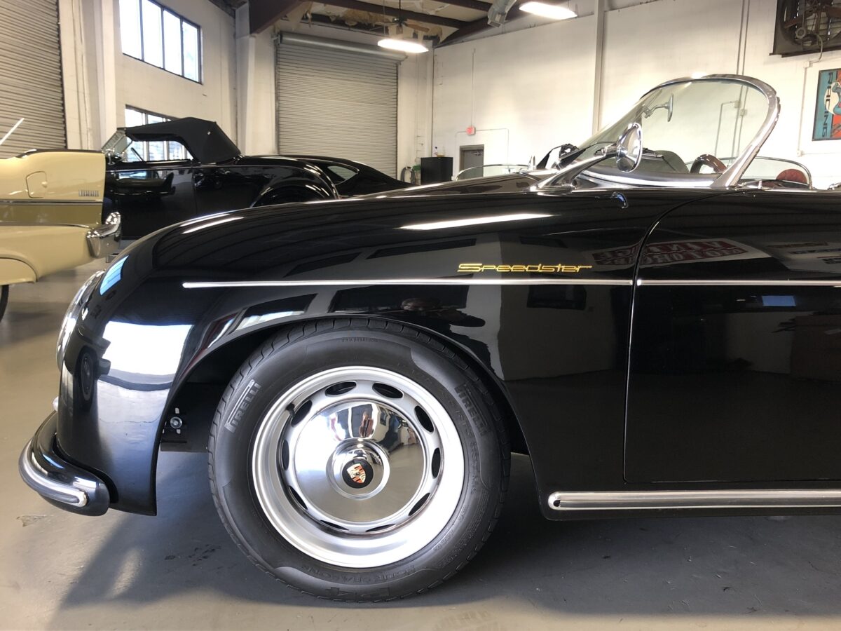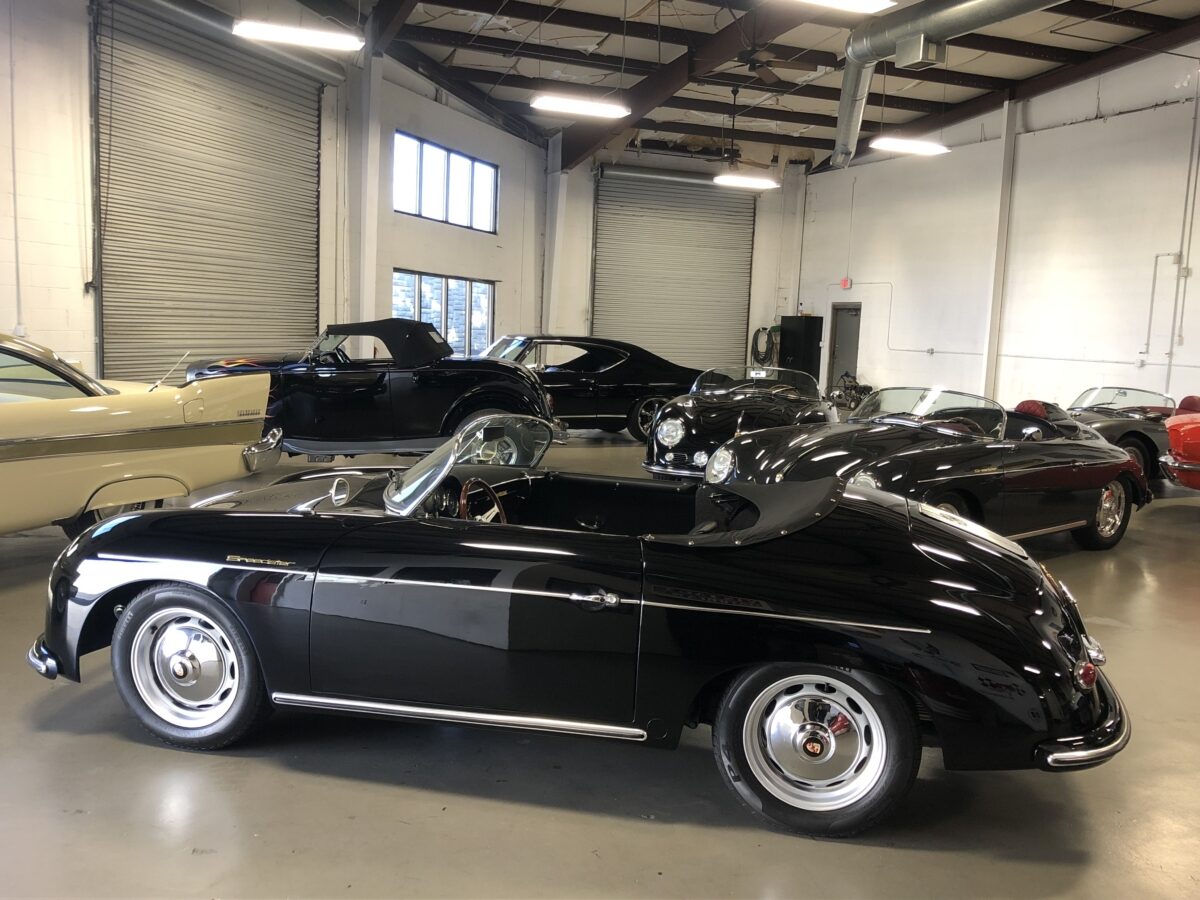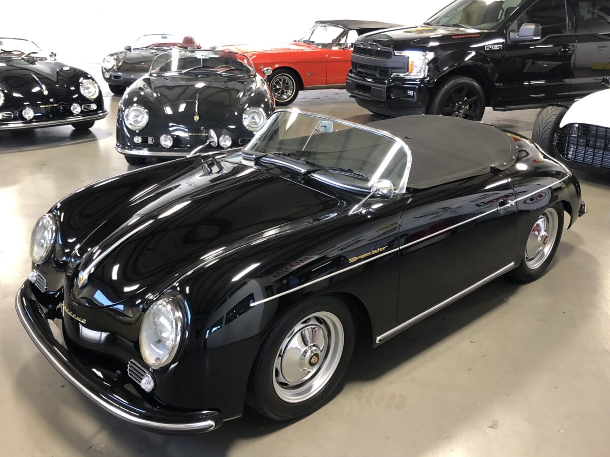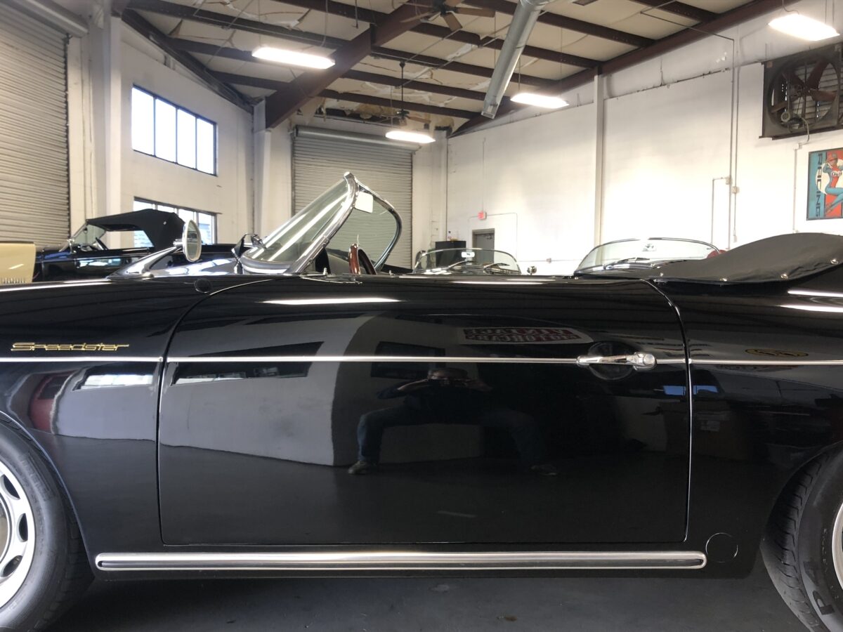 This beautiful Triple Black 356 Speedster Replica was built in 2012 by Vintage Speedster, is in excellent condition and runs and drives as good as it looks! That’s correct, I did say Replica, but not just any replica….this speedster was hand built by the original Vintage Speedsters company when they were located in California, one of the original builders of Speedster Replicas. In fact they had built about 90% of all the Speedster replicas on the market and their quality and customer service was top notch. They sold the company several years ago. They used a custom built, jig welded 2×4″ 11 gauge steel frame. This rigid new structure retains the original VW floor pan designed by Dr. Ferdinand Porsche and integrates the largest frame possible. In addition the steering wheel is offset slightly just as it was in the original Speedster. While original Speedsters are a rare breed, Vintage Speedster Replicas are rare in their own right with roughly only 3000 built.