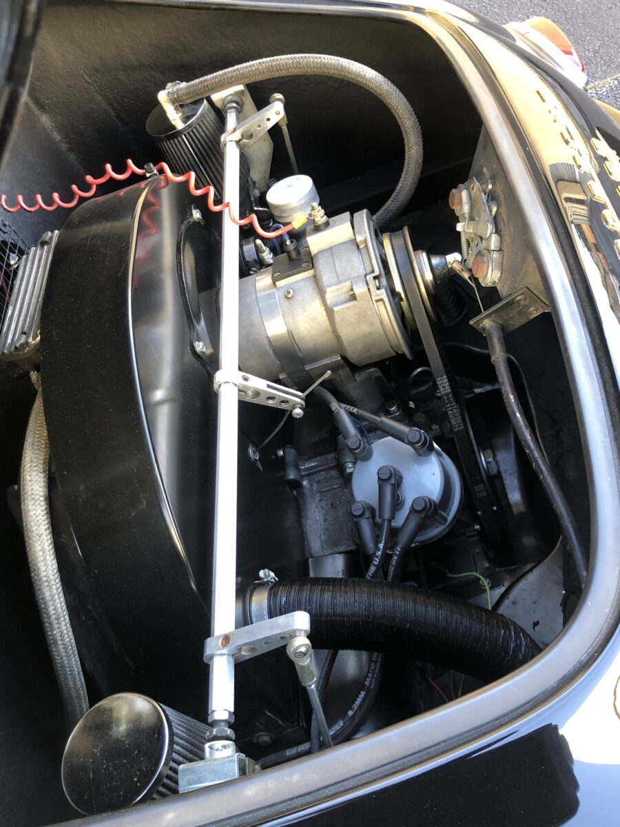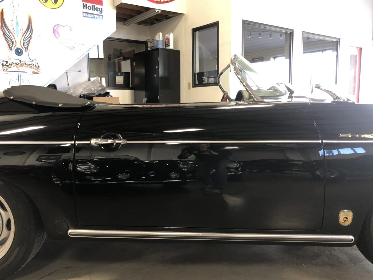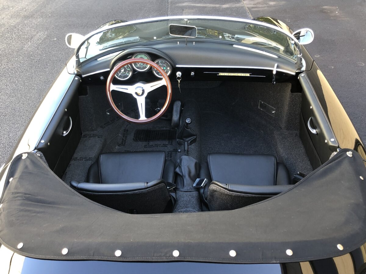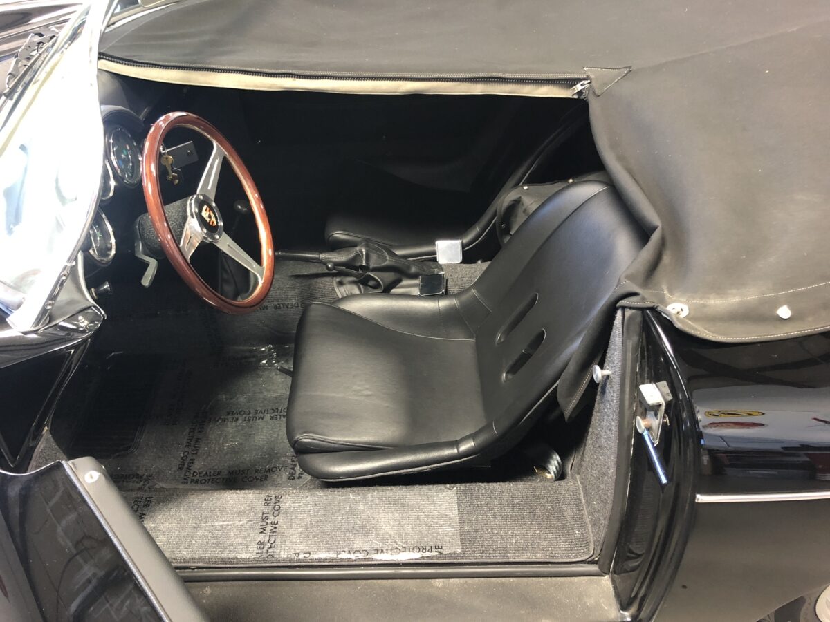 As I mentioned the paint and body are near flawless. High quality professional paint job done 2 years ago and still looks close to new. All of the chrome and stainless trim looks great and this one has dual sideview mirrors mounted on the fenders. Body panel fit is excellent and doors open and shut beautifully. You would be amazed at how authentic and solid these cars are and only the true Porsche afficionados can spot it as a replica. I always recommend driving these top down as much as possible but nice to know it has a matching Black convertible top in great shape with window inserts. You also have 2 options when top is down as it comes with both the boot cover and a full tonneau cover. This Speedster will get all the looks and will be welcome at the local shows and cruise ins and take home trophies if that is what you enjoy.