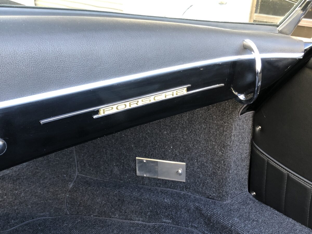 Complimenting the Black exterior is a matching Black Leather interior that looks like new as it should. Seats, dash, door panels and rear seat shelf were completely redone in Katzkin Leather last month. Brand new black German square weave carpeting was installed at that time. The the car was repainted 2 years ago it also got a brand new set of VDO gauges with a GPS Speedometer. All the lights and gauges work. This car does have functional heat operated with the lever near the e-brke which brings in hot air through the vents in the kick panel area. Beautiful Woodgrain Nardi style steering wheel with Porsche emblem horn button. Super comfortable, like new interior!!!