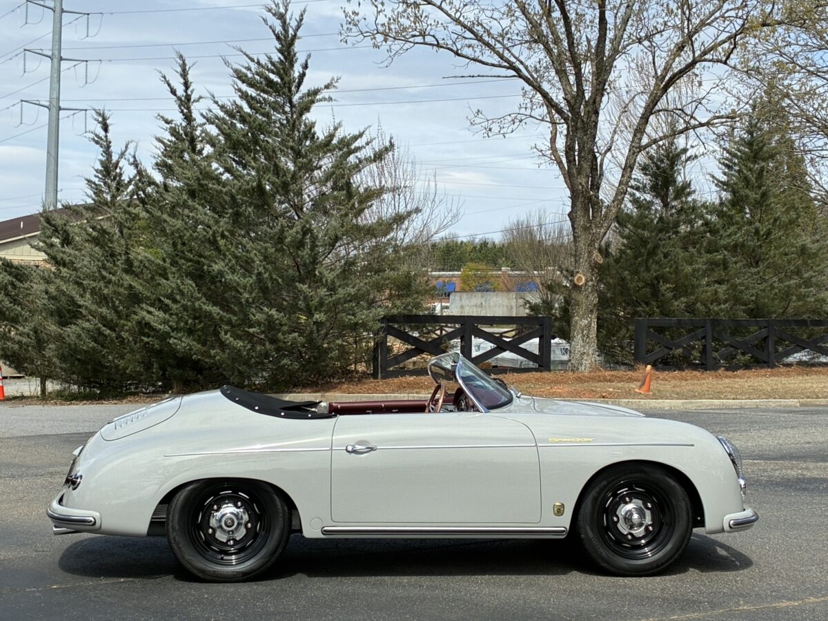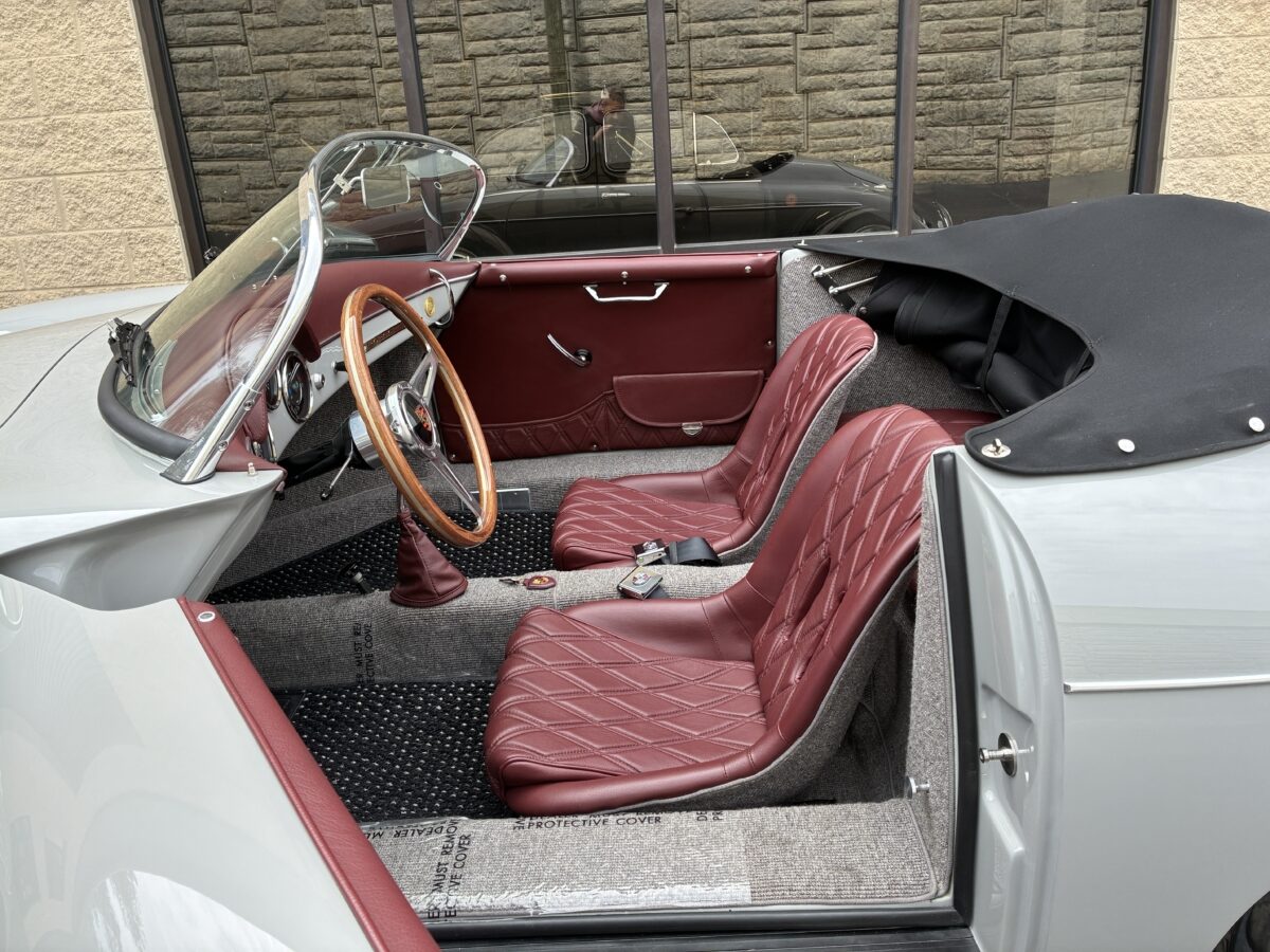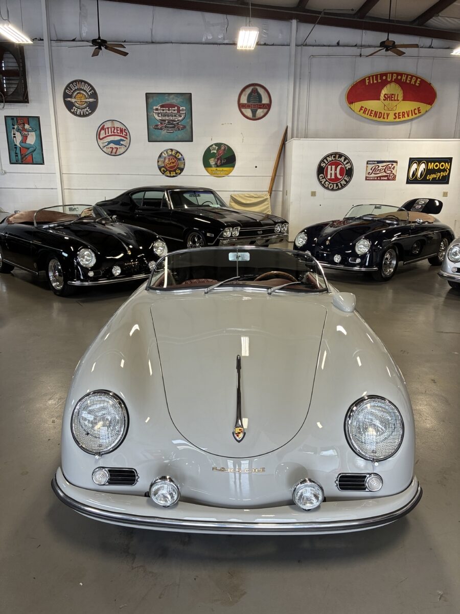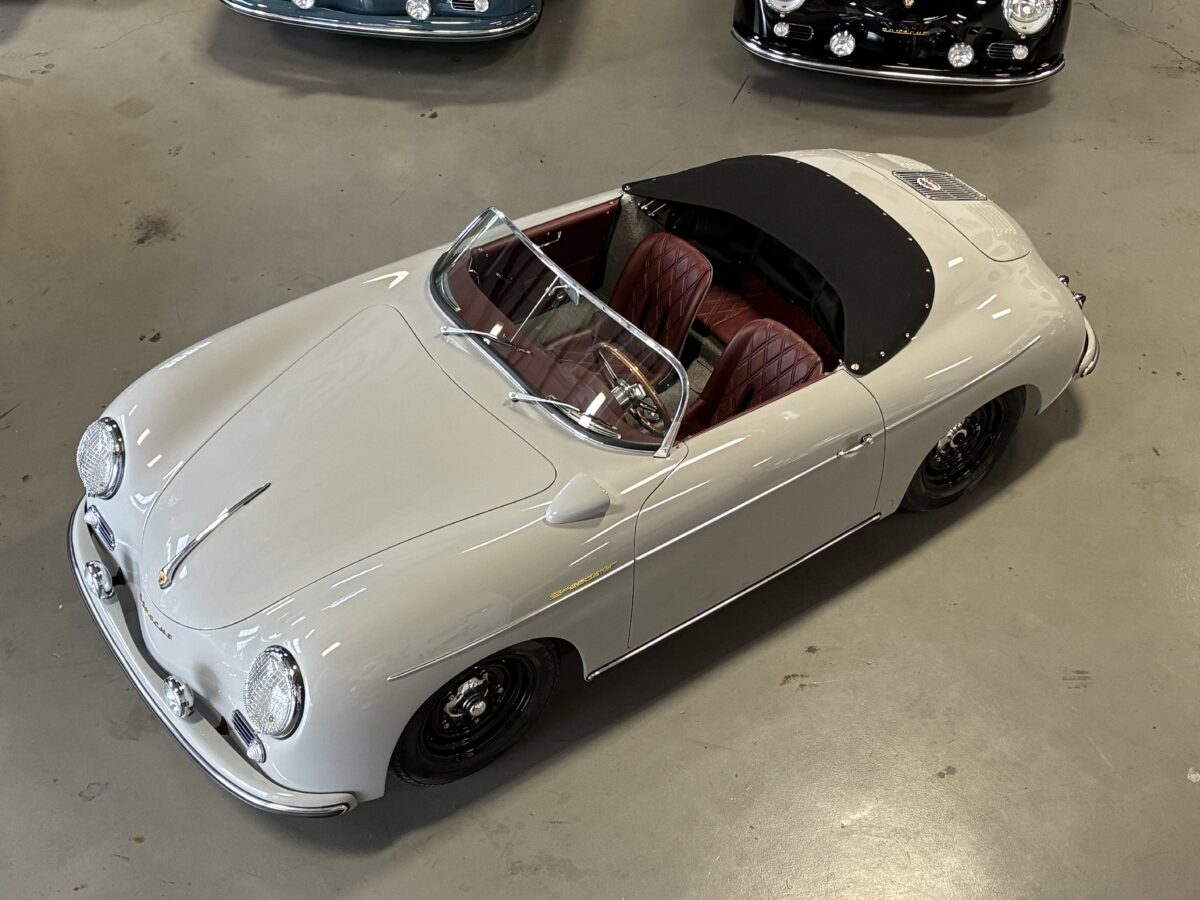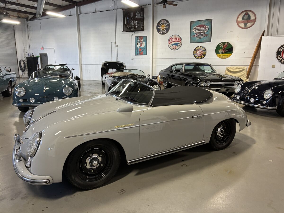 This amazing Chalk Gray 356 Speedster was completed just 7 months ago. It was a special order from a great guy in Ohio who checked off almost every box on the build. We shipped the car to him in August 2025 and he was thrilled with it, and could not believe the attention it got at several shows he took it to. In fact it won best of show in the Porsche category with over 30 actual Porsche cars and a total of 500 cars. He even got to give his 98 yr old mom a thrilling ride in it. Over the winter his wife convinced him that they should have a newer 911 in automatic so she could drive it too. He struggled with the decision but decided they could only have one toy and they would let another lucky individual enjoy their gorgeous build….maybe you!? It has just 220 miles and is in like new condition. It is now available for immediate delivery without the long wait on a new build.