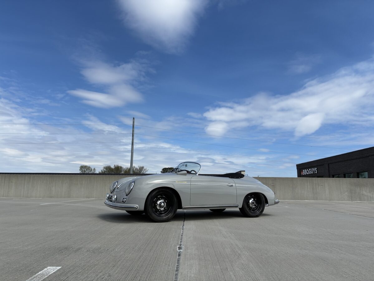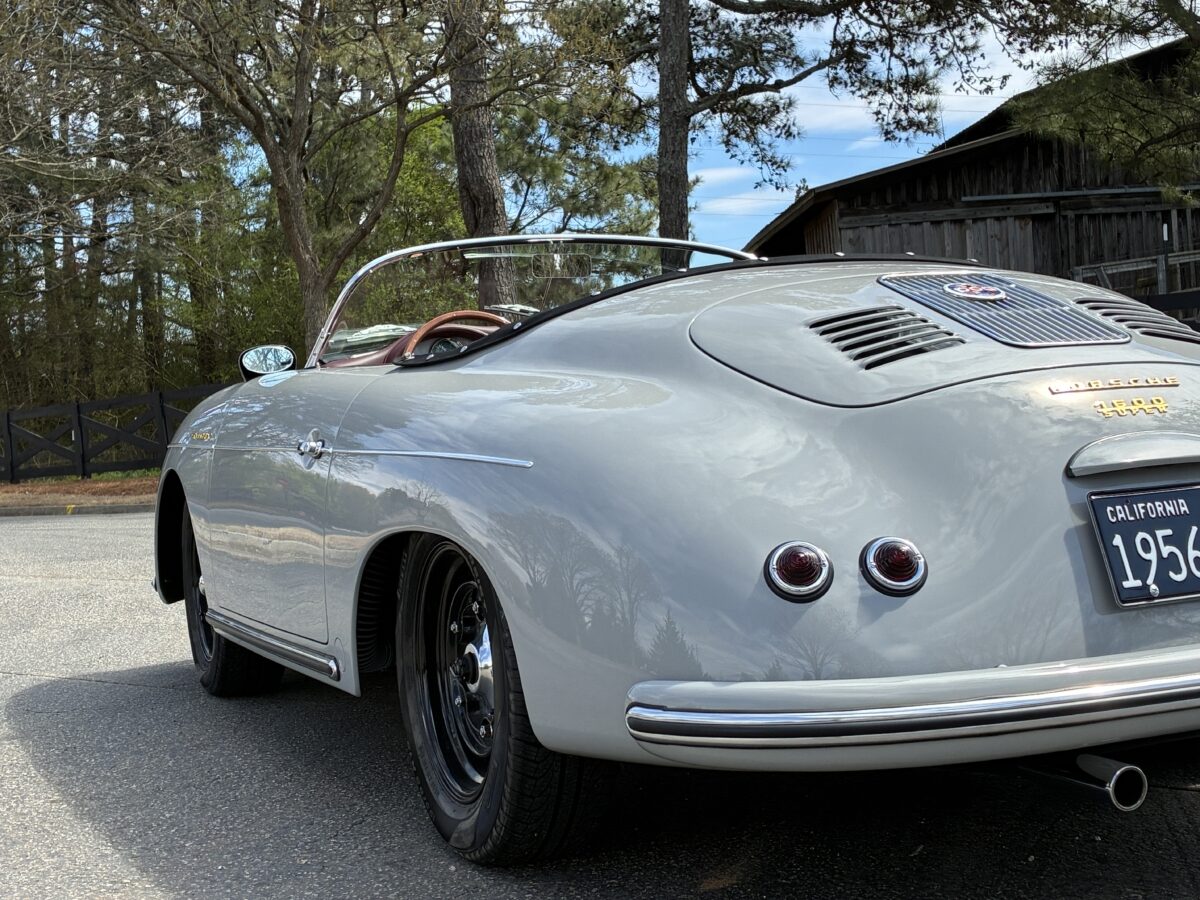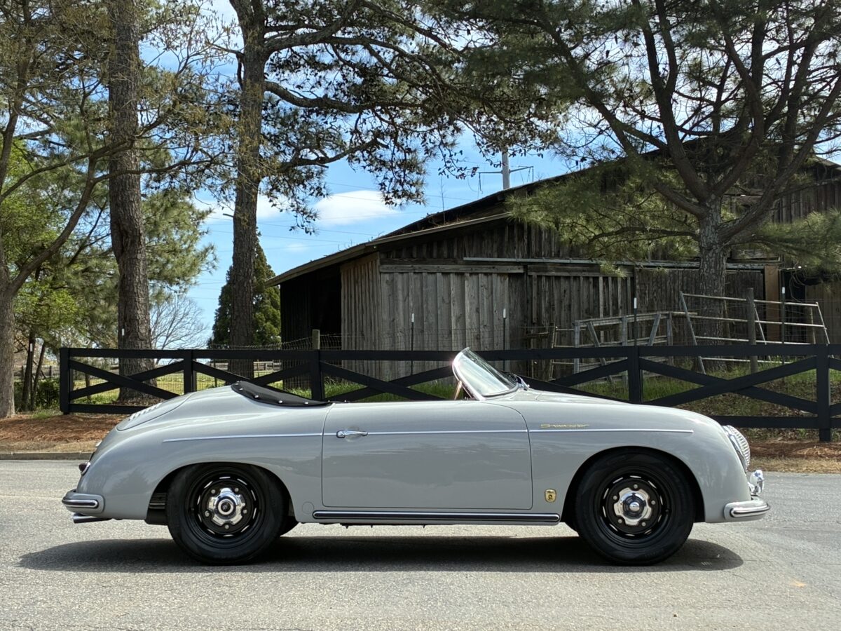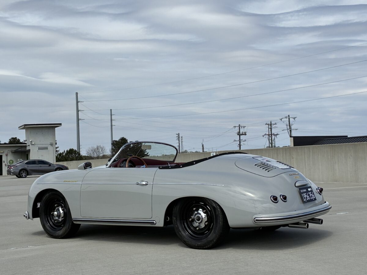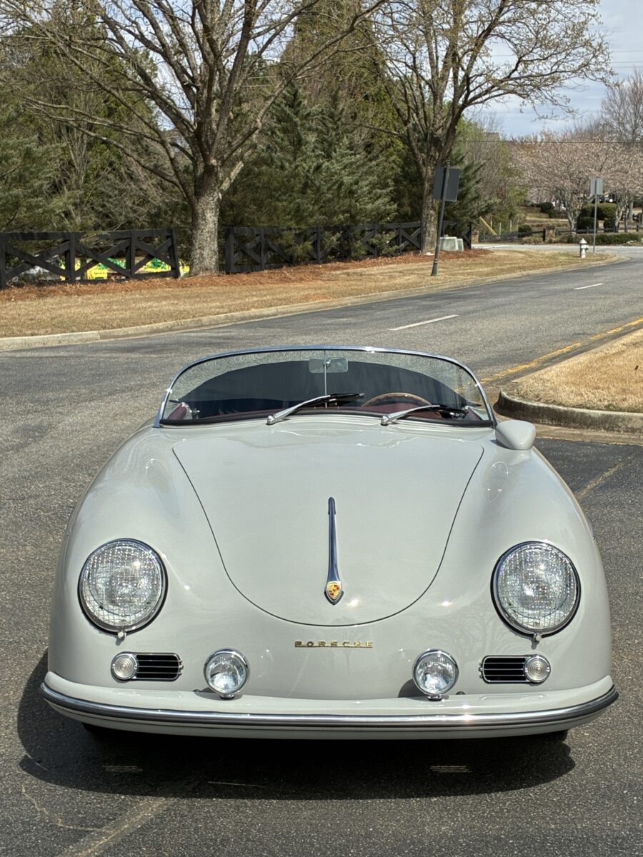 This amazing Chalk Gray 356 Speedster was completed just 7 months ago. It was a special order from a great guy in Ohio who checked off almost every box on the build. We shipped the car to him in August 2025 and he was thrilled with it, and could not believe the attention it got at several shows he took it to. In fact it won best of show in the Porsche category with over 30 actual Porsche cars and a total of 500 cars. He even got to give his 98 yr old mom a thrilling ride in it. Over the winter his wife convinced him that they should have a newer 911 in automatic so she could drive it too. He struggled with the decision but decided they could only have one toy and they would let another lucky individual enjoy their gorgeous build….maybe you!? It has just 220 miles and is in like new condition. It is now available for immediate delivery without the long wait on a new build.