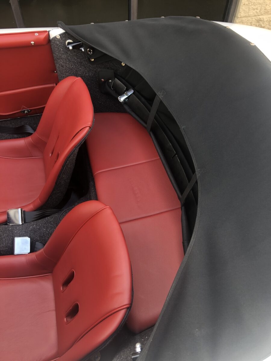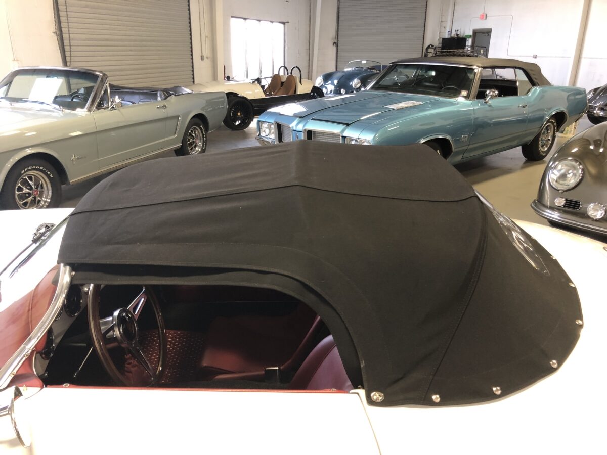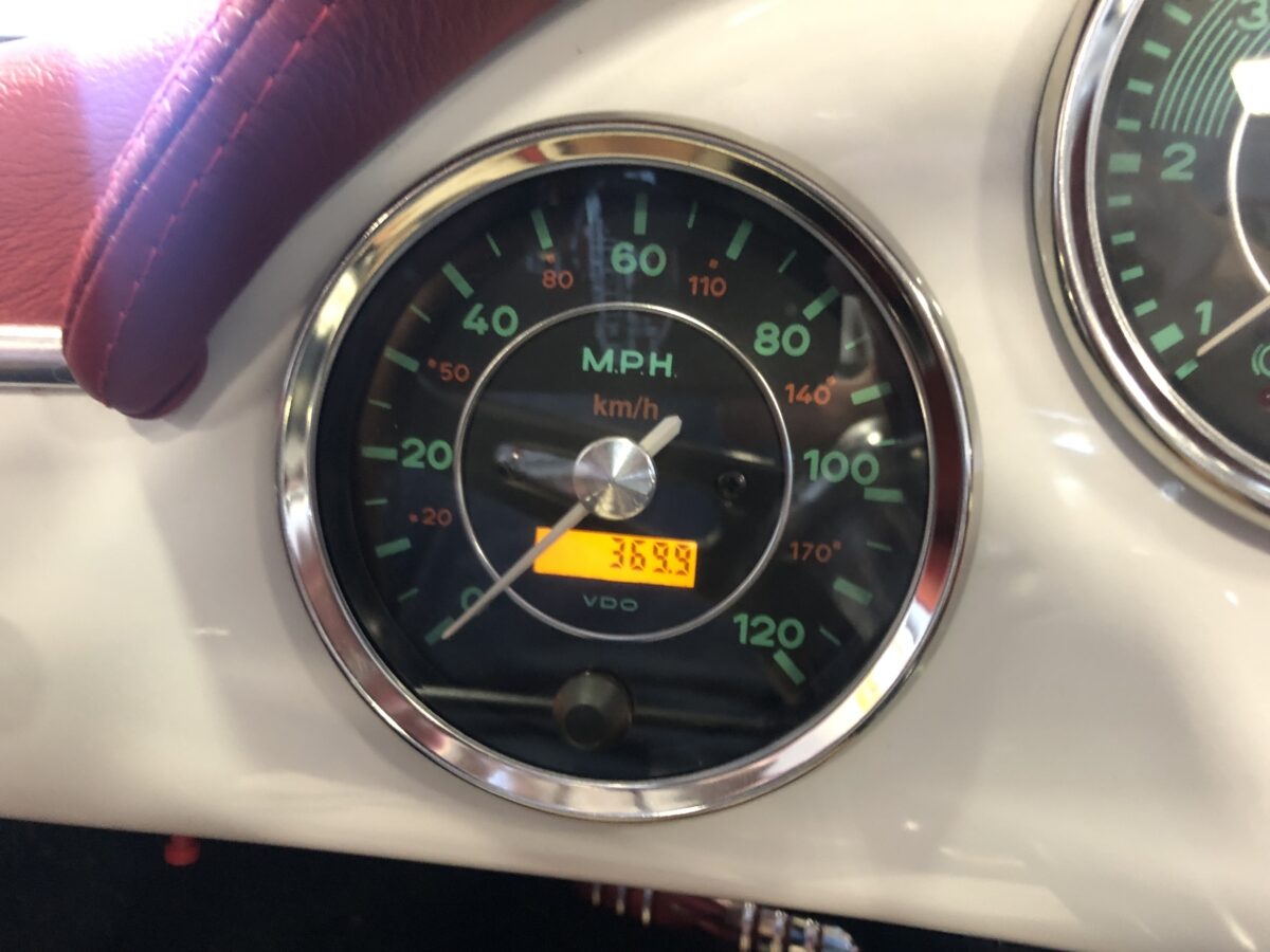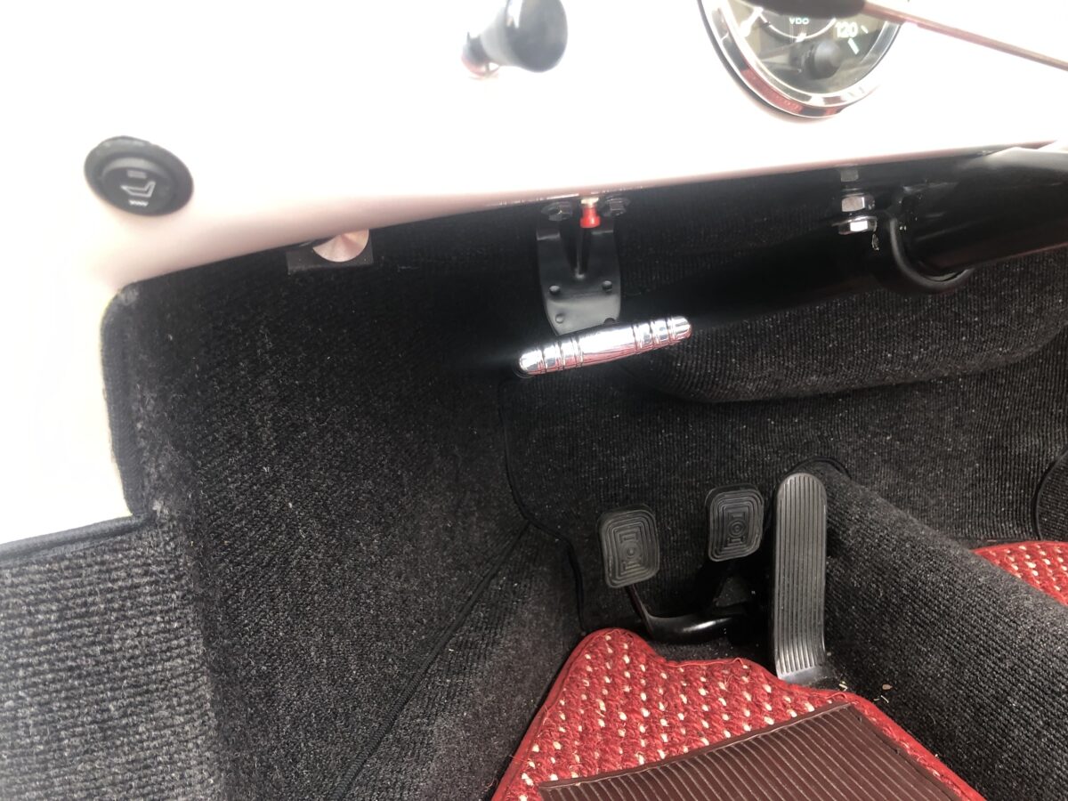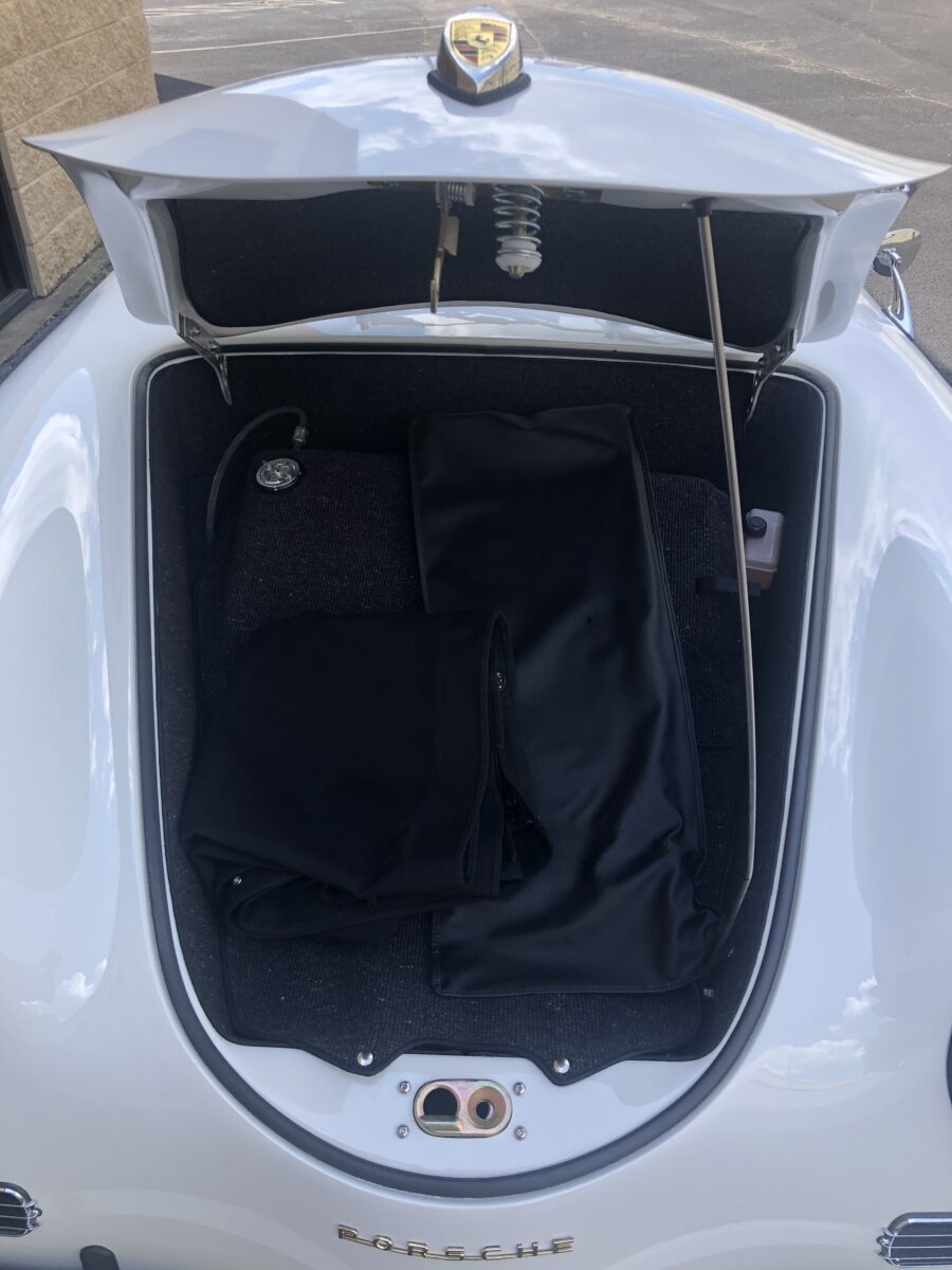 This particular build was done in an authentic Porsche 356 color called Glacier White that is one of the more rare colors on these Speedsters. It is absolutely stunning. The fit and finish most likely exceeds the original. As you will see, this one is equipped with a nice set of whitewall tires that really gives it a classic European flair. The body is adorned with Porsche badging on the nose, rear and dash. With just 120 miles the paint and body are basically flawless. I always recommend driving these cars top down but of course it also has a brand new black canvas soft top. Window inserts are also provided and a matching boot cover when the top is down for a clean, sophisticated look. This one also has the full tonneau cover as well.
