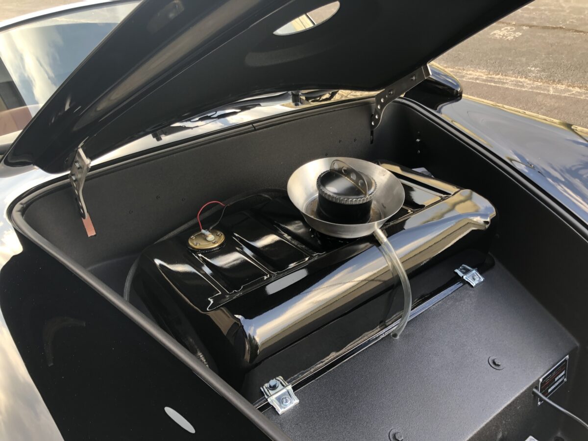 Turn the key and let the fun begin!!! As impressed as I was with the cosmetic improvements on these new builds I am equally impressed with the performance these new cars offer. With just under 165 miles this Speedster runs and drives like a new one. The 2332 cc. is a brand new, fully balanced motor with top quality components from CB Performance. The motor is built by Pat Downs Performance who is one of the top air cooled builders in the country and puts out about 125-130hp This motor pulls strong and crisp. I would be happy to provide more technical data on the engine build for those who need it. Transmission is a 3.44 ring and pinion freeway flyer type. This combination provides excellent torque and acceleration in 1st-3rd and also allows easy highway cruising at 75 mph. This set up breathes through the A1 Performance center exit exhaust with a throaty barrel muffler that really sets it apart. Empi 5 lug 5x205mm 4 wheel disc brakes stop this Speedster precisely with ease. Other features include electronic ignition, stock dog house oil cooler and remote 72pass oil cooler with electric fan thermostatically controlled, The initial Break in oil change was done recently. Vintage 190 Aluminum 5 lug wheels were powder coated black and have drum skin covers for a race day look. This one also has the Independent Rear Suspension upgrade which more aggressive drivers will appreciate. Be sure to hear it running in the video!! The undercarriage is also nicely detailed and floorpan protected with a bed liner material to ensure it lasts the test of time. These cars handle the road beautifully and are an absolute joy to drive. Inside the trunk was customized with a painted fuel tank and rhino lined for a crisp look.