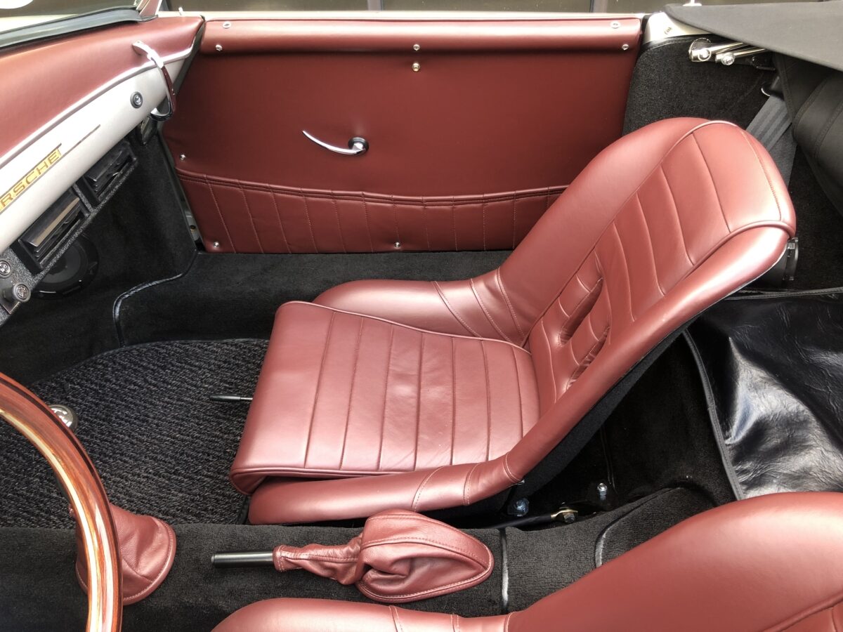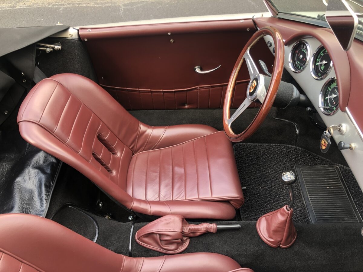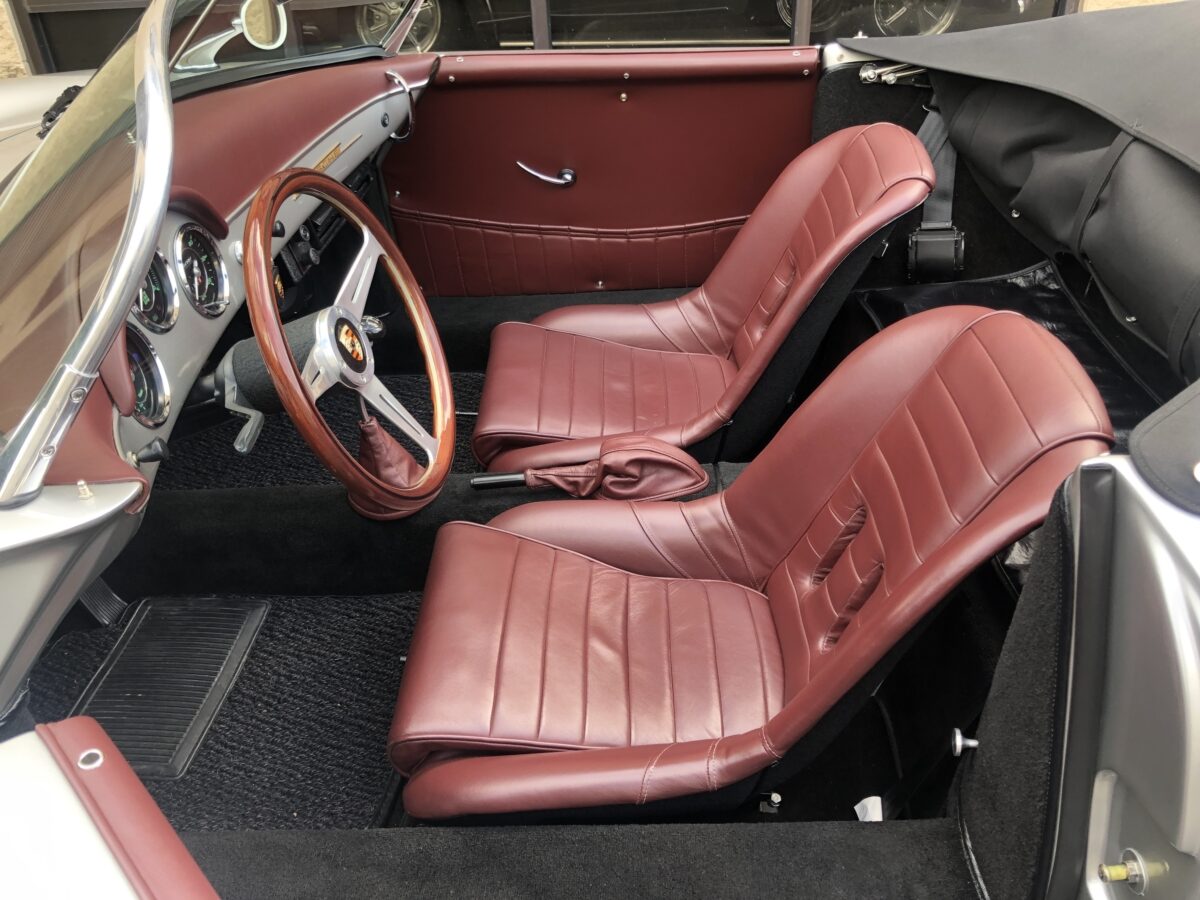 Complimenting the Silver Metallic Exterior is a beautiful Burgundy leather interior. Authentic Speedster style seats are quite comfortable with pleated leather. Matching door panels and dash. This Speedster has 3 point seat belts. Ice cold under dash Air-conditioning is just one of the great features. The unit also provides heat and the car is equipped with heated seats for driver and passenger for those of you in the colder climates who want to drive this Speedster year round. Great sounding Kenwood Stereo with Blue tooth is mounted under the dash with speakers neatly installed in the front kick panels. Really nice Nardi style woodgrain steering wheel sets the interior off nicely and a black set of coco mats give it that vintage look.