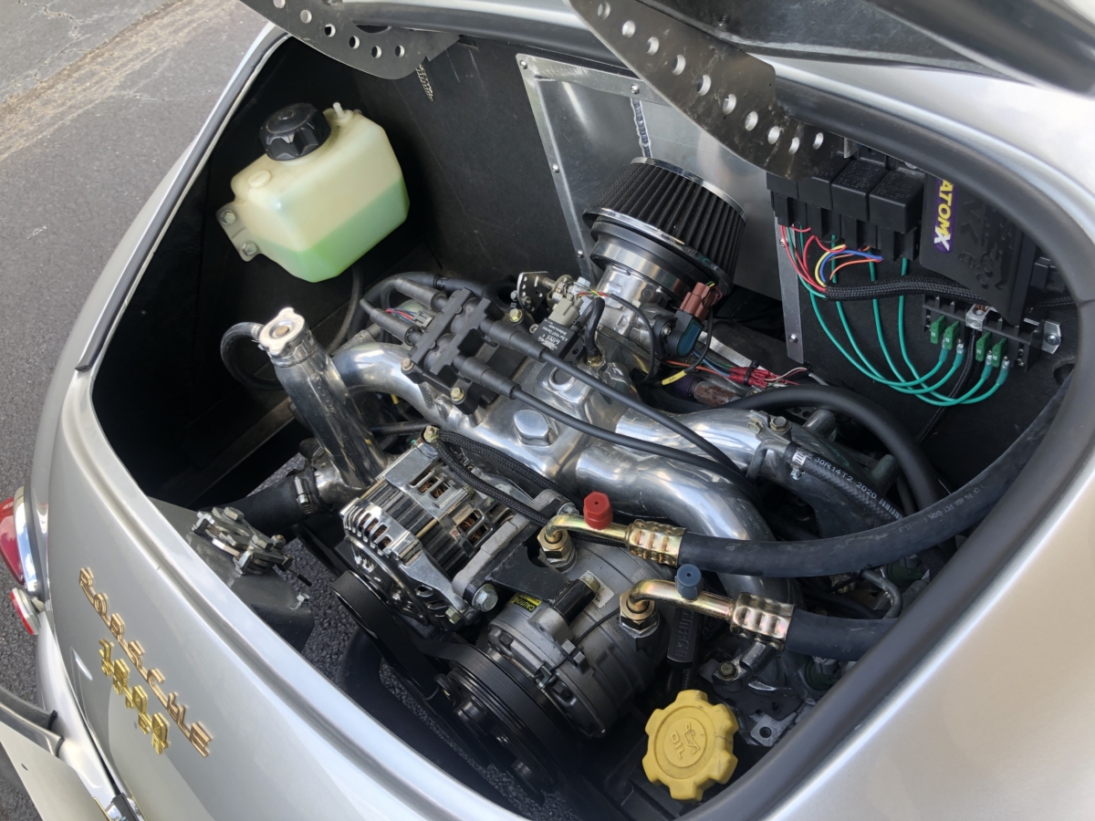 Now here comes the fun factor!!! This beautiful Speedster is powered by a 180 horsepower Subaru 2.5L SOHC Fuel injected , water cooled motor mated to a custom built 4-speed. Amazing power to weight ratio in this car will set you back in your seat under acceleration and is also set up to be a great highway cruiser as well. Handling is fantastic thanks to the Independent Rear Suspension ( IRS), Gas shocks, and heavy duty front and rear sway bars and a lowered stance. Four wheel disc brakes with 5 lug 15 ” chrome wheels with emblem hub caps and wrapped in a like new set of radial tires. LED headlights for safe night time driving. Amazing tone from the A-1 Sidewinder double barrel exhaust under acceleration with a soft rumble at idle. This Subaru powered Speedster is an absolute blast to drive and is ready to go!!!!
