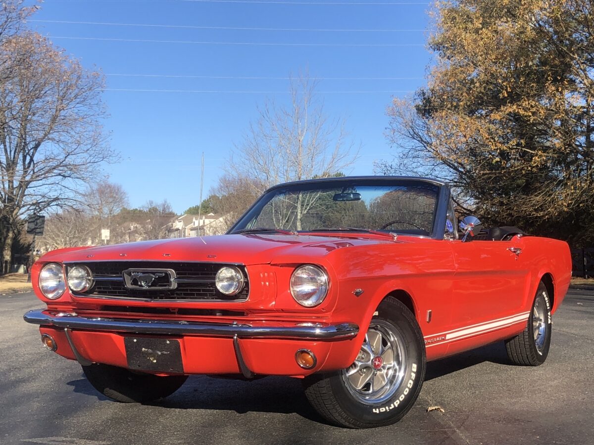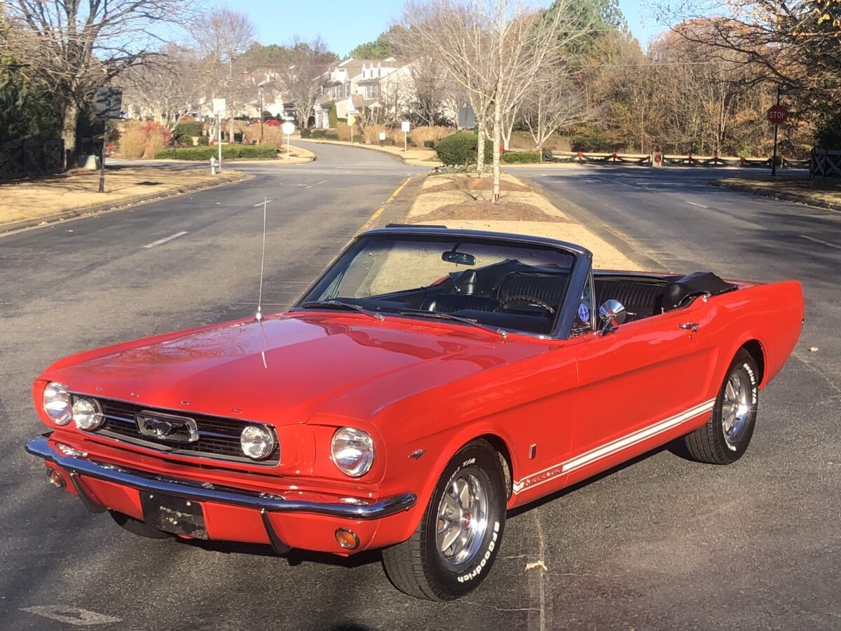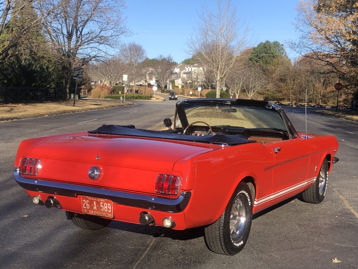 Great opportunity on a True GT ’66 Pony Convertible with great restoration history and documentation that is ready to be driven and enjoyed. Local gentleman here in Georgia purchased this car 13 years ago and he and his family got lots of enjoyment from the car and have decided it is time to pass it on to the next lucky owner, maybe you!!? He dropped the car to me to sell for him on consignment and I was happy to handle the sale given the condition and history and documentation. I have driven this car about 20 miles and was very impressed with how it handled the road and I am sure the next lucky owner will be extremely pleased when this Signal Flare Red beauty arrives in their driveway. I will do my best to provide enough pictures, info and video to help you decide if this is the classic Mustang you have been searching for. I am also a licensed transport broker and can get you a great rate on Enclosed Transport anywhere in the country and welcome overseas buyers and can assist in getting the car to the port of your choice. Sit back and enjoy!