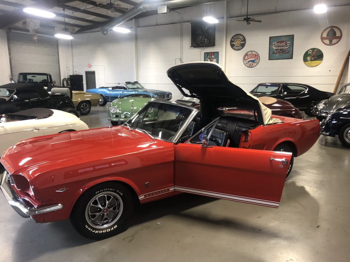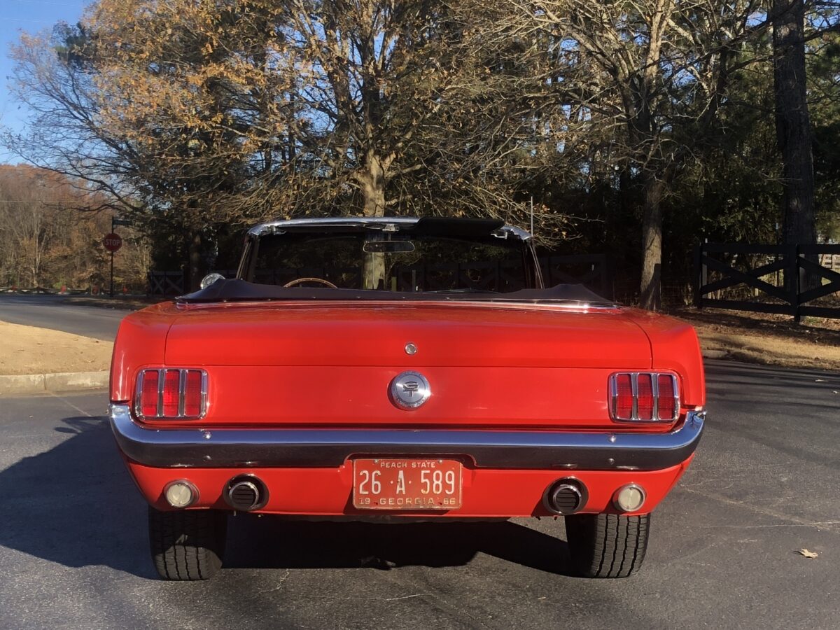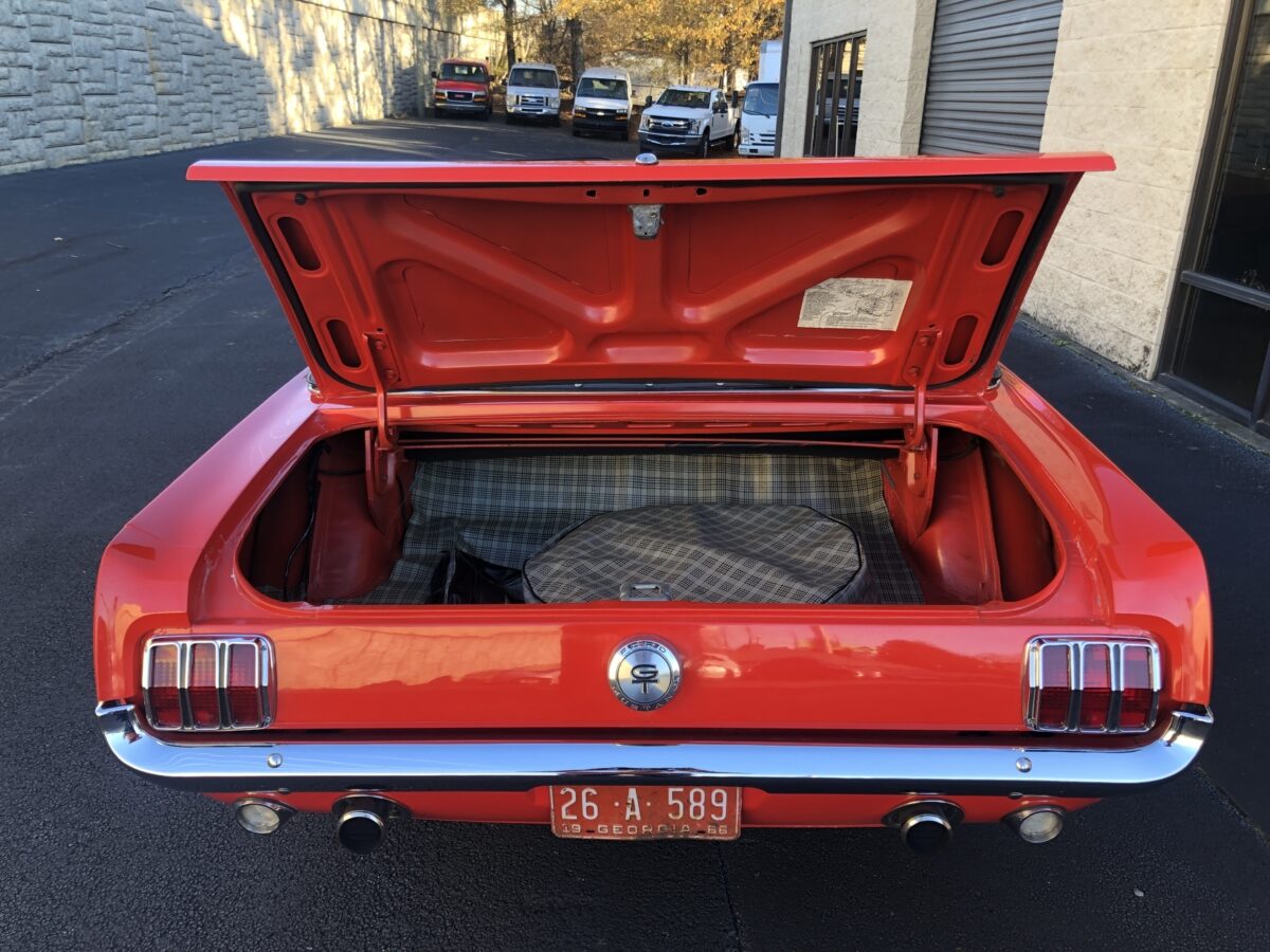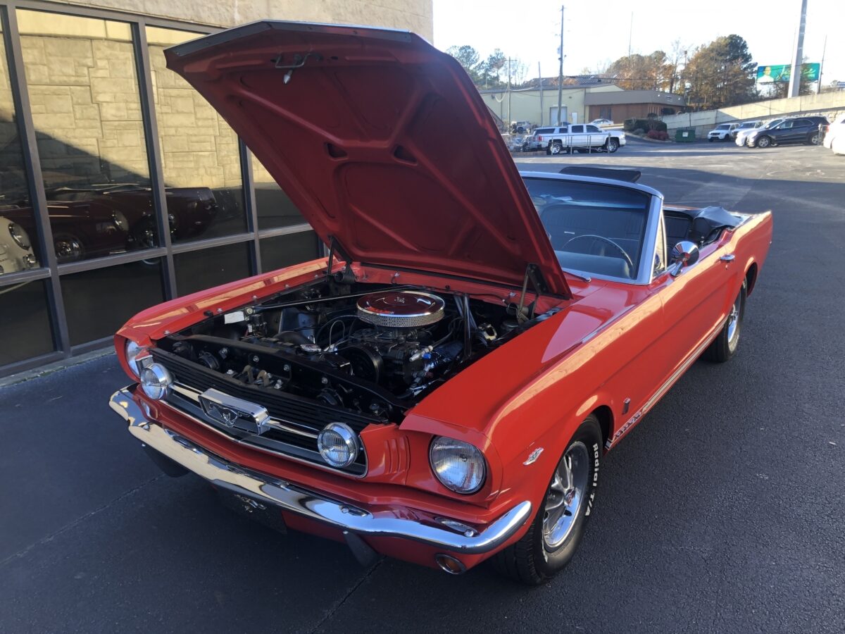 Great opportunity on a True GT ’66 Pony Convertible with great restoration history and documentation that is ready to be driven and enjoyed. Local gentleman here in Georgia purchased this car 13 years ago and he and his family got lots of enjoyment from the car and have decided it is time to pass it on to the next lucky owner, maybe you!!? He dropped the car to me to sell for him on consignment and I was happy to handle the sale given the condition and history and documentation. I have driven this car about 20 miles and was very impressed with how it handled the road and I am sure the next lucky owner will be extremely pleased when this Signal Flare Red beauty arrives in their driveway. I will do my best to provide enough pictures, info and video to help you decide if this is the classic Mustang you have been searching for. I am also a licensed transport broker and can get you a great rate on Enclosed Transport anywhere in the country and welcome overseas buyers and can assist in getting the car to the port of your choice. Sit back and enjoy!