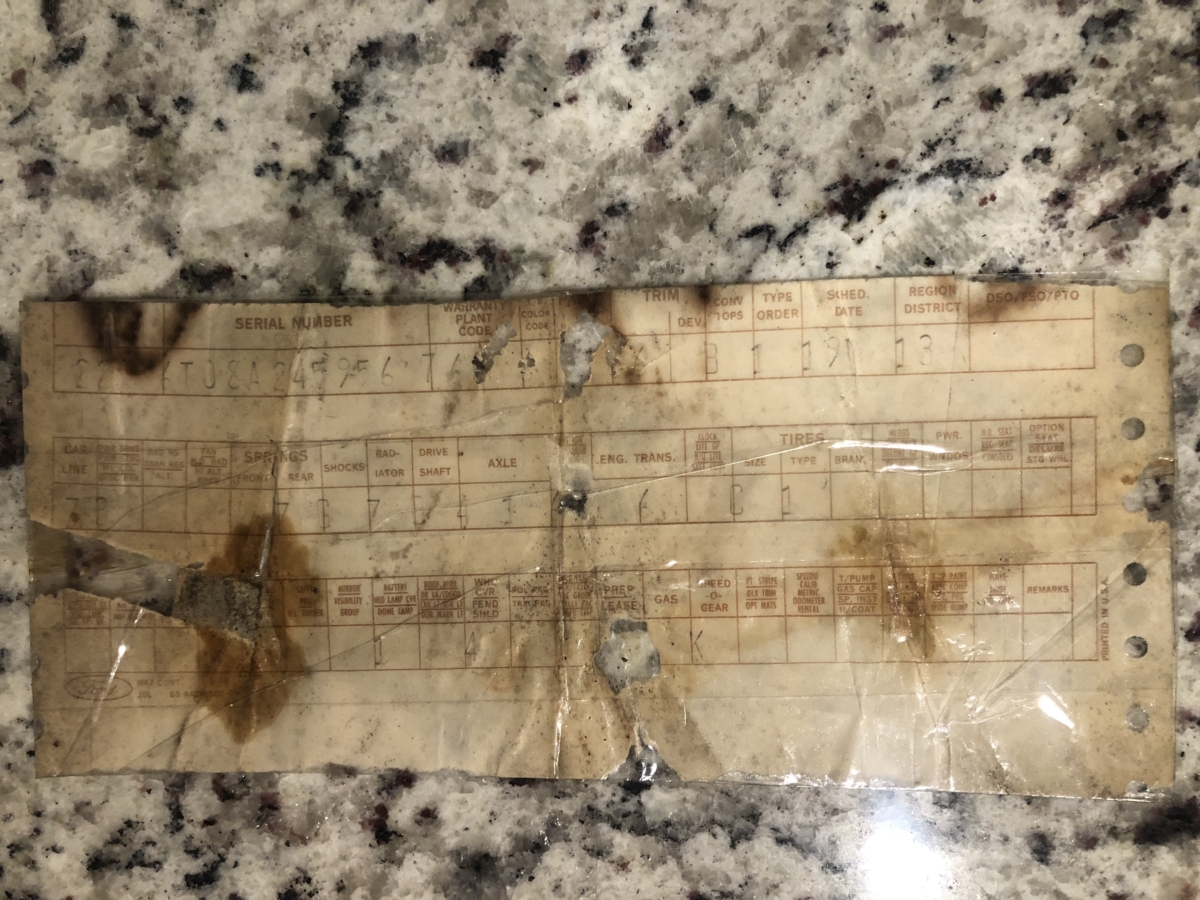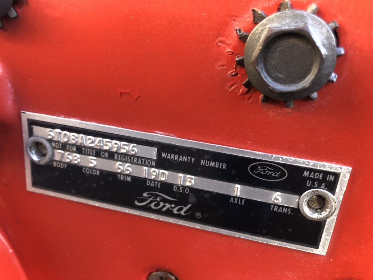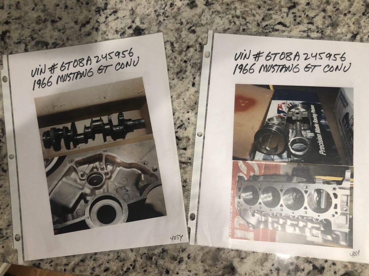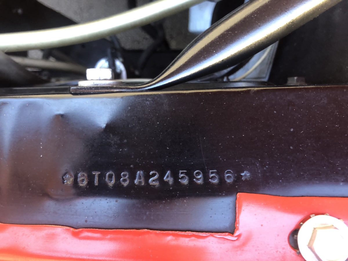 Door tag and Vin stamping on drivers inner fender are very clear and a nice assortment of documentation including an original build card, receipts and photos of restoration, engine rebuild, and maintenance.
