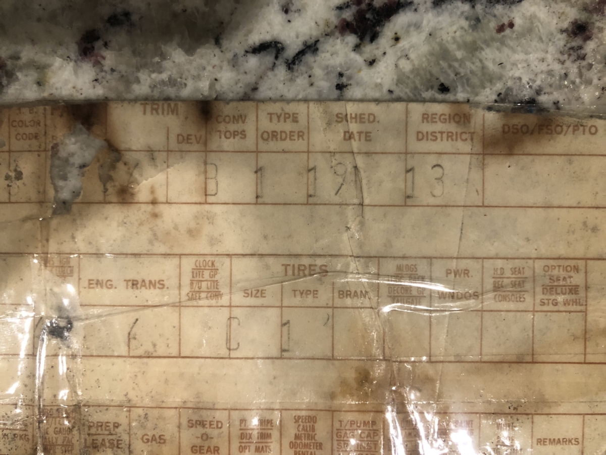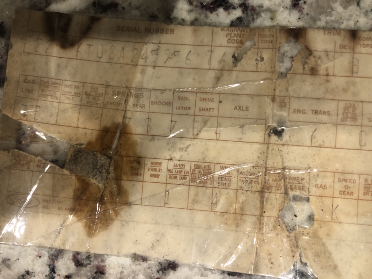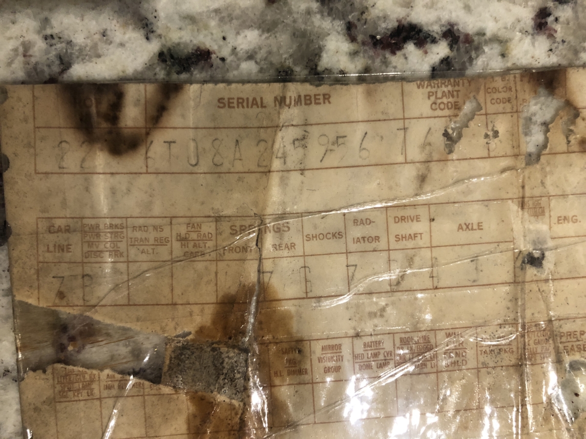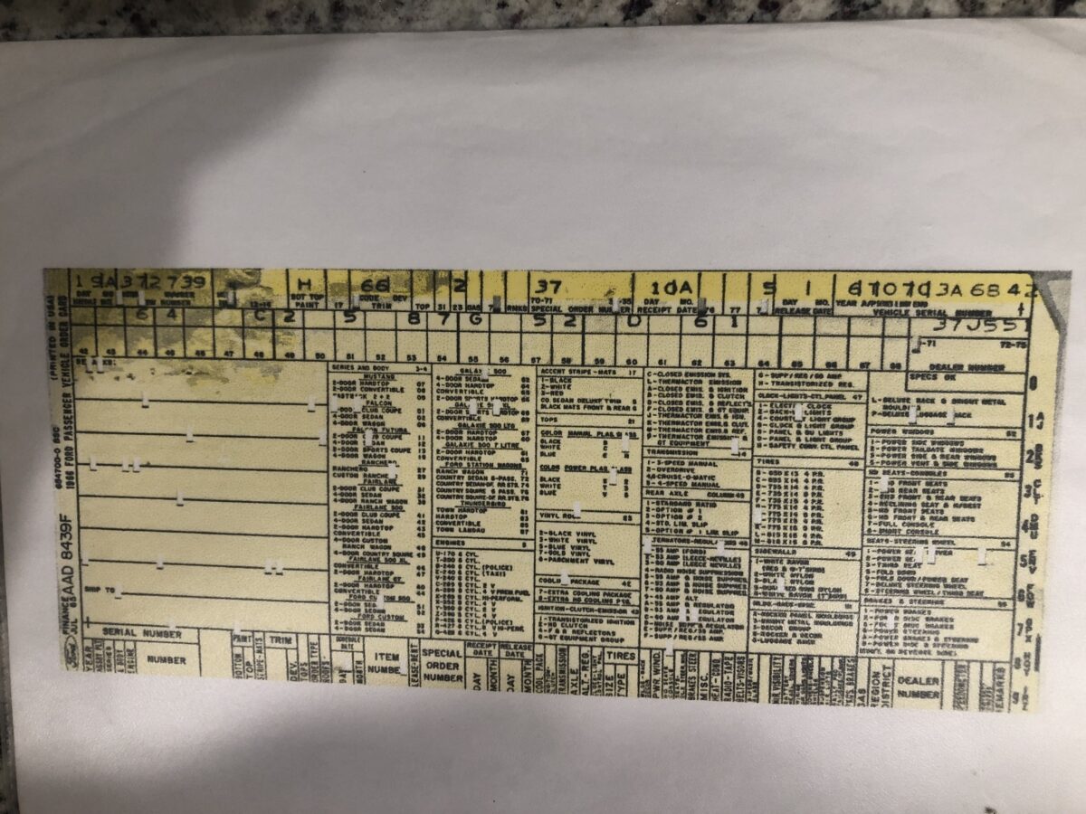 Door tag and Vin stamping on drivers inner fender are very clear and a nice assortment of documentation including an original build card, receipts and photos of restoration, engine rebuild, and maintenance.