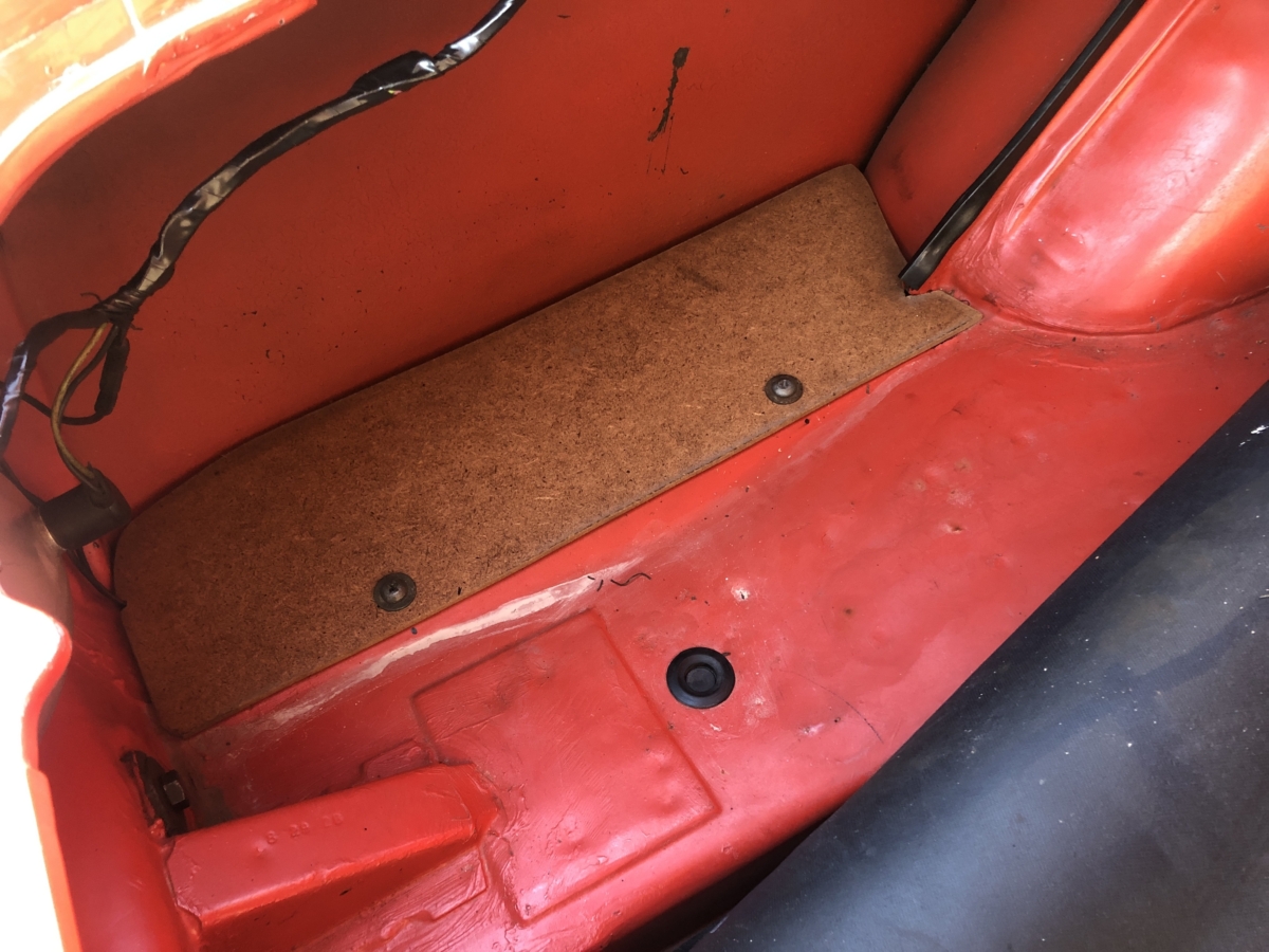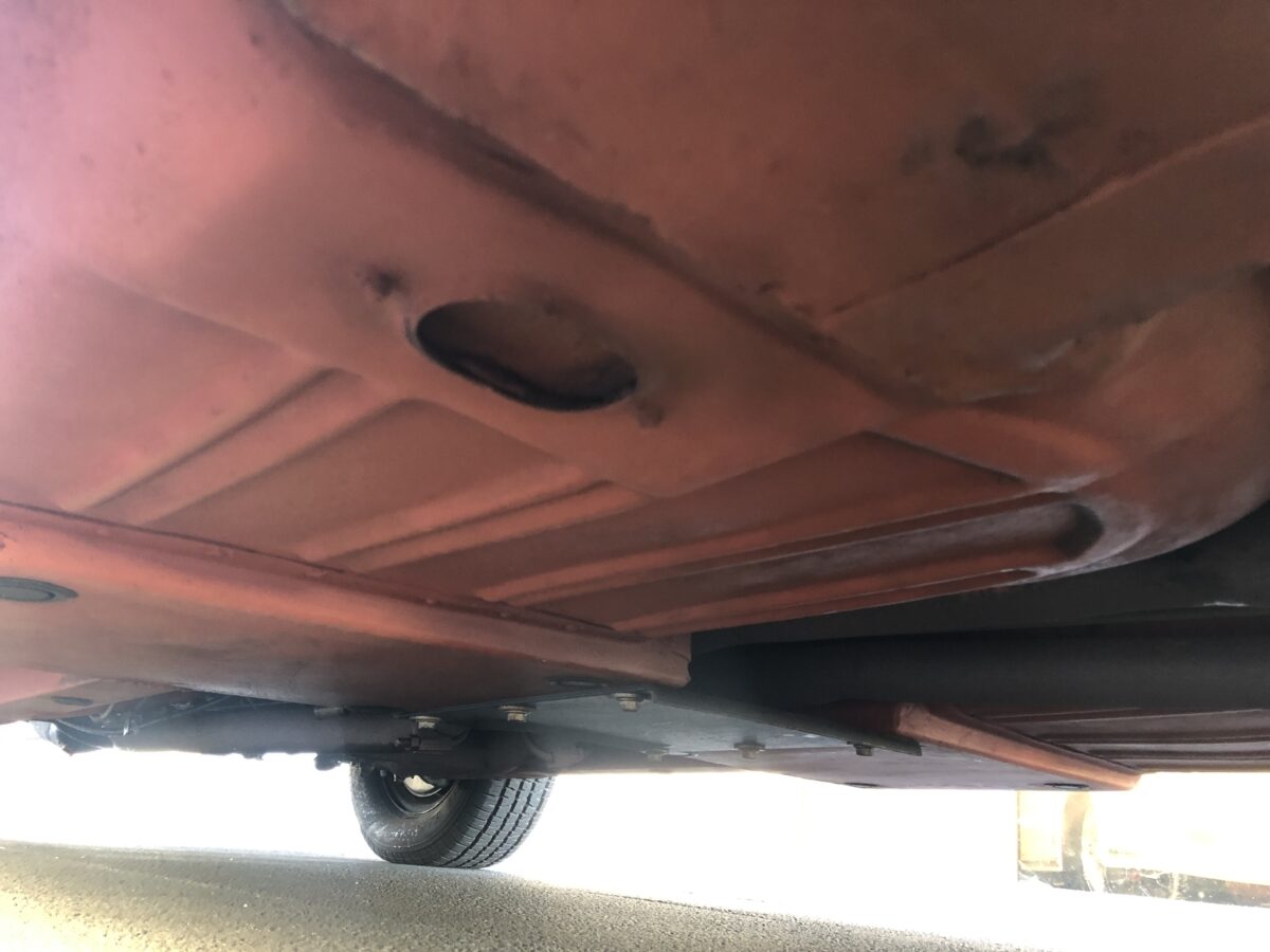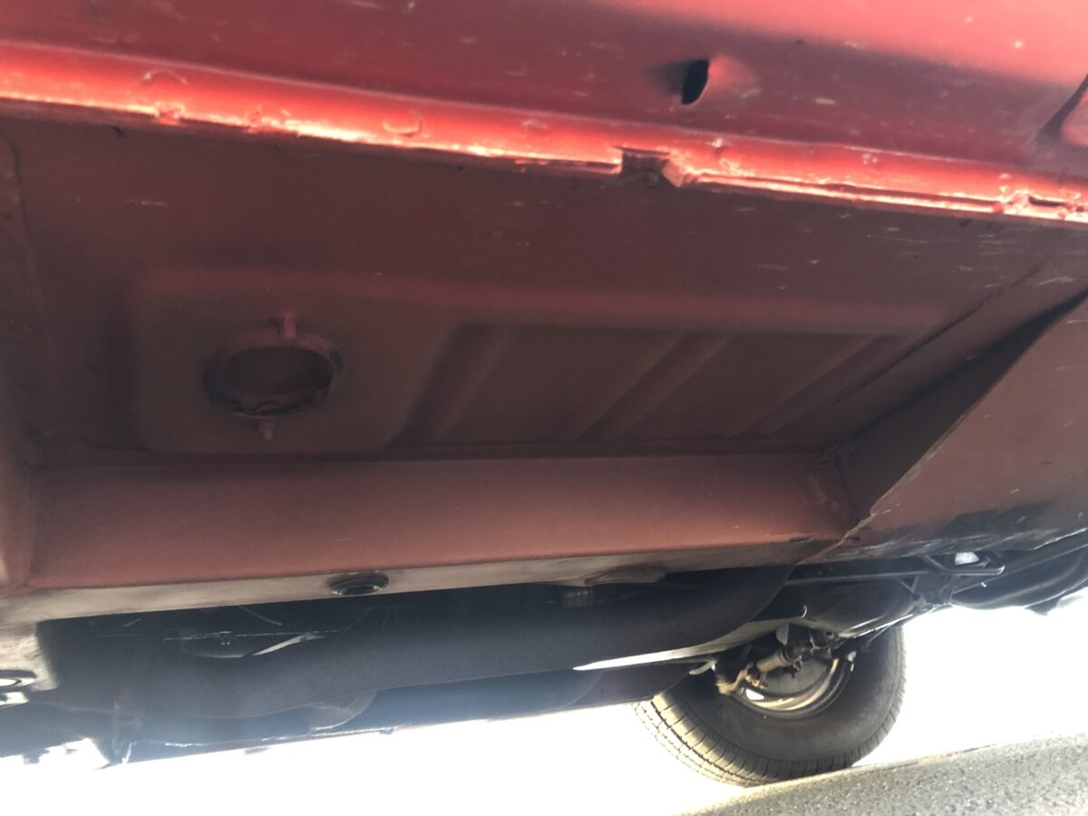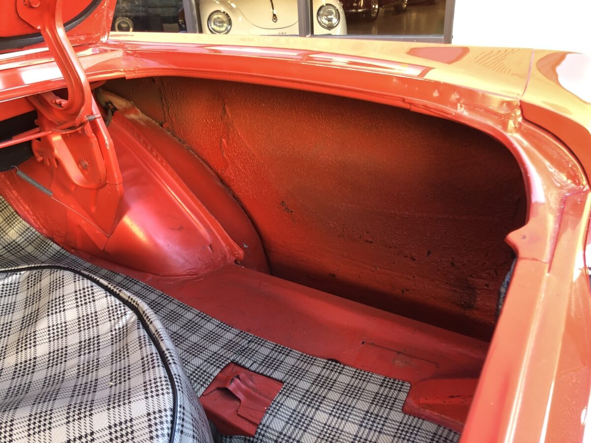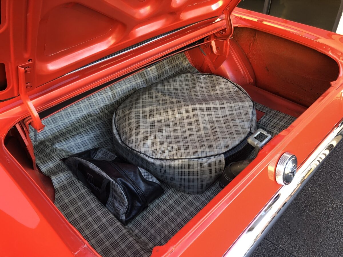 The undercarriage looks great and the floorpans are in exceptional condition and appear to be all original. Nice coat of red oxide primer was applied at time of restoration. The trunk area is also very nice and rock solid with trunk mat, spare tire and tool bag.