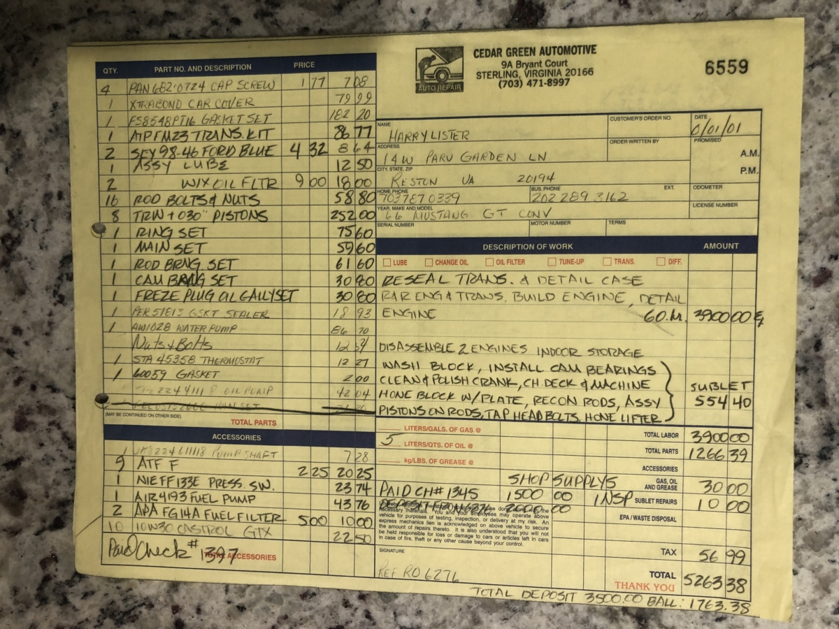 Under the hood of this A-Code True GT is the original 289 225 hp V8 4bbl that has been completely rebuilt in 2001 as documentation and pics show. It had 101,000 miles on it at the time of rebuild and now has 116,450 miles so just 15,000 since the rebuild most of which were put on by the current owner in the past 13 years. The rebuild was fully documented in pics and a receipt that is included from the builder. At the time of the rebuild the C-4 Automatic transmission was gone through and resealed as well. The motor has great compression and runs out beautifully. Transmission shifts super smooth. I had it out on the highway at 75 mph and it drove effortlessly. The current owner has done lots of maintenance and regular oil changes over the years with receipts included. It has the correct GT Quick Ratio Steering box with tag and correct large single bowl master cylinder and front disc brakes that have been redone. Suspension feels great and it has the correct heavy duty GT front sway bar. Beautiful Styled Steel wheels are wearing newer BFG Radial TA white letter radials. Nice tone fROM the factory correct GT dual exhaust with trumpets exiting the rear valance and proper exhaust hangers evident. Engine bay is nicely detailed and very correct looking. This GT has plenty of power and is ready to cruise and will most likely take home its share of trophies still at the local shows and cruise- ins if that is what you enjoy.