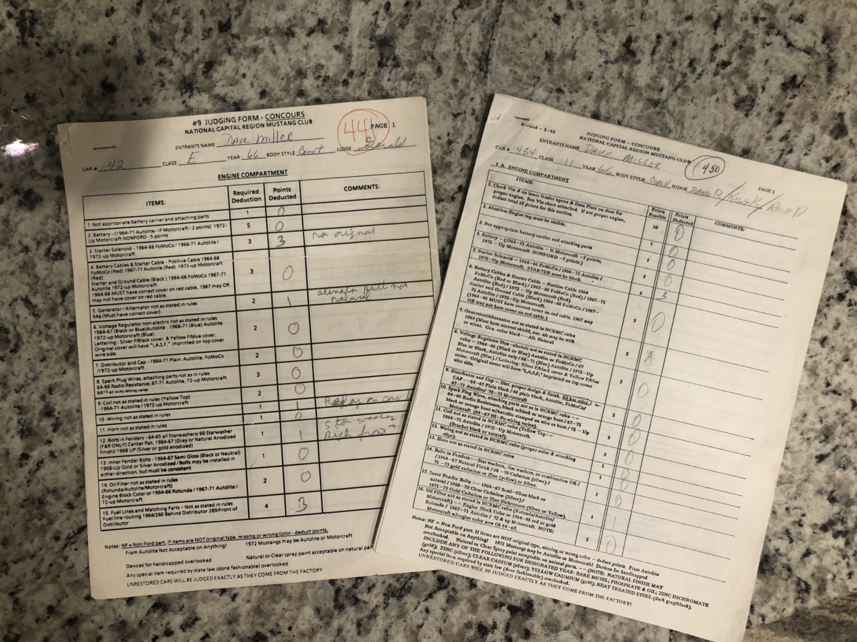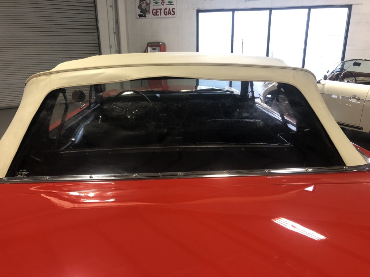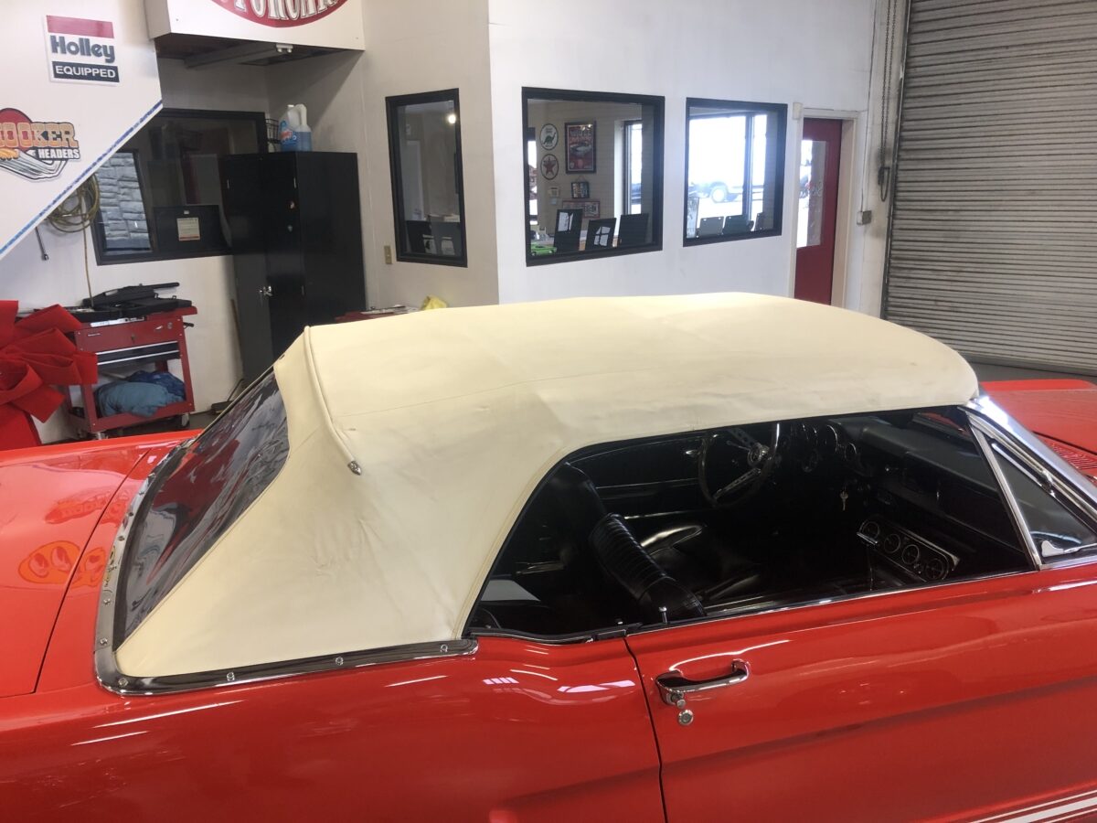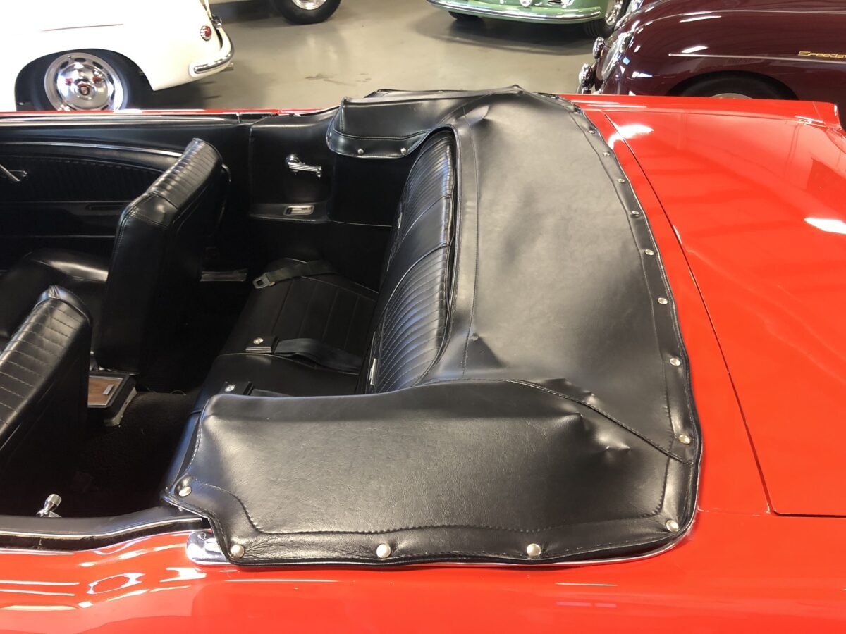 This classic Mustang was treated to a very high level restoration in 1989 in its original Signal flare red color. We have photo documentation of the restoration and it appears to have its original body panels with Ford numbers stamped on front fenders and rear quarters. The paint has held up beautifully and we just did a thorough detail to really highlight this beautiful color. Body is very straight overall and no signs of rust anywhere on the body. It wears original GT type stripes and badges and all of the chrome and trim looks excellent. Other than a few minor chips and blemishes from 33 years of enjoyment this ’66 Pony is still very show worthy and a great car to drive and enjoy and take to the local cruise-ins. There are judging sheets from Concours MCA events where it scored 441 and 450 points out of 500 making it a fantastic and correct driven show car. Beautiful White power convertible top also still in excellent condition and black boot cover for when the top is down which should be most of the time hopefully.