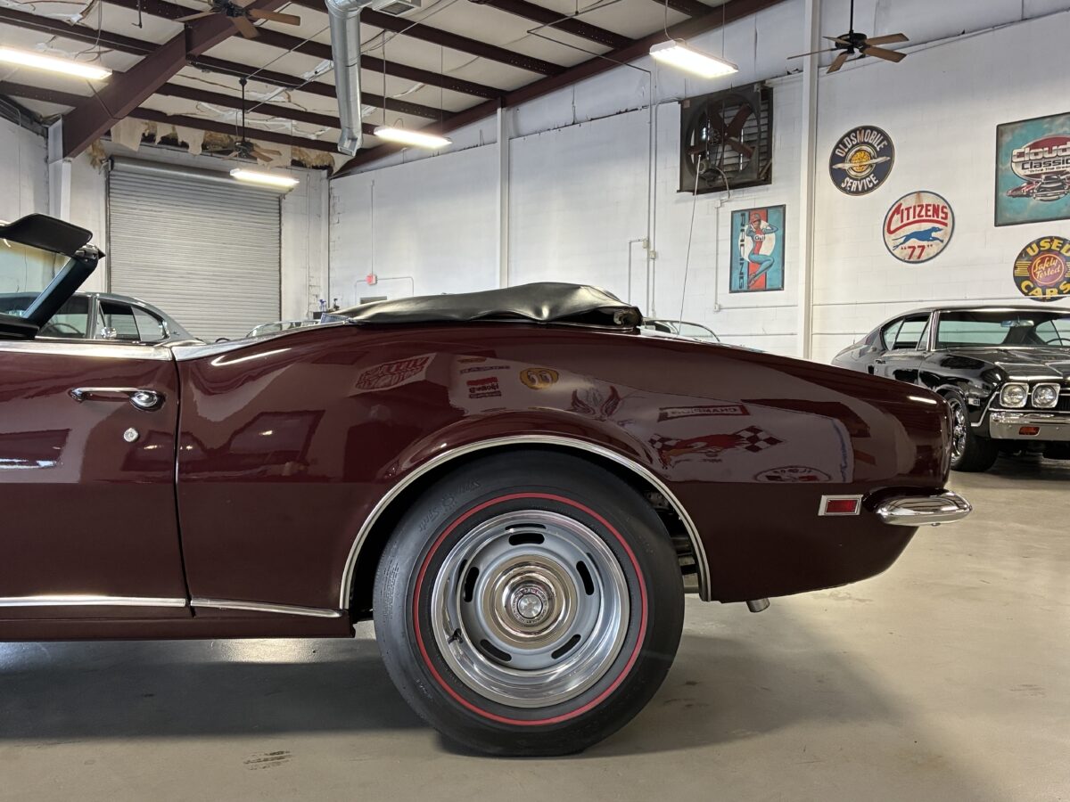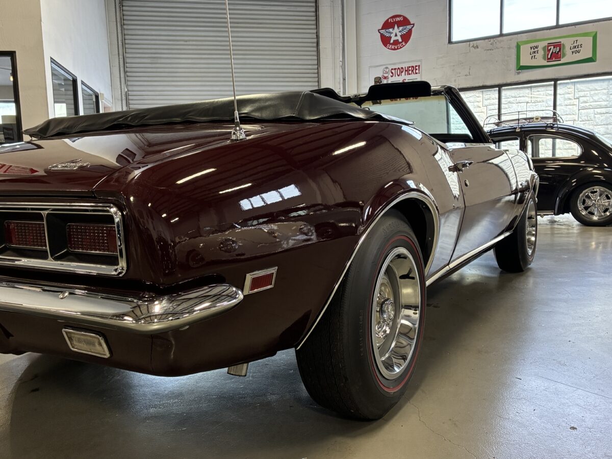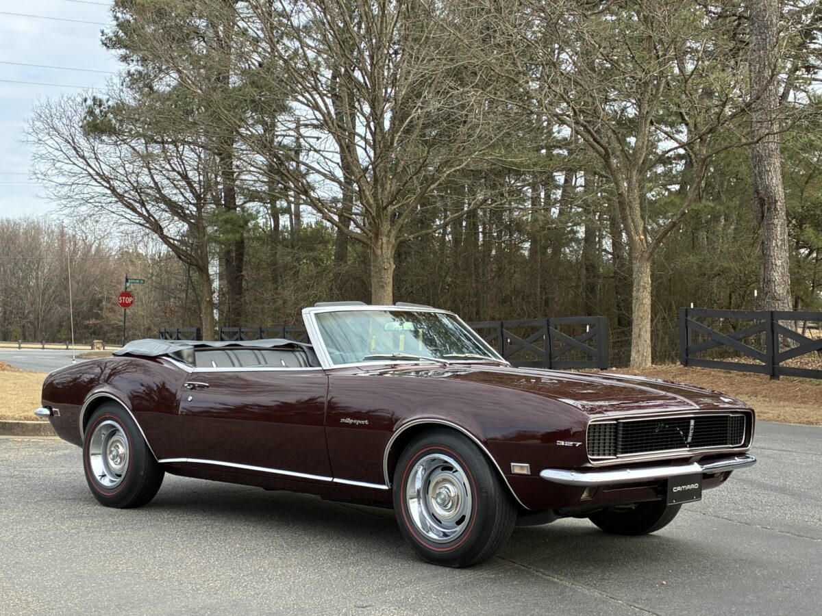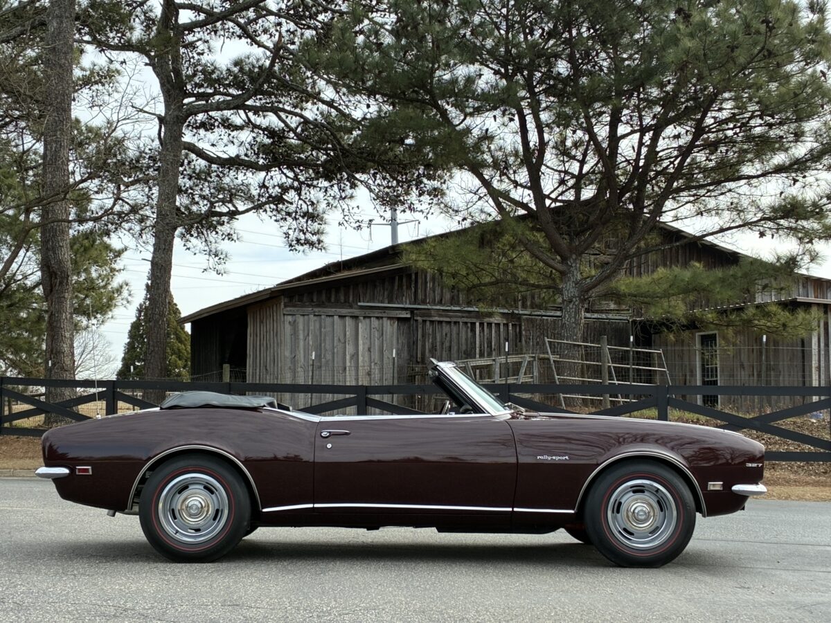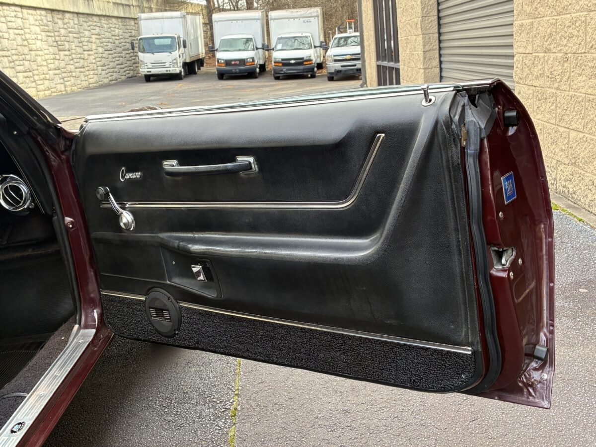 I purchased this amazing Cordovan Maroon ’68 RS convertible from a local family here in the Atlanta area who have owned this car for over 36 years! It was originally sold at Rutledge Chevrolet in Lafayette, GA on May 25, 1968. We have the original sales invoice and receipt for the $800 deposit the folks put down on it when they bought it new. I believe the car has only had 3 owners based on the documentation we have. It appears to have had one repaint in the original color, done in 1982 by the second owner as documented in the receipts. It was then sold in 1989 to the folks I purchased it from. These folks are amazing car enthusiasts who spent weekends at car events and cruise-ins and truly loved this Camaro. In addition to this Camaro they also had a C-2 Corvette Convertible and C-3 Corvette Convertible. Sadly, the owners health declined over the past several years and they were no longer able to drive and enjoy this beauty so the difficult decision was made and it is time for this beautiful Camaro to live its next chapter with a lucky new owner…maybe you?!!!