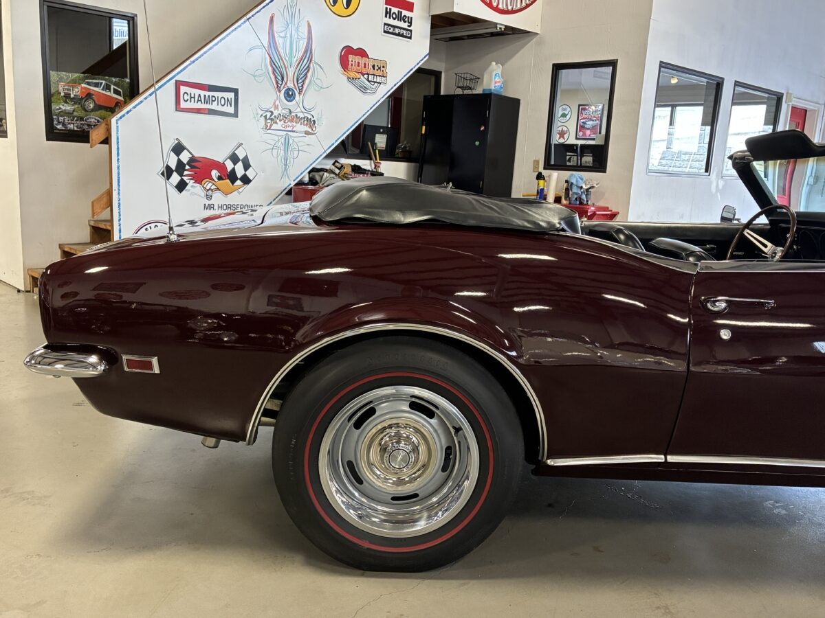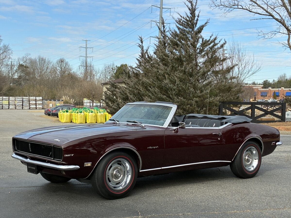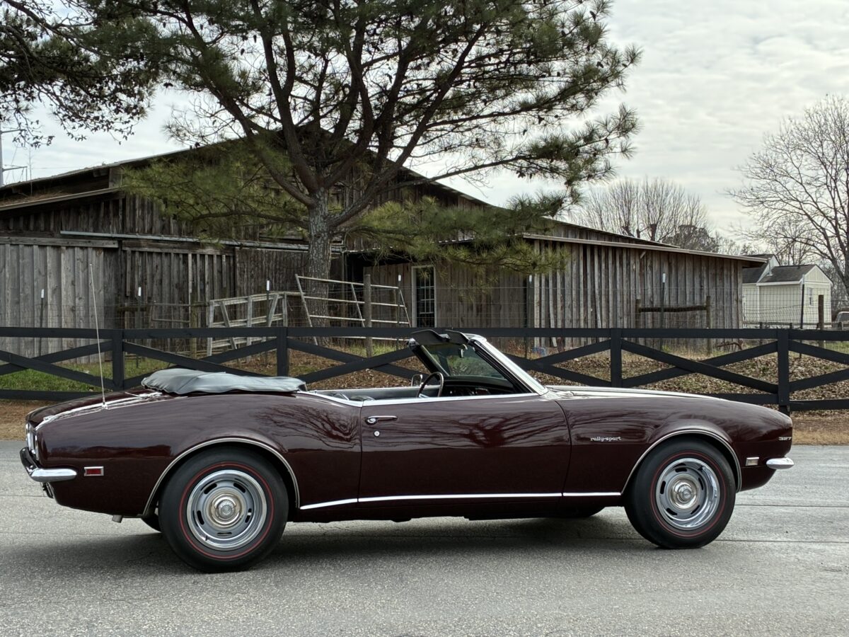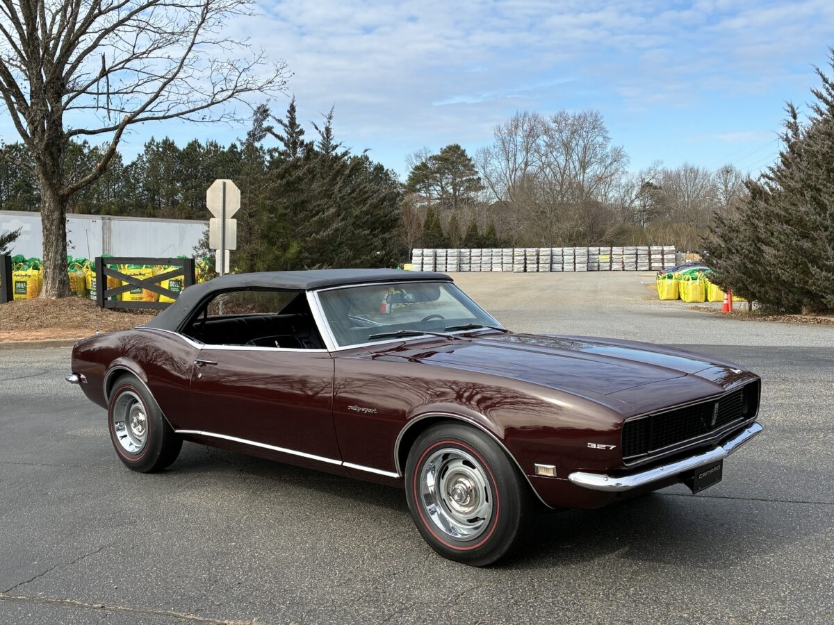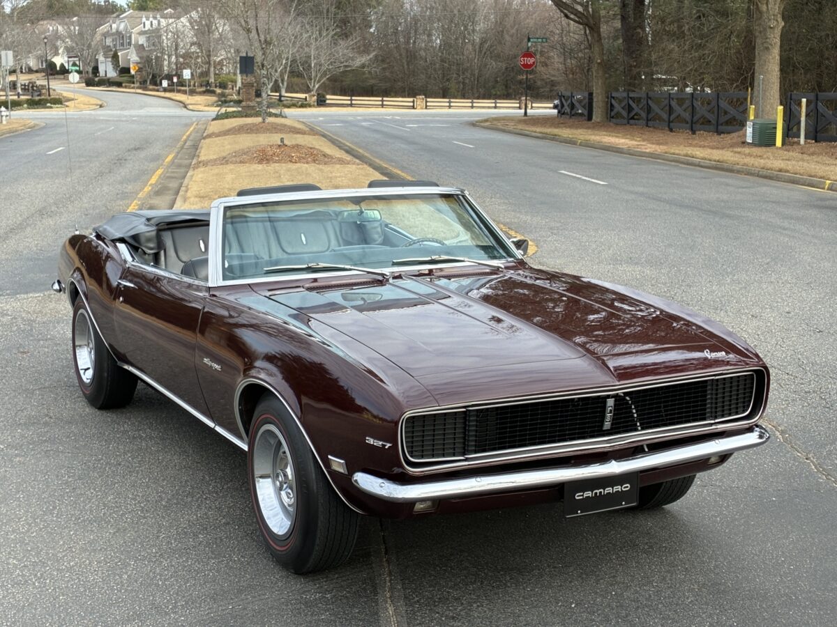 I purchased this amazing Cordovan Maroon ’68 RS convertible from a local family here in the Atlanta area who have owned this car for over 36 years! It was originally sold at Rutledge Chevrolet in Lafayette, GA on May 25, 1968. We have the original sales invoice and receipt for the $800 deposit the folks put down on it when they bought it new. I believe the car has only had 3 owners based on the documentation we have. It appears to have had one repaint in the original color, done in 1982 by the second owner as documented in the receipts. It was then sold in 1989 to the folks I purchased it from. These folks are amazing car enthusiasts who spent weekends at car events and cruise-ins and truly loved this Camaro. In addition to this Camaro they also had a C-2 Corvette Convertible and C-3 Corvette Convertible. Sadly, the owners health declined over the past several years and they were no longer able to drive and enjoy this beauty so the difficult decision was made and it is time for this beautiful Camaro to live its next chapter with a lucky new owner…maybe you?!!!