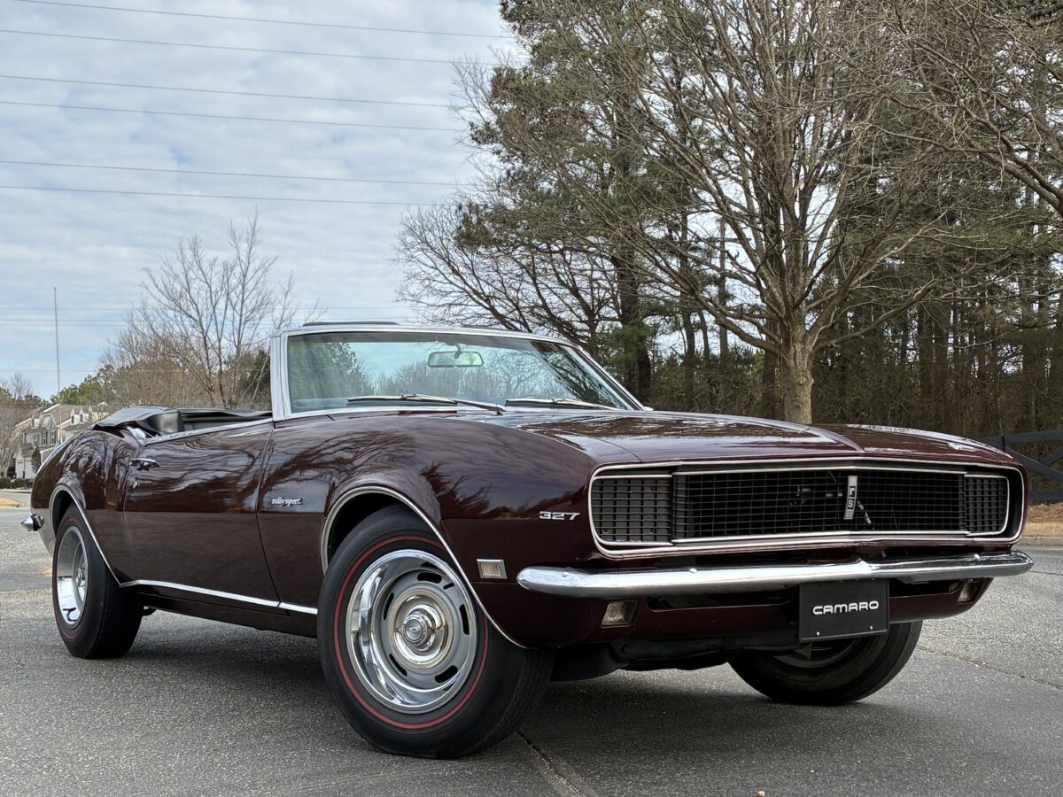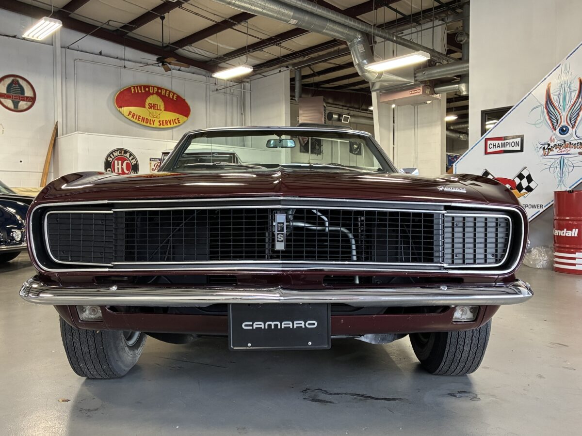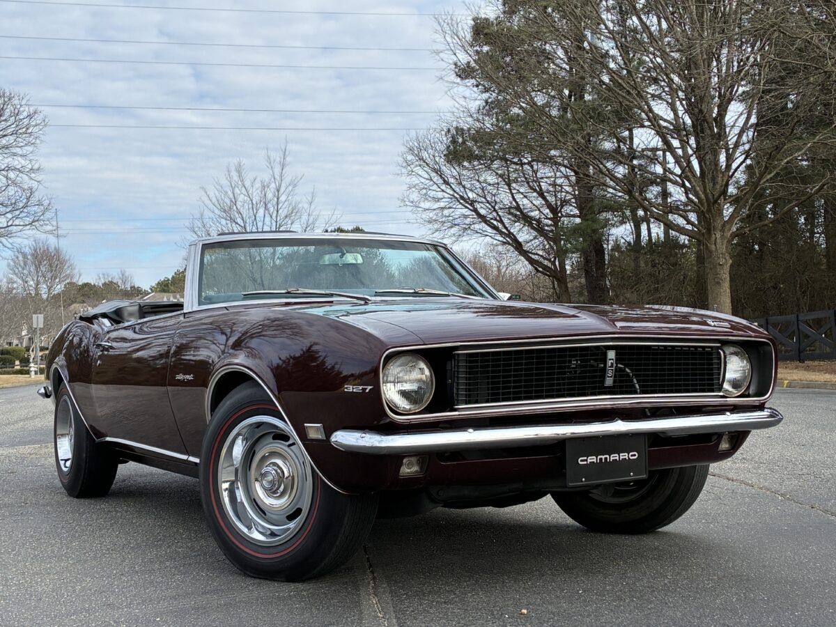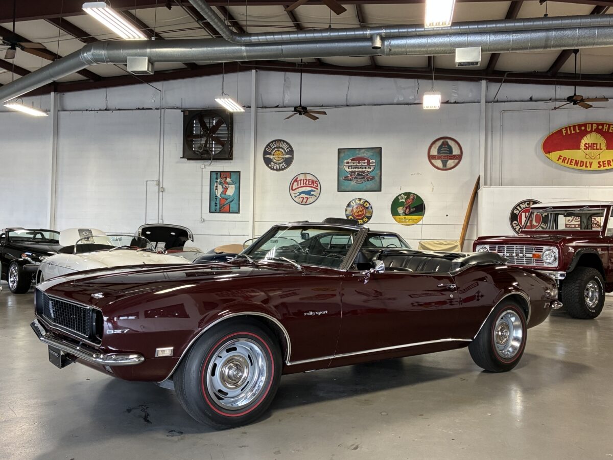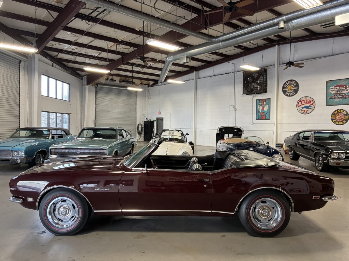 I purchased this amazing Cordovan Maroon ’68 RS convertible from a local family here in the Atlanta area who have owned this car for over 36 years! It was originally sold at Rutledge Chevrolet in Lafayette, GA on May 25, 1968. We have the original sales invoice and receipt for the $800 deposit the folks put down on it when they bought it new. I believe the car has only had 3 owners based on the documentation we have. It appears to have had one repaint in the original color, done in 1982 by the second owner as documented in the receipts. It was then sold in 1989 to the folks I purchased it from. These folks are amazing car enthusiasts who spent weekends at car events and cruise-ins and truly loved this Camaro. In addition to this Camaro they also had a C-2 Corvette Convertible and C-3 Corvette Convertible. Sadly, the owners health declined over the past several years and they were no longer able to drive and enjoy this beauty so the difficult decision was made and it is time for this beautiful Camaro to live its next chapter with a lucky new owner…maybe you?!!!