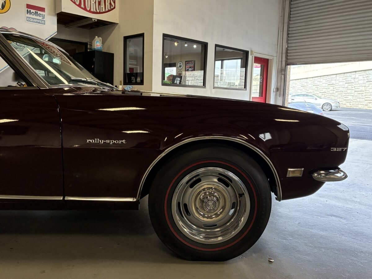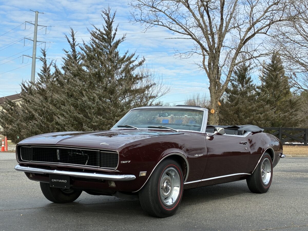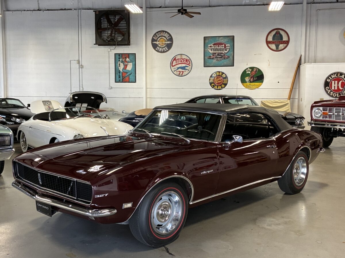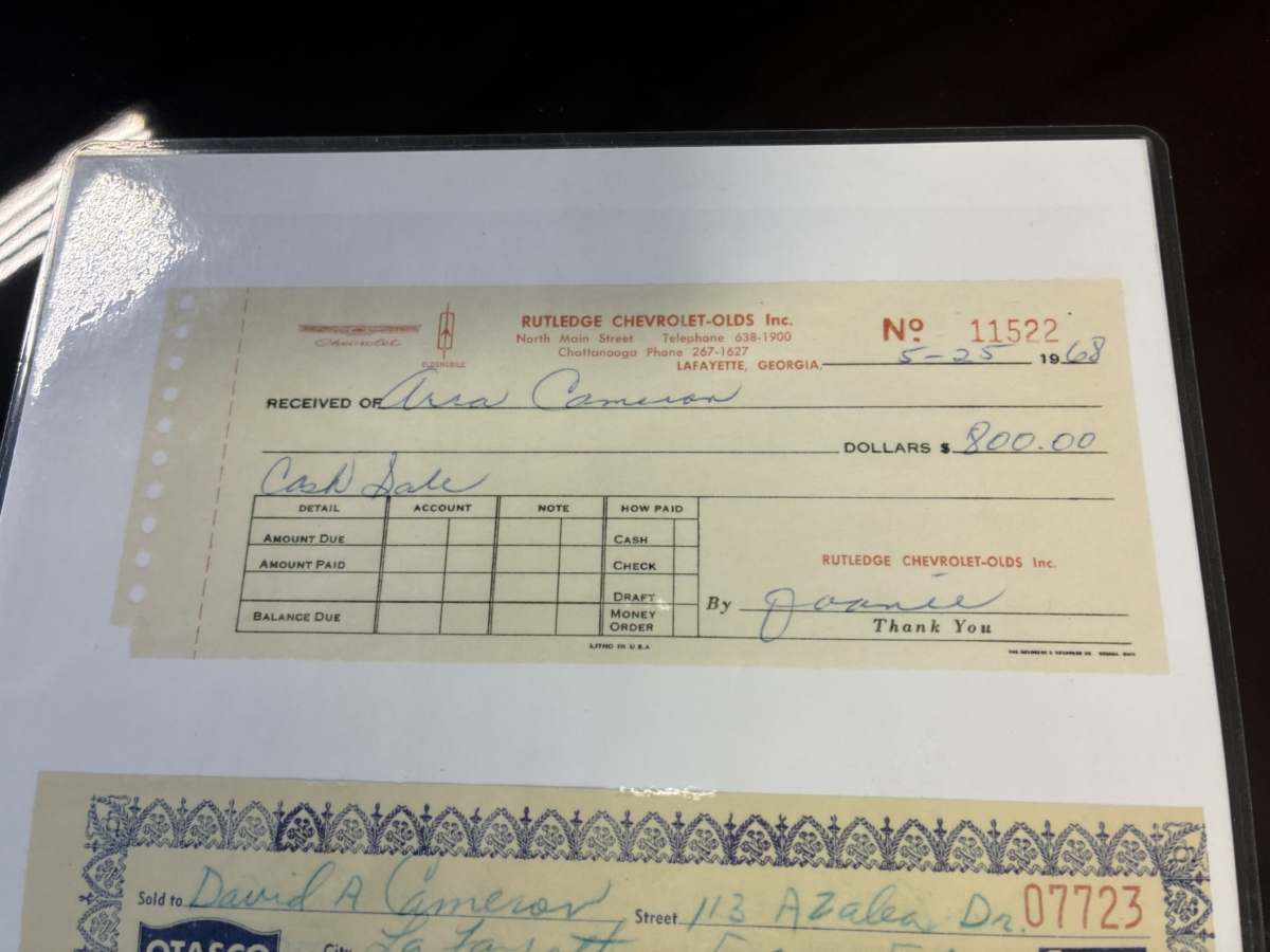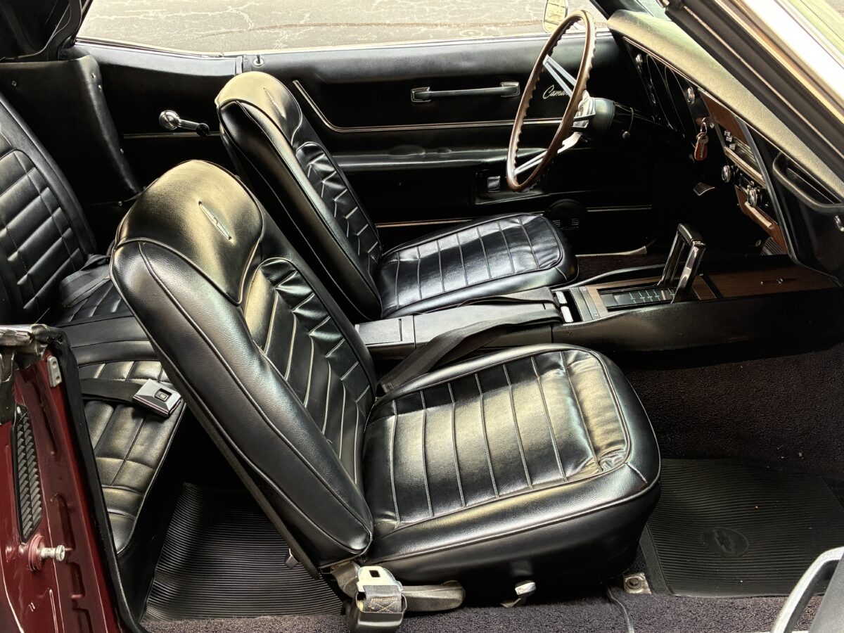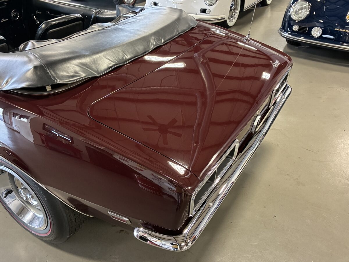 I purchased this amazing Cordovan Maroon ’68 RS convertible from a local family here in the Atlanta area who have owned this car for over 36 years! It was originally sold at Rutledge Chevrolet in Lafayette, GA on May 25, 1968. We have the original sales invoice and receipt for the $800 deposit the folks put down on it when they bought it new. I believe the car has only had 3 owners based on the documentation we have. It appears to have had one repaint in the original color, done in 1982 by the second owner as documented in the receipts. It was then sold in 1989 to the folks I purchased it from. These folks are amazing car enthusiasts who spent weekends at car events and cruise-ins and truly loved this Camaro. In addition to this Camaro they also had a C-2 Corvette Convertible and C-3 Corvette Convertible. Sadly, the owners health declined over the past several years and they were no longer able to drive and enjoy this beauty so the difficult decision was made and it is time for this beautiful Camaro to live its next chapter with a lucky new owner…maybe you?!!!