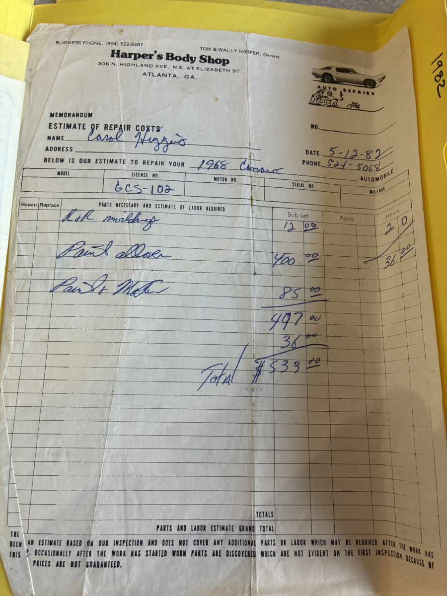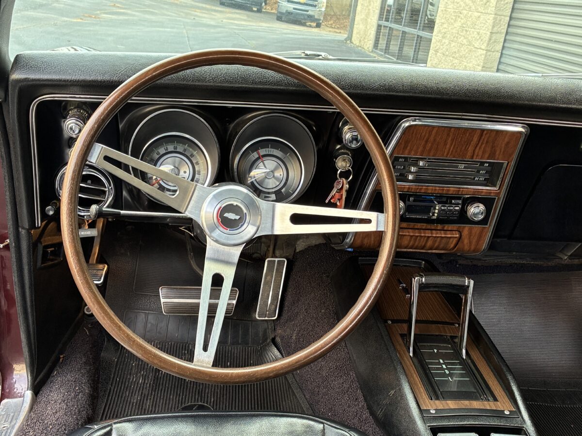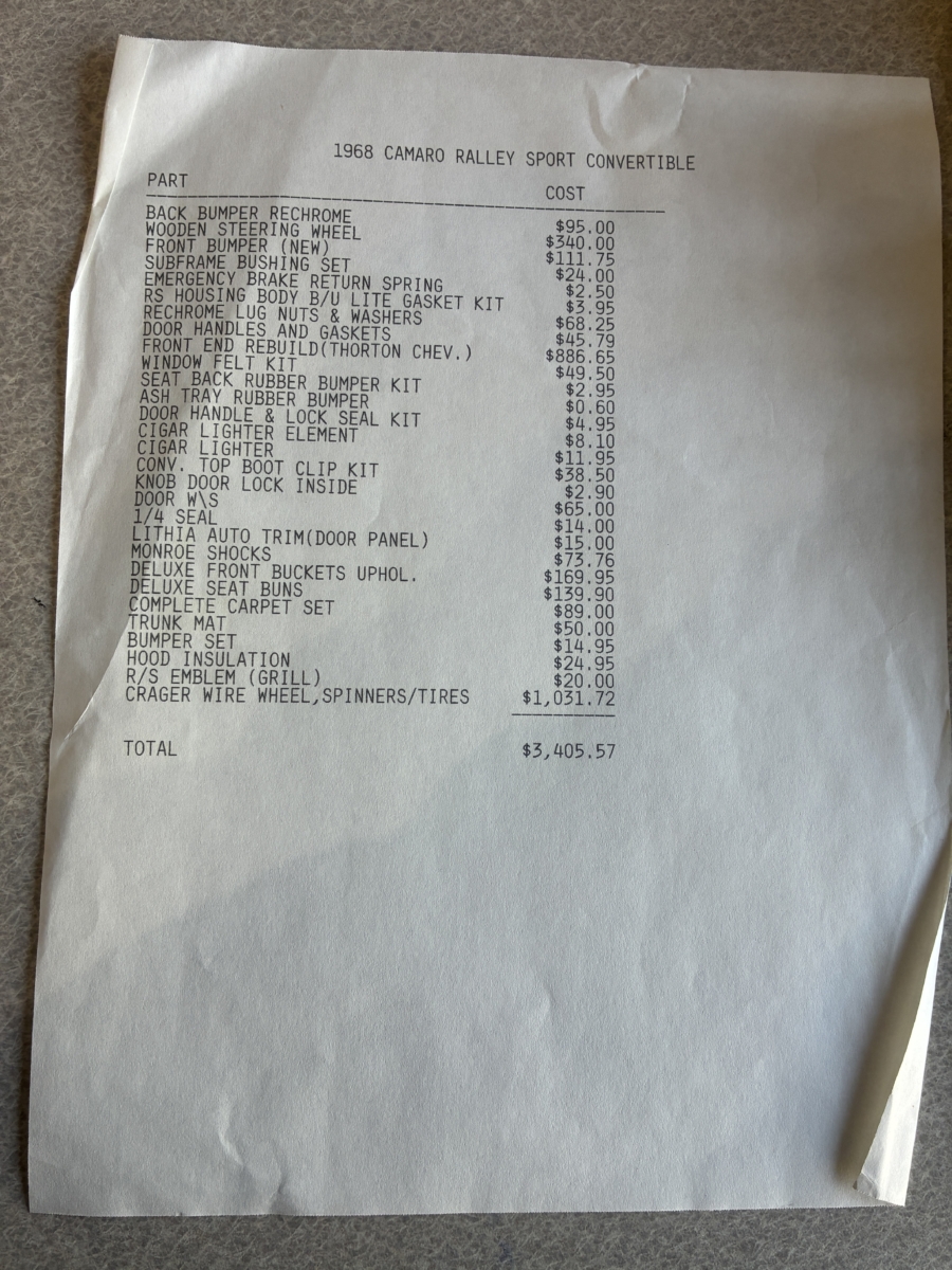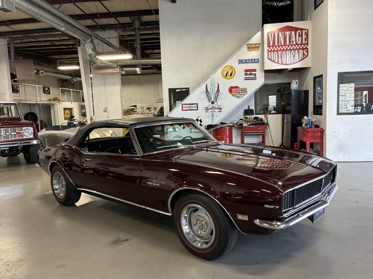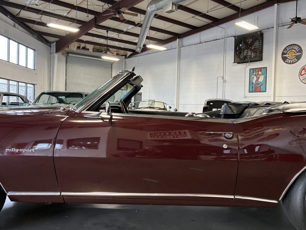 I purchased this amazing Cordovan Maroon ’68 RS convertible from a local family here in the Atlanta area who have owned this car for over 36 years! It was originally sold at Rutledge Chevrolet in Lafayette, GA on May 25, 1968. We have the original sales invoice and receipt for the $800 deposit the folks put down on it when they bought it new. I believe the car has only had 3 owners based on the documentation we have. It appears to have had one repaint in the original color, done in 1982 by the second owner as documented in the receipts. It was then sold in 1989 to the folks I purchased it from. These folks are amazing car enthusiasts who spent weekends at car events and cruise-ins and truly loved this Camaro. In addition to this Camaro they also had a C-2 Corvette Convertible and C-3 Corvette Convertible. Sadly, the owners health declined over the past several years and they were no longer able to drive and enjoy this beauty so the difficult decision was made and it is time for this beautiful Camaro to live its next chapter with a lucky new owner…maybe you?!!!