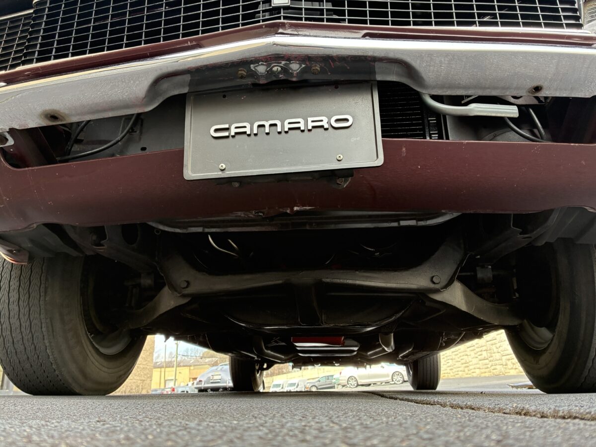 Always a Georgia car, this ’68 Camaro RS has a rock solid body with all original body panels. Based on receipt history it appears the car received one repaint in the original Cordovan Maroon color in 1982. Hard to believe the paint n this beauty is 44 yrs old as it has held up beautifully which again speaks volumes about the overall quality and care this Camaro received in its life. Paint quality overall is very nice with a few minor chips that have been touched up over the years. Body panels are nice and straight and doors open and shut like new. The folks I bought it from did some cosmetic work to it after they purchased it in 1989 including a new front bumper and re-chroming the original rear bumper. This one has the RS package with the black lattice grille vacuum operated concealed headlight doors that function correctly still. “RS” emblem on the grille and rear filler cap, sports styled back up lights in the lower rear valance, front and rear wheel opening moldings, lower body side molding and stainless trim on the top of the doors. All of the chrome and trim is in excellent condition. All of the glass is excellent condition and windows roll up and down nicely. The convertible top was also replaced and is a power top that functions perfectly and latches down nicely. Boot cover in great condition. You may notice it is not completely fastened down in some of the pics as it was cold and the boot cover was not used for a while so just needs to be stretched out a bit to fit correctly. Overall the paint and body on this RS Camaro are extremely nice and it will be welcomed at all of the local shows and cruise-ins and most likely will take home its share of trophies if that is what you enjoy. Here is a walk around photo tour of the body: