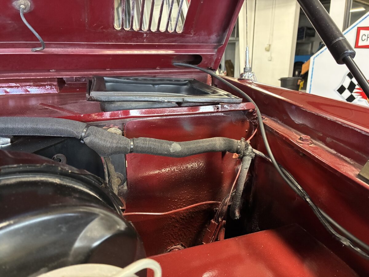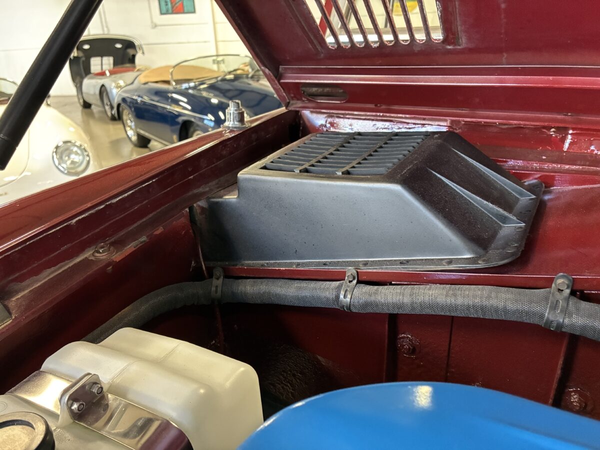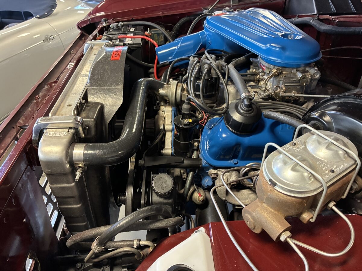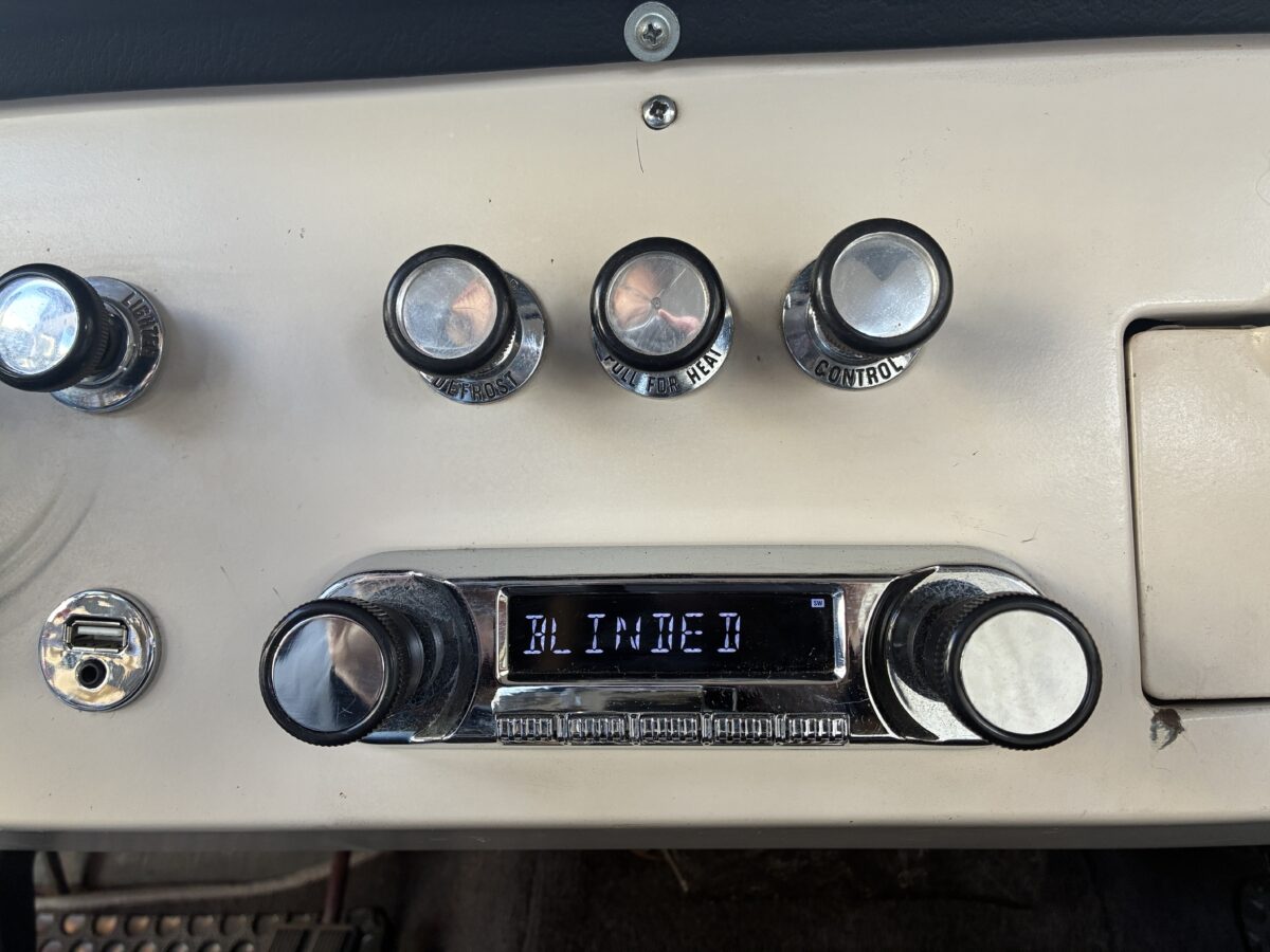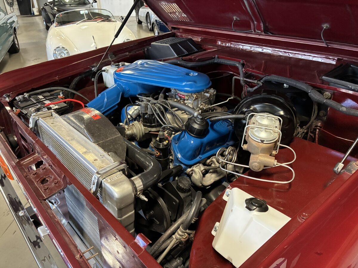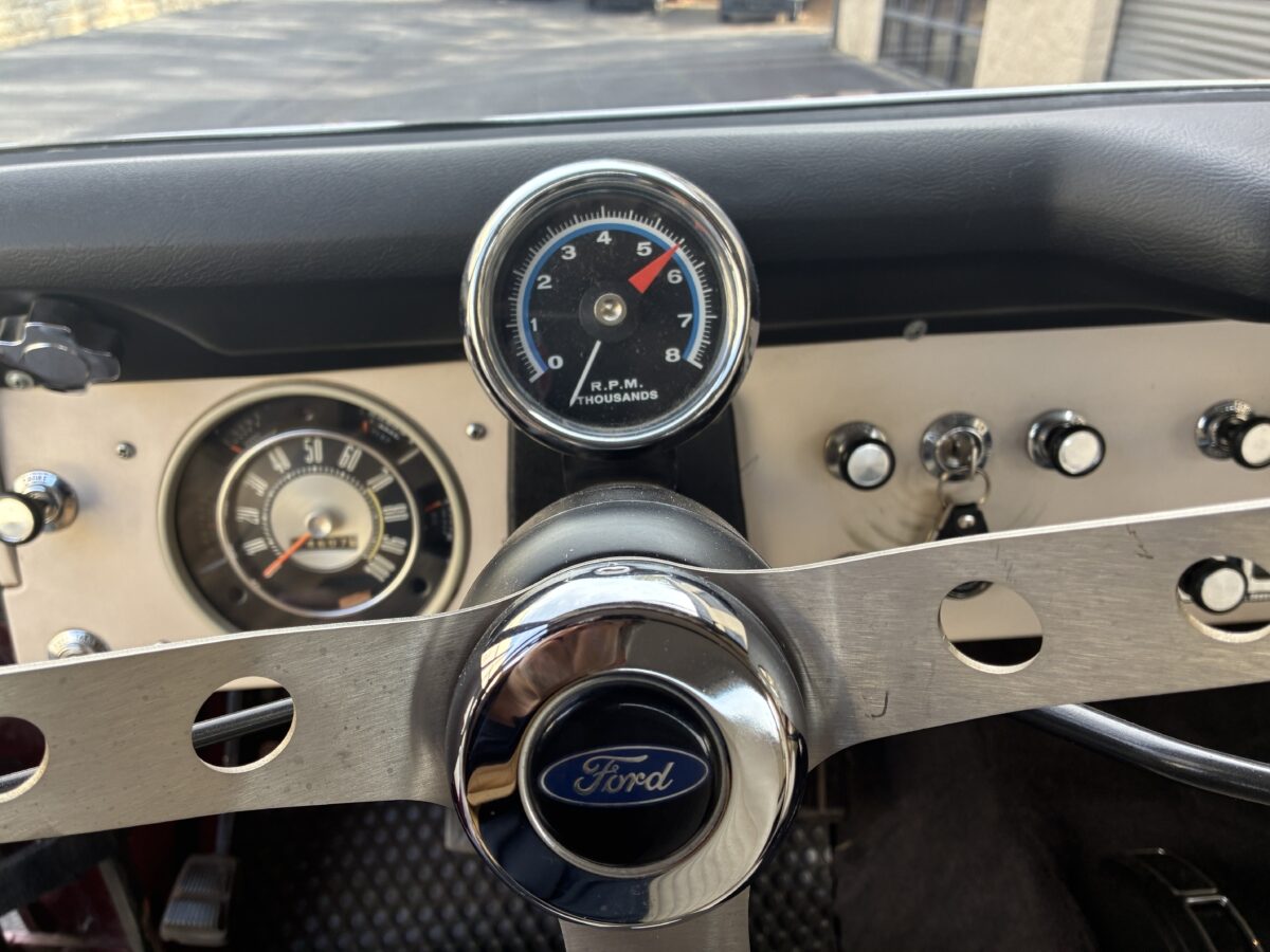 Complimenting the Royal Maroon Metallic exterior is a very nice Parchment white interior. Original front bucket seats and original rear bench seat look great with barely any wear. Nicely updated with rear TBP (Toms Bronco Parts) Quarter Panel Inserts (for soft top), TBP Premium Charcoal Carpet Kit, TBP Full cab floorboard insulation kit, TBP Quarter panel and wheel well insulation kit, a RetroSound Huntington radio w/Bluetooth and dual coil direct fit dash speaker (no cutting of the dash with this installation!!). Added tach on the column and aftermarket Woodgrain steering wheel. All Gauges work including both fuel tanks with auxiliary tank switch. Still has manual choke that works. Front and rear seat belts and a nice roll bar were installed. Some chips in the paint on the inner doors and small dent on top of inner drivers side door missing some paint. Overall the interior looks great and has some great features. Have a look: