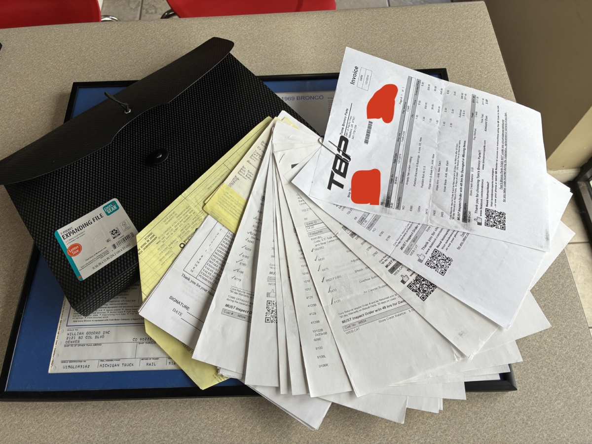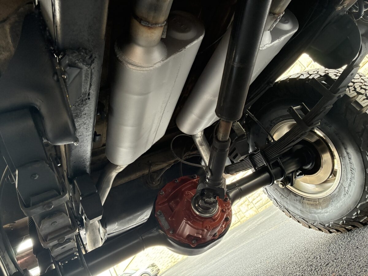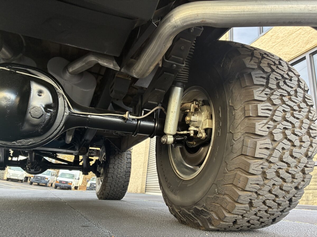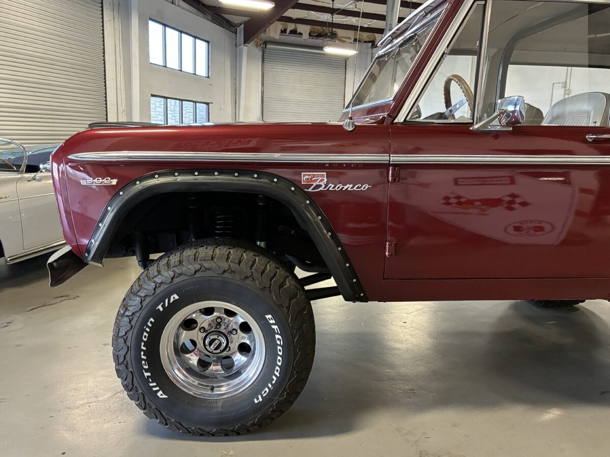 The Bronco suspension has been upgraded with Tom’s Bronco Parts 2.5” premium suspension kit. Kit includes 2.5” lift front progressive rate coil springs, 2.5” lift rear 9-pack leaf springs w/bushings & U-bolts, 14 piece C-bushing kit , 7-degree C-bushings, track bar bushings & rear radius arm bushings, front & rear extended brake hoses, driver & passenger extended e-brake cables, Bilstein 5100 series 2.5” lift shocks. All bushings have been replaced, with new adjustable track bar and track bar bushings, and HD bump stops front and rear. The steering system was completely replaced with a new TBP power steering kit, new t-style steering linkage, upper/lower steering shaft, and wood grain steering wheel. The Brake system was upgraded with TBP premium 4-wheel power disc brakes kit. The Bronco sits on a set of Mickey Thompson Classic III polished 15 x10 wheels with BFG KO2’s (33×12 50R 15 LT) tires. I have all the receipts for the work done by previous owner since 2018.