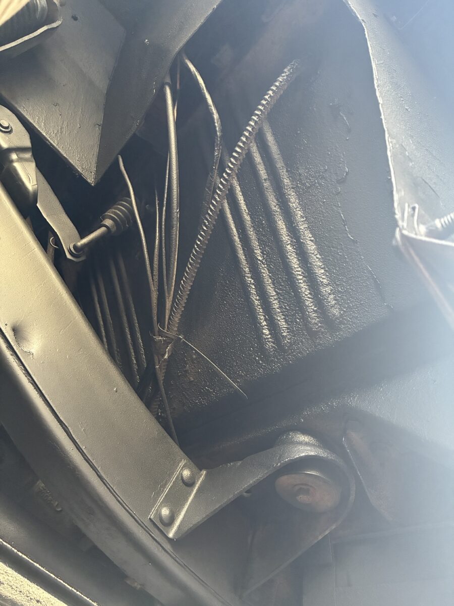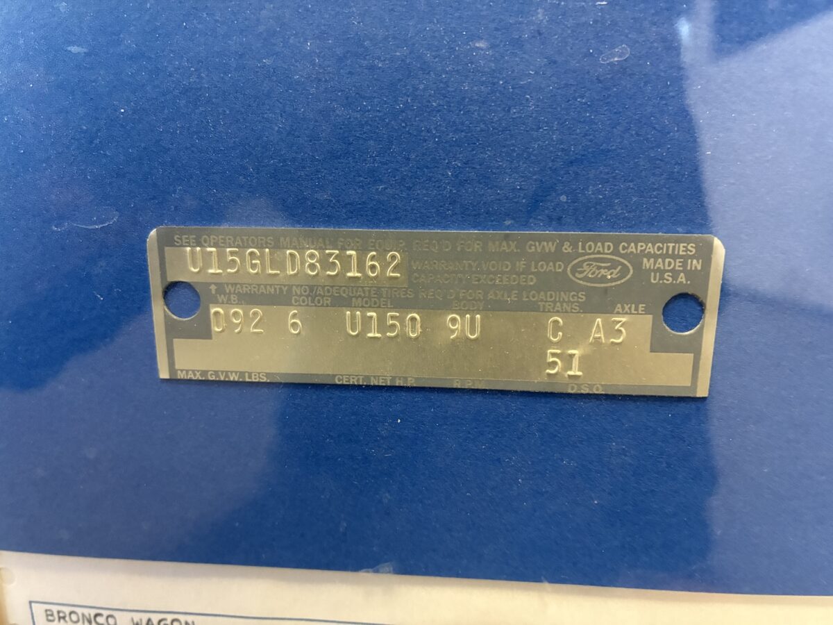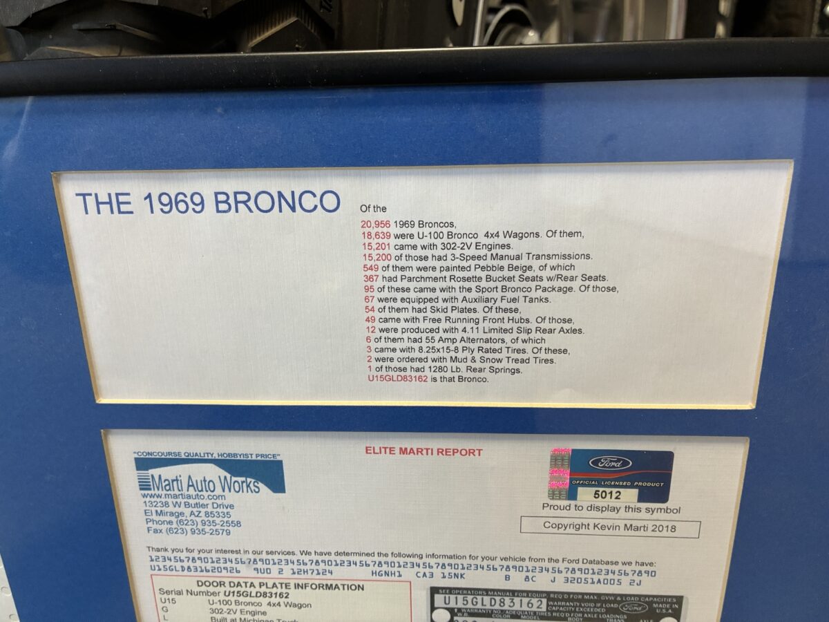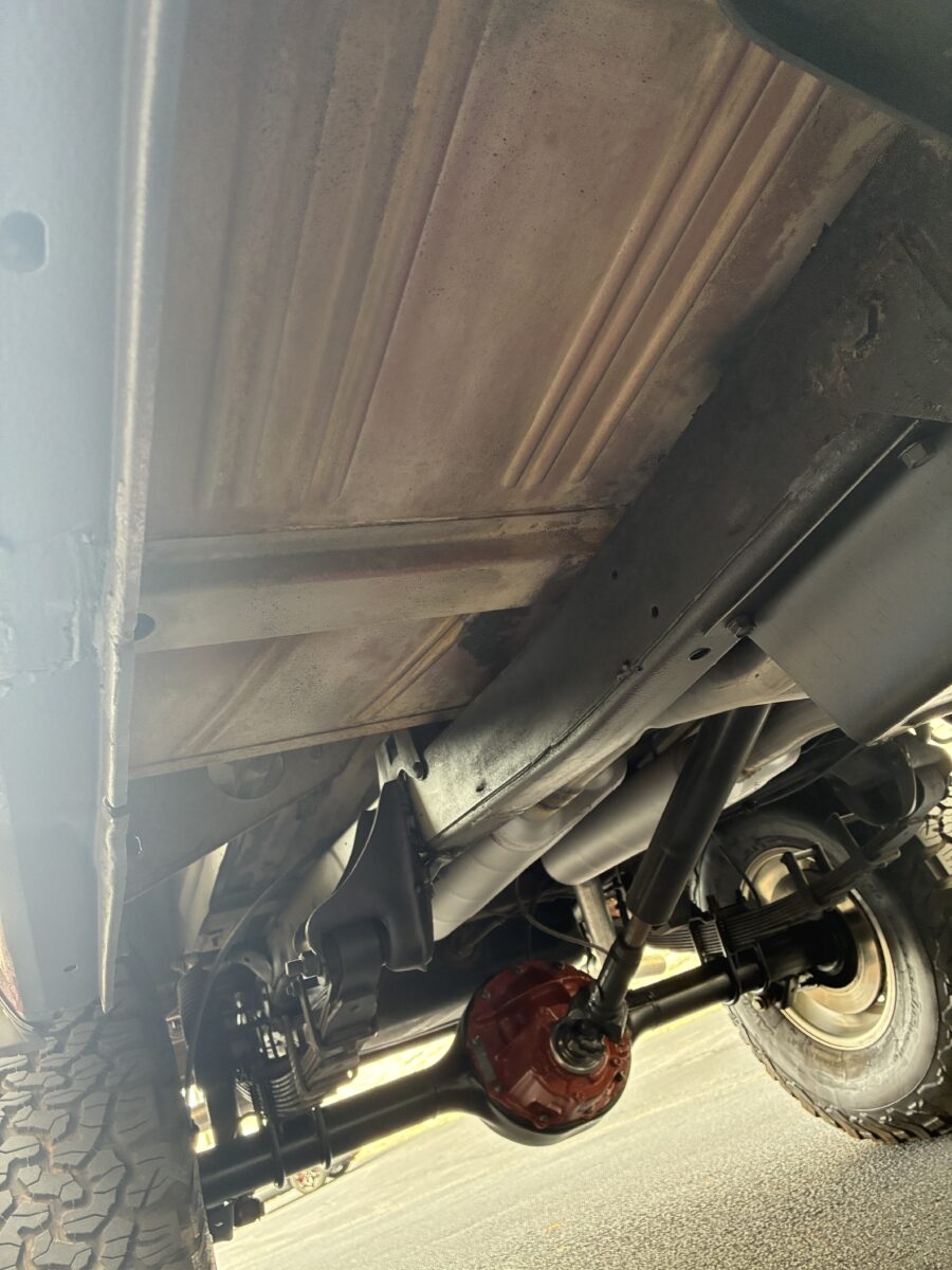 The undercarriage is very original with no rust on the underside of the body or frame. The original floor pans are super nice and retain the factory applied red-oxide primer that show no signs of repair. I have a deluxe MARTI report and all of the original keys. This Bronco was driven on a regular basis by the previous owner and only has about 1000 miles on it since the engine and suspension work were completed.