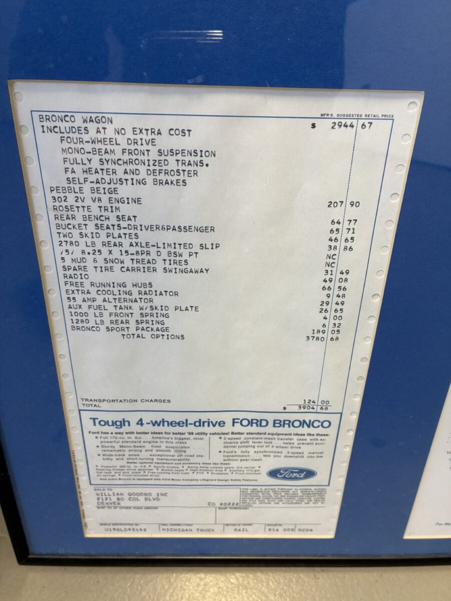 BEAUTIFUL 1969 FORD BRONCO SPORT, NICELY UPGRADED WITH POWER STEERING, POWER 4 WHEEL DISC BRAKES, REBUILT ORIGINAL 302 V8,MANUAL 3-SPEED ON COLUMN, OLDER PAINT JOB ON RUST FREE BODY….READY TO DRIVE AND ENJOY!