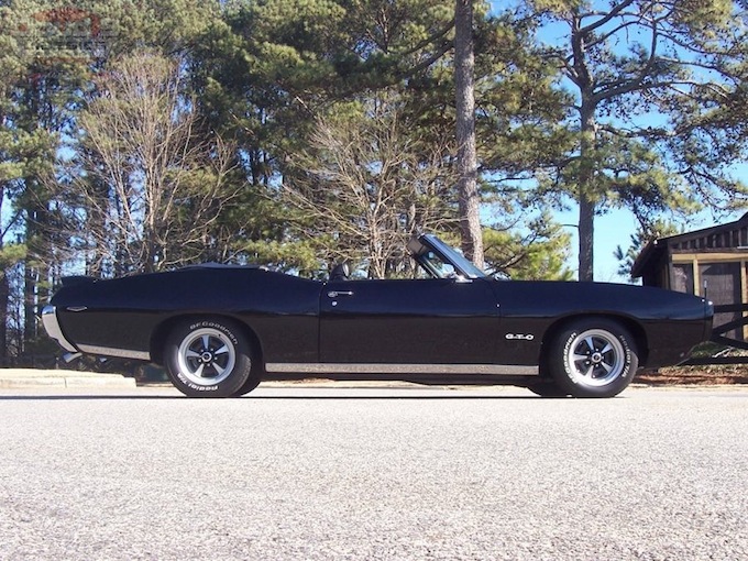 Do the letters G-T-O bring back memories?? Are you looking for a beautifully restored true muscle car convertible that was built to be driven and not trailered? Do you enjoy going to the local shows and cruise ins, taking sunny day drives with family and friends, or just love collecting quality classic cars that are sure to be excellent investments?? Well, if you have been shaking your head yes then I am confident that this PHS Documented Triple Black ’69 Convertible GTO is sure to be one for you to consider!! We acquired this beauty from a gentleman here in the Atlanta, GA area who had purchased it from a collector who owned it for about 10 years. He owns a service shop and enjoys restoring a few cars a year. The GTO was in fantastic condition when he bought it but the paint was beginning to show its age so he treated it to a beautiful Base Coat/Clear Coat professional black paint job. As you will see, the paint looks amazing. The previous owner mentioned that the non-matching number motor had been completely rebuilt so he checked it out and all indications were that it was a fresh rebuild. This car has the complete PHS documentation that will be included which shows this GTO was originally delivered to a dealer in the Washington DC area but we believe it then made its way to the Atlanta, GA area where it lived most of its life. Judging from the condition of the body and undercarriage it is obvious this GTO lived a good life! As you will see in the PHS documentation this car started life as a Espresso brown car with black top and black interior. I think the color change to black was a great decision. Although it does not have its original motor it has a correct 400 V8 4bbl that was completely rebuilt and is believed to have under 10,000 miles on the rebuild. This GTO has just about every factory option possible on it! The list includes Power steering, Power front disc brakes, power top, power windows, air conditioning, tilt steering wheel, reclining passenger seat and hood tach just the way it came in 1969!