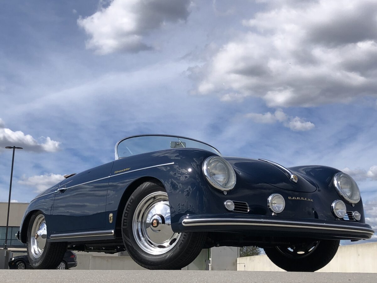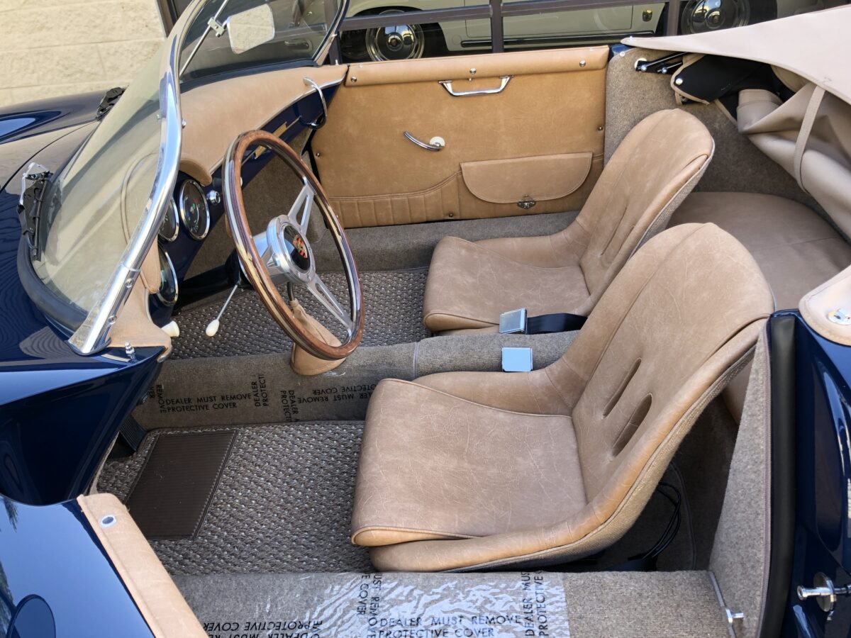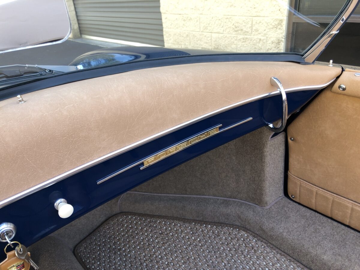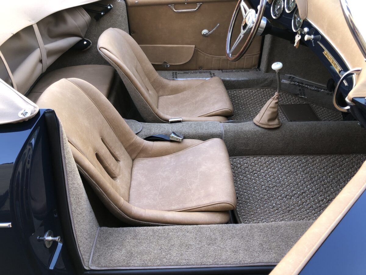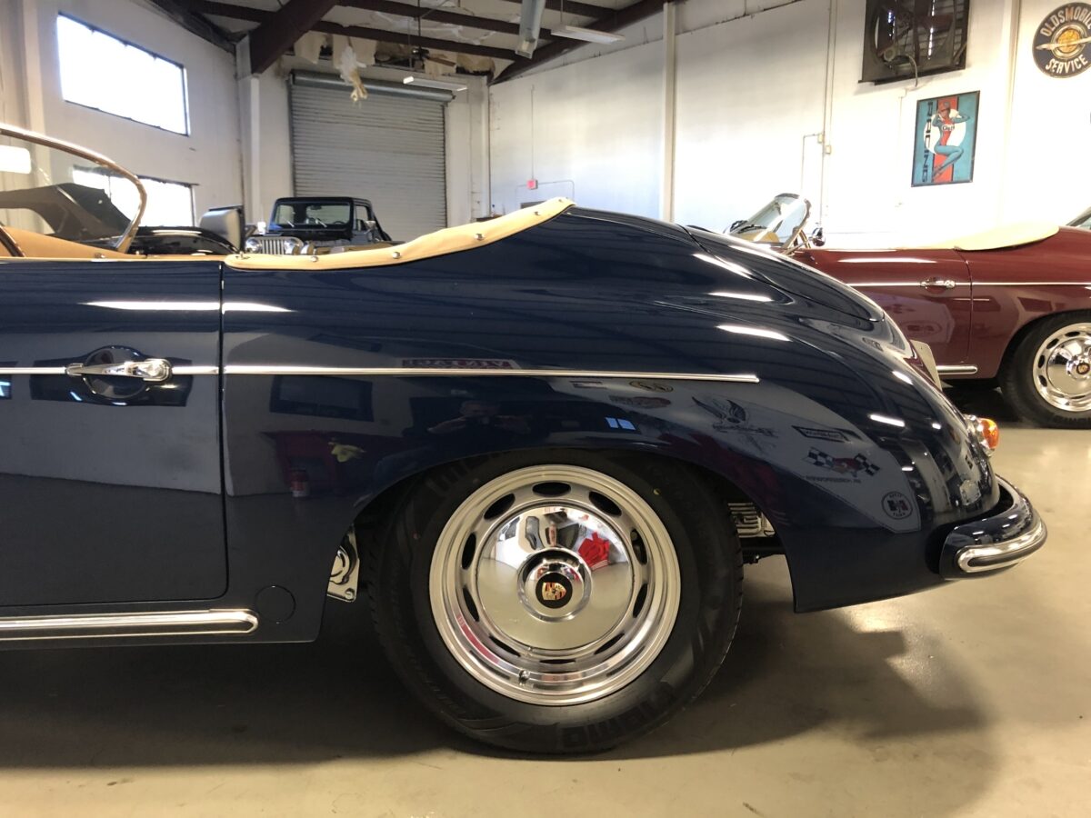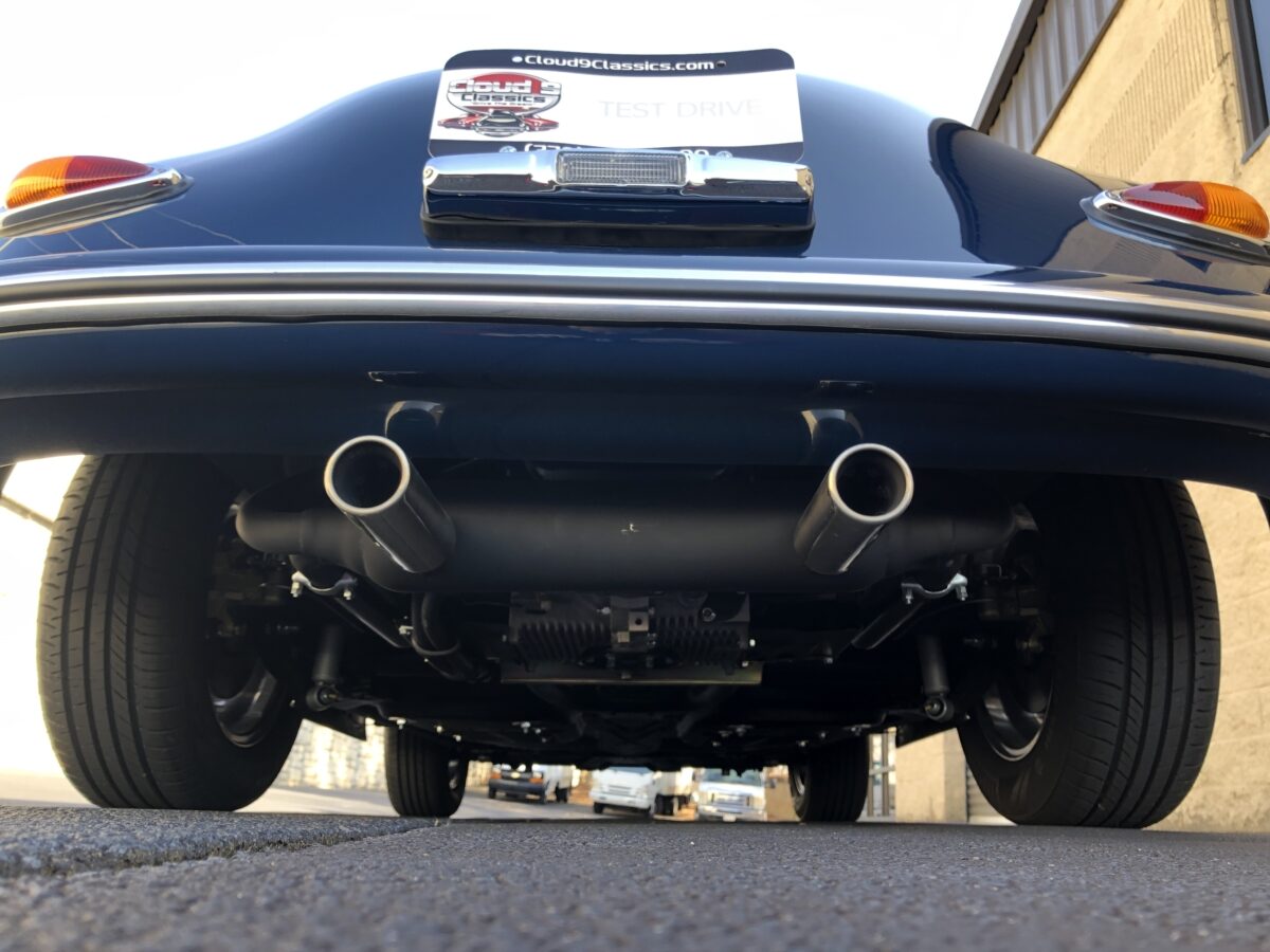 We had this one built for our inventory in an original 356 color called Bali Blue and the fit and finish most likely exceeds the original.. The body is adorned with Porsche badging on the nose, rear and dash. Paint and body are essentially flawless. This one has the European amber/red tear drop taillights. Front driving lights really help when driving at night on poorly lit streets.
