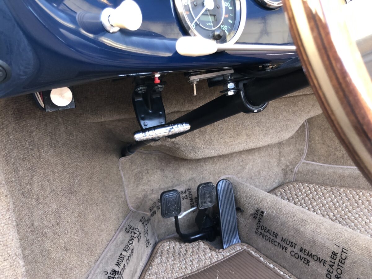 Complementing the Bali Blue exterior is an equally stunning Carrera Camel colored interior. The Speedster seats are very comfortable. Matching dash pad and passenger side grab handle. Period correct VDO gauges with GPS Speedometer and a digital odometer allow the driver to monitor the speed and performance of this air cooled Speedster. Beautiful woodgrain steering wheel with a vintage style turn signal lever adds to the authenticity. This 356 is also optioned with heated seats for both driver and passenger for those of you in cooler climates. This one has the Parking brake mounted under dash to make it even more authentic than most replicas. Shelf pad behind the front seats. A custom set of coco mats finishes out the simply gorgeous interior!!!