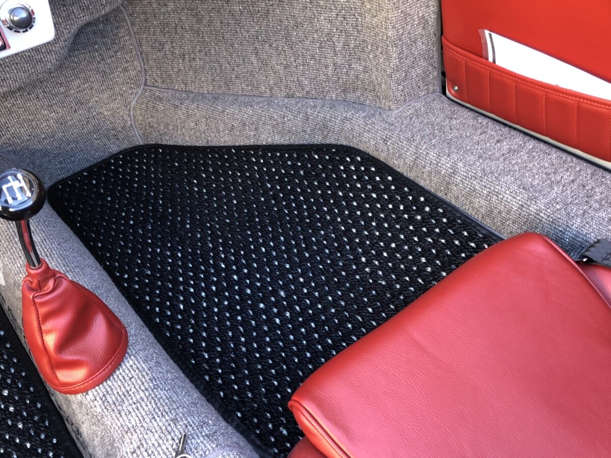 As impressed as I was with the cosmetic improvements on these new builds I am equally impressed with the performance these new cars offer. The 2332 cc. is a brand new, fully balanced motor with top quality components from CB Performance and built by Pat Downs Performance.Rated at 125 hp with the dual Kadron carburetors and 8.2:1 compression ratio this motor pulls strong and crisp. I would be happy to provide more technical data on the engine build for those who need it. Transmission is a 3.44 ring and pinion for easy highway cruising. This combination provides excellent torque and acceleration in 1st-3rd and also allows easy highway cruising at 75 mph. Empi 5 lug 5x205mm 4 wheel disc brakes stop this Speedster precisely with ease. Other features include electronic ignition, stock dog house oil cooler and remote 72pass oil cooler with electric fan thermostatically controlled, Vintage 190 Aluminum 5 lug wheels powder coated in Black with polished drum skin covers, and more. Great vintage tone from the dual tip exhaust. The undercarriage is also nicely detailed and floorpan protected with a bed liner material to ensure it lasts the test of time. Inside of trunk is lined in the matching Gray German square weave carpeting. Make sure you watch the video to hear this car start up and running. These cars handle the road beautifully and are an absolute joy to drive.