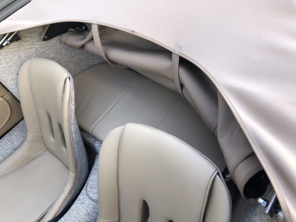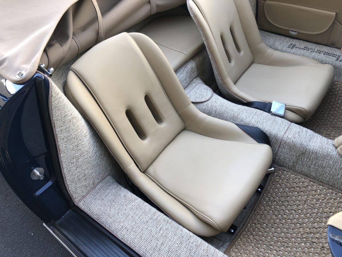 I always recommend driving these cars top down but of course it also has a brand new tan canvas soft top. Window inserts are also provided and a matching boot cover when the top is down for a clean, sophisticated look. Here is a walk around tour of the body: