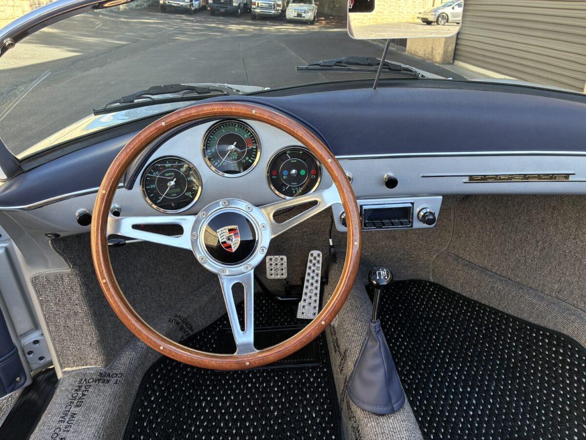 BRAND NEW SILVER WITH NAVY BLUE 1957 PORSCHE 356 SPEEDSTER REPLICA BUILT BY PREMIER BUILDER, VINTAGE MOTORCARS OF CA… 2332 CC, DUAL KADRONS, 4 WHEEL DISC BRAKES, UNDER DASH E-BRAKE, ELECTRONIC IGNITION, LOUVERED ENGINE LID, HEATED SEATS, AND MUCH MORE…READY TO SHOW AND GO...NO WAIT…TRANSPORT ASSISTANCE AVAILABLE!!