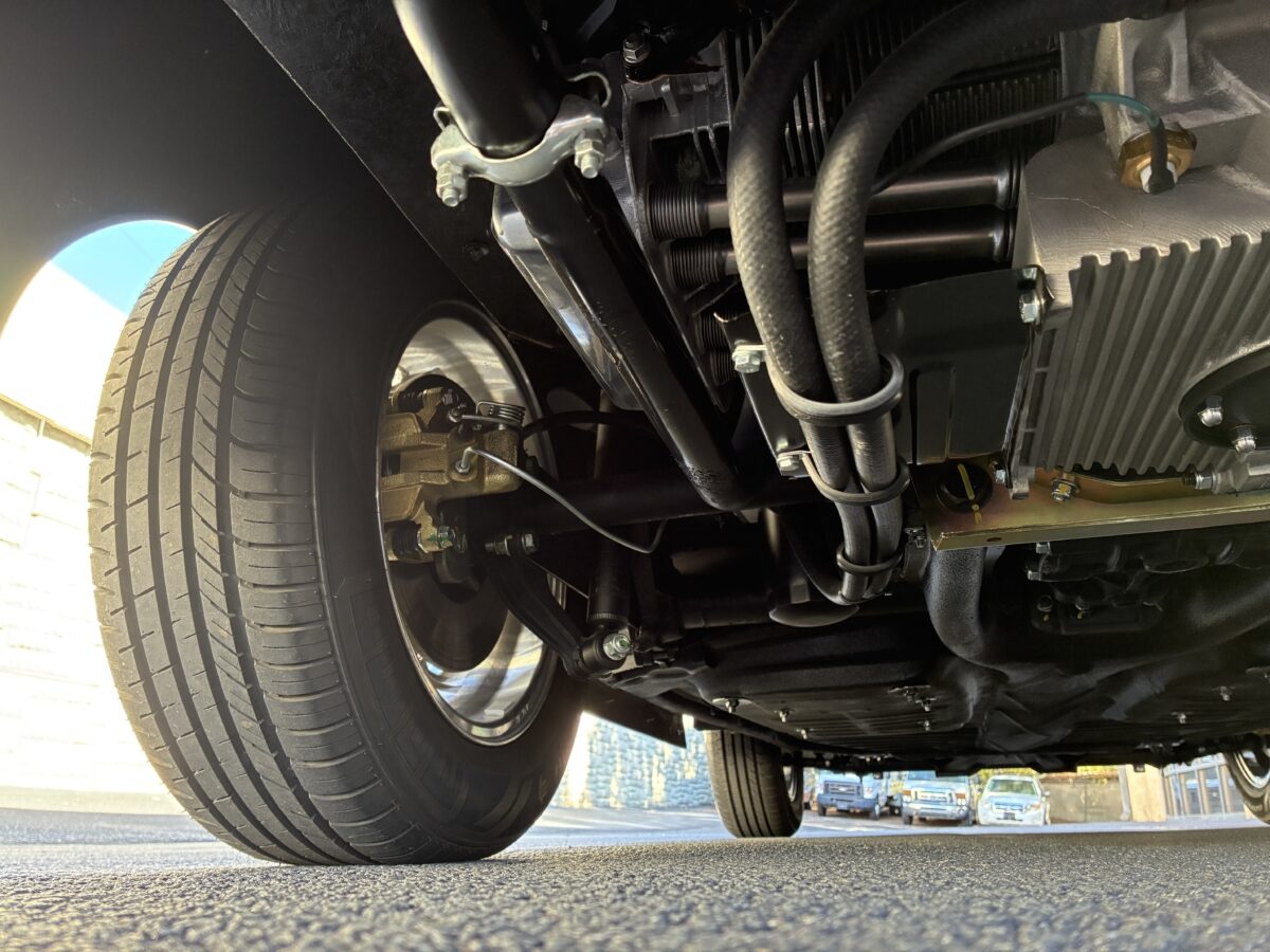 Turn the key and let the fun begin!!! As impressed as I was with the cosmetic improvements on these new builds I am equally impressed with the performance these new cars offer. The 2332 cc. is a brand new, fully balanced motor with top quality components from CB Performance and built by Pat Downs Performance. Rated at 125 hp with the dual Kadron carburetors and 8.2:1 compression ratio this motor pulls strong and crisp. I would be happy to provide more technical data on the engine build for those who need it. Transmission is a 3.44 ring and pinion for easy highway cruising. This combination provides excellent torque and acceleration in 1st-3rd and also allows easy highway cruising at 75 mph. Empi 5 lug 5x205mm 4 wheel disc brakes stop this Speedster precisely with ease. Other features include electronic ignition, stock dog house oil cooler and remote 72pass oil cooler with electric fan thermostatically controlled, Polished Vintage 190 Aluminum 5 lug wheels, and more. Great vintage tone from the dual tip exhaust. The undercarriage is also nicely detailed and floorpan protected with a bed liner material to ensure it lasts the test of time. Make sure you watch the video to hear this car start up and running. These cars handle the road beautifully and are an absolute joy to drive. Trunk area is finished nicely in matching Gray German square weave carpeting.