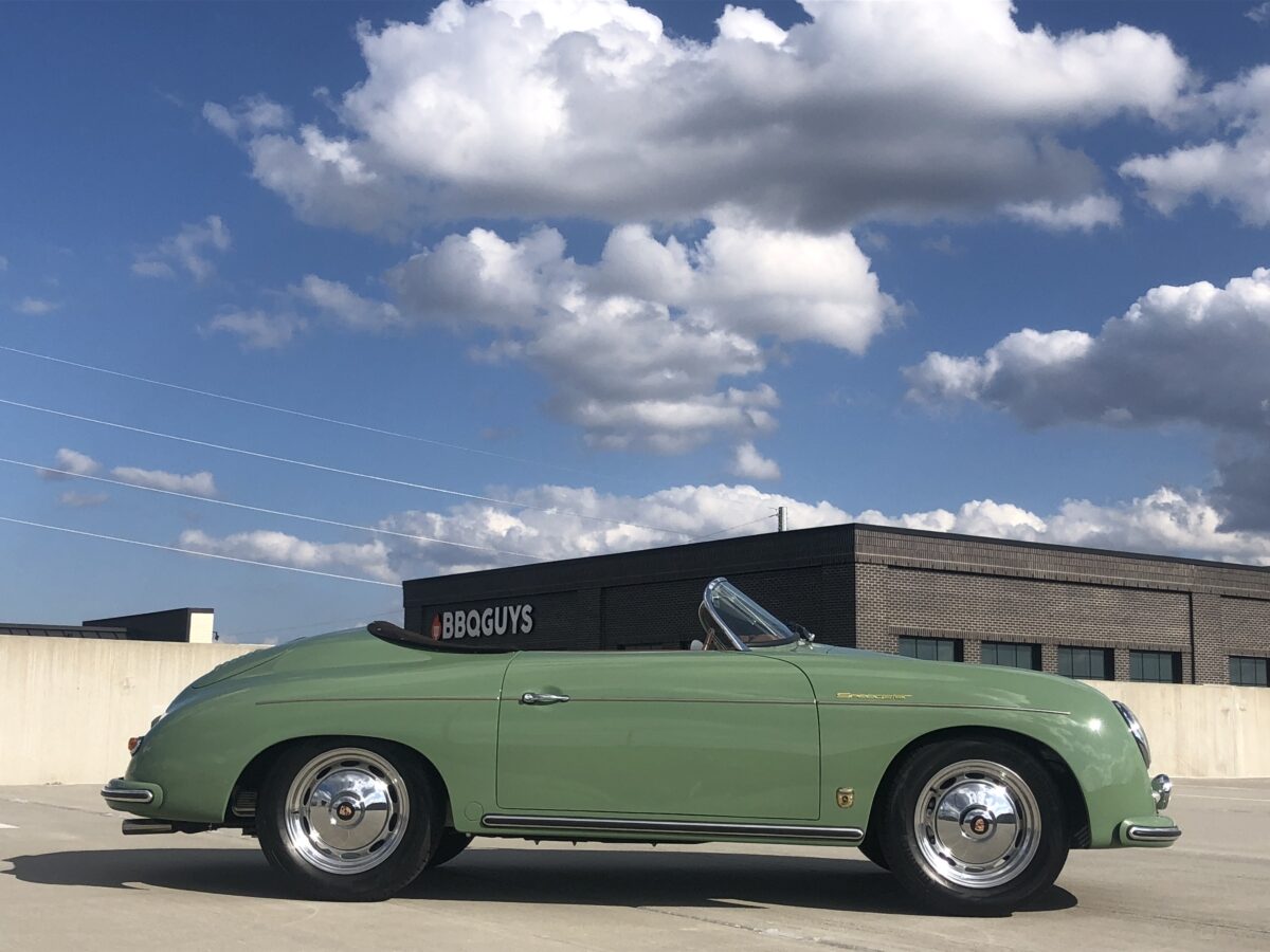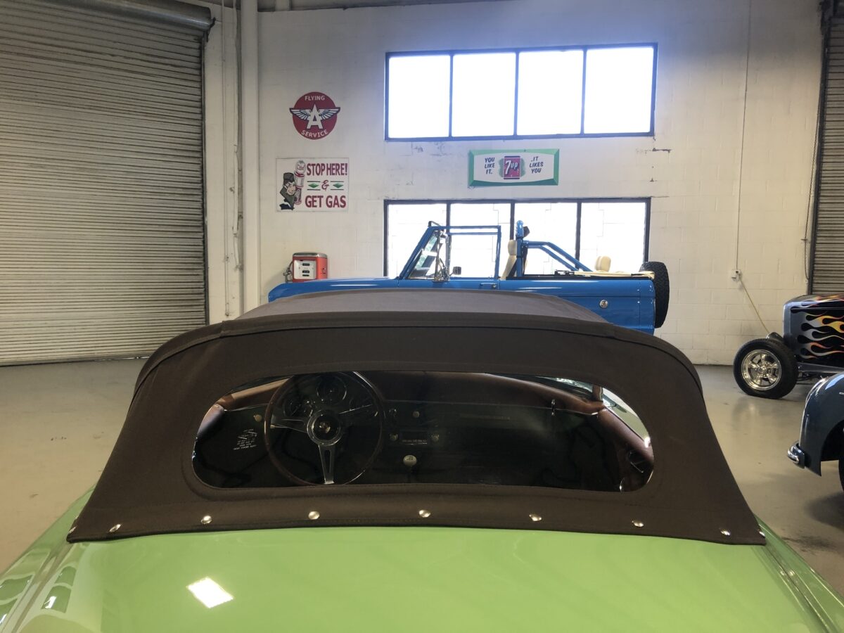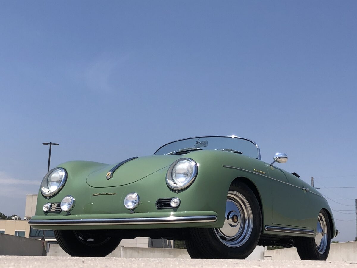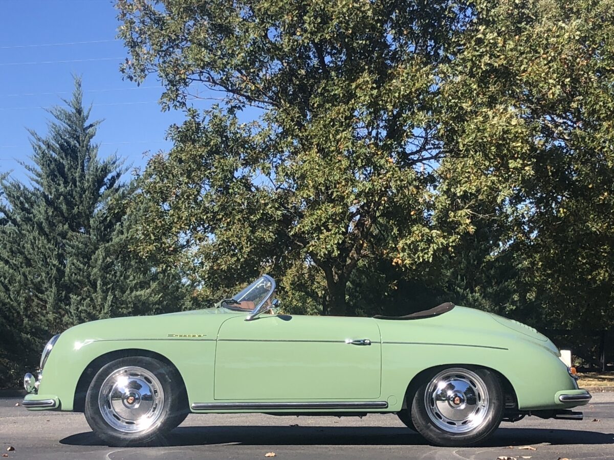 We originally had this one built for a gentleman in TX who picked out an original special order 356 color called Auratium Green with a Buck interior. Just a few weeks before the car was ready he notified that he was ill and could not move forward with the purchase. This was no issue because it was ordered in absolutely one of the best color combinations, so we put it on the market and sold it quickly in January, 2024 to a gentleman in Pennsylvania. This gentleman enjoyed the heck out of the car putting just over 2300 miles on it and recently decided he wanted a new toy and only had room for one so asked us to sell this one for him. Someone is going to be extremely lucky to buy this gorgeous Speedster….Maybe you?!!!