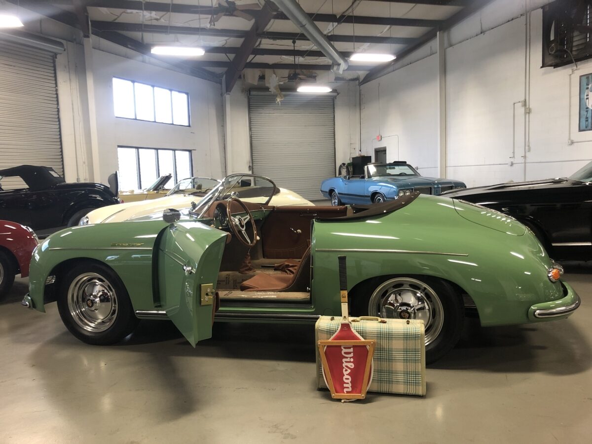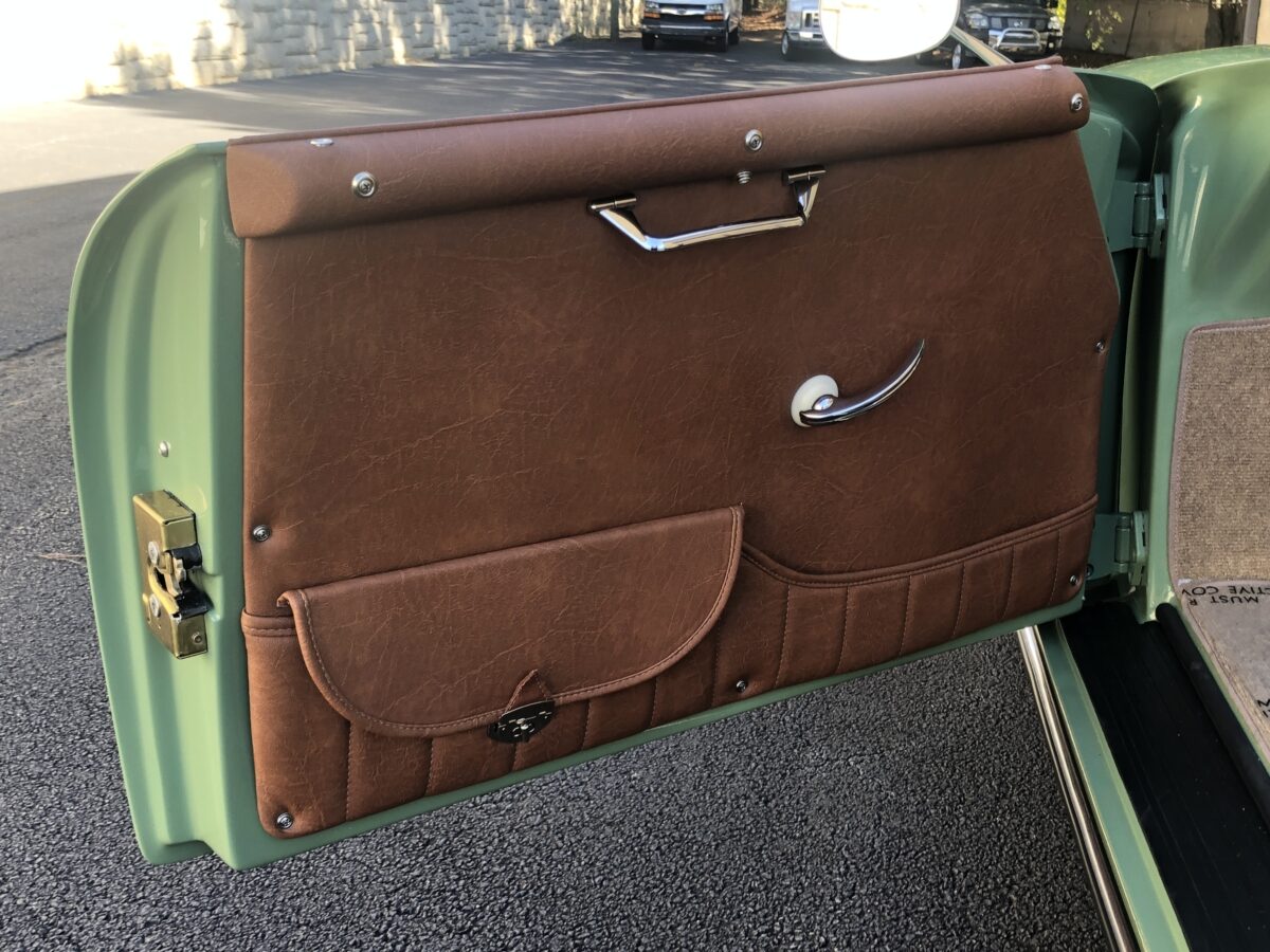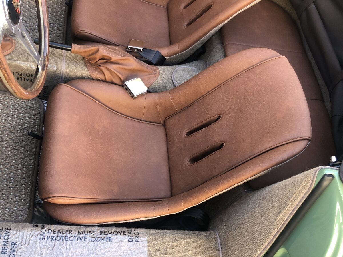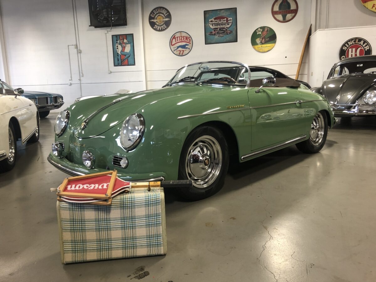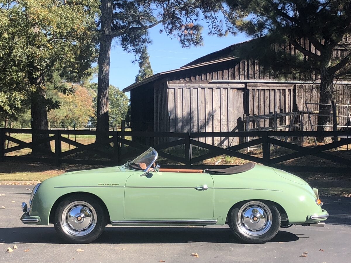 We originally had this one built for a gentleman in TX who picked out an original special order 356 color called Auratium Green with a Buck interior. Just a few weeks before the car was ready he notified that he was ill and could not move forward with the purchase. This was no issue because it was ordered in absolutely one of the best color combinations, so we put it on the market and sold it quickly in January, 2024 to a gentleman in Pennsylvania. This gentleman enjoyed the heck out of the car putting just over 2300 miles on it and recently decided he wanted a new toy and only had room for one so asked us to sell this one for him. Someone is going to be extremely lucky to buy this gorgeous Speedster….Maybe you?!!!